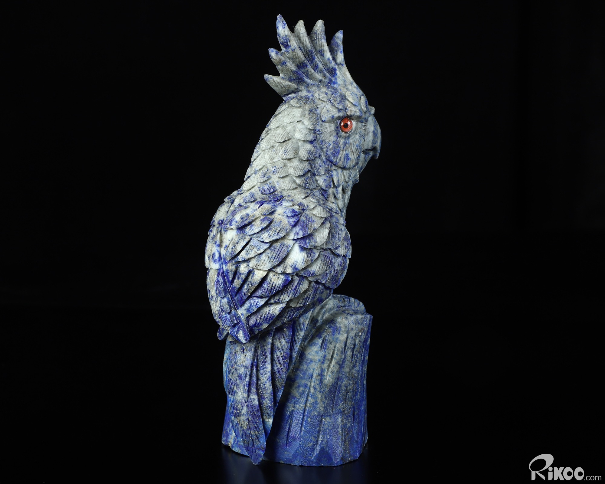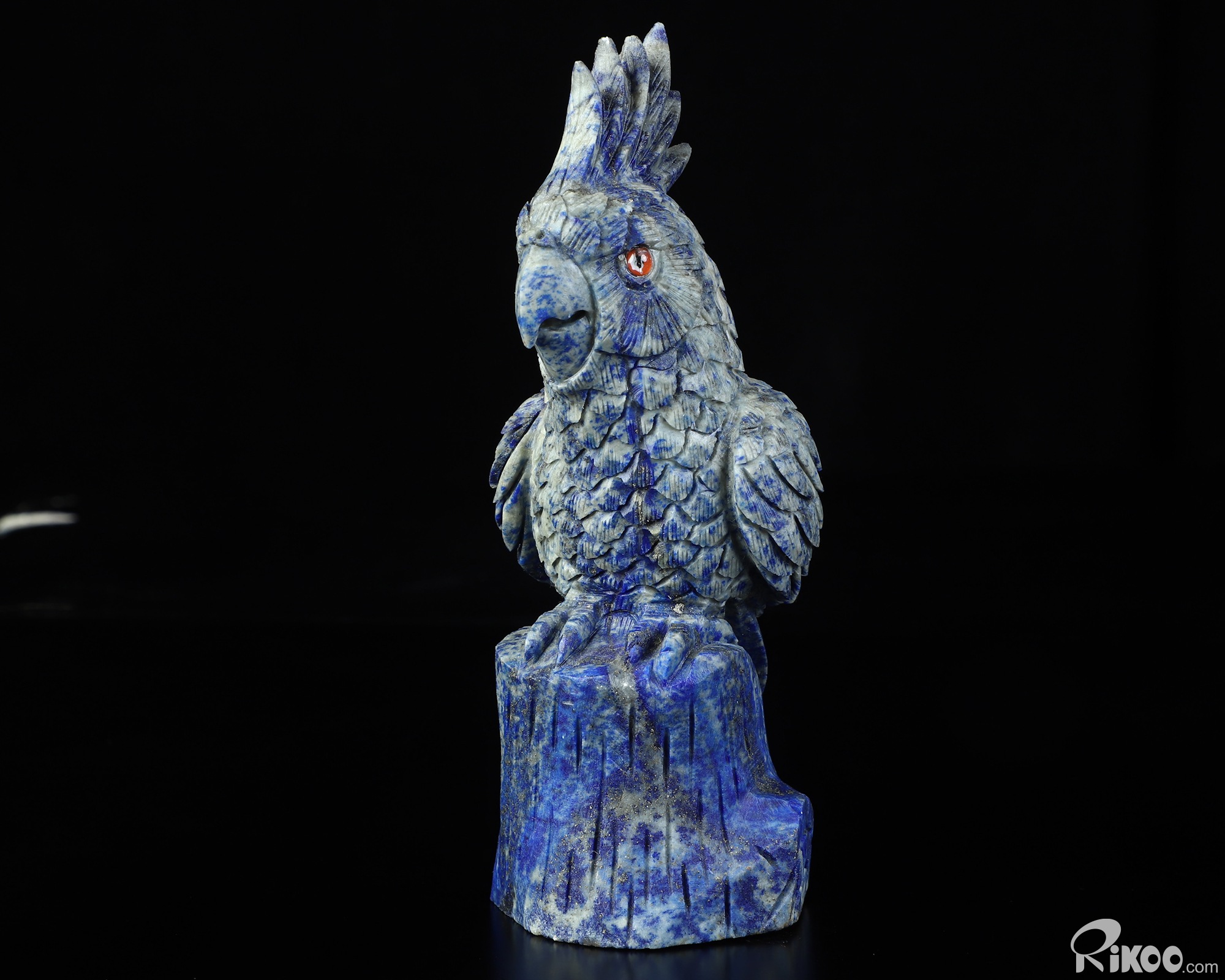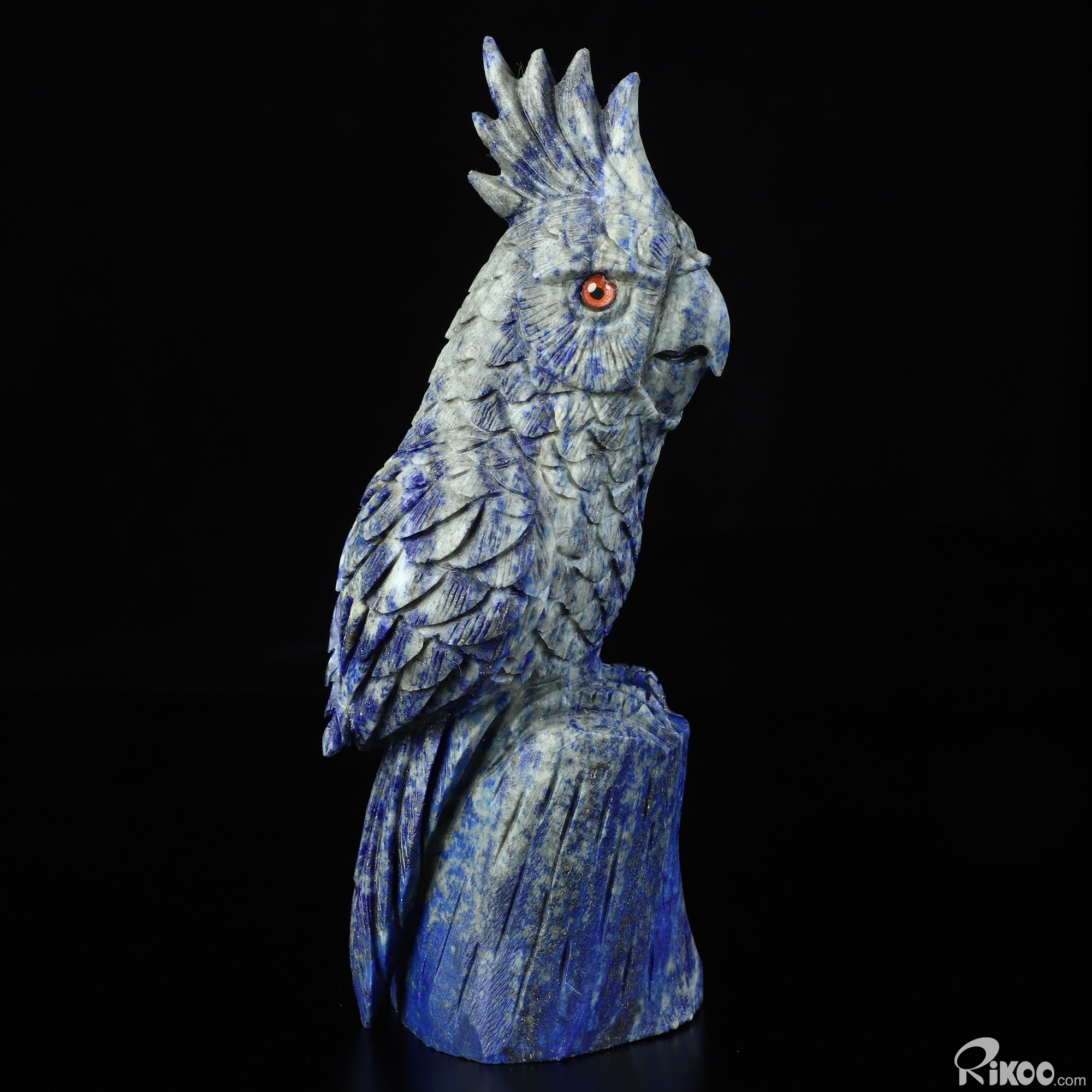 Gemstone 5.7" Lapis Lazuli Hand Carved Crystal Parrot Sculpture, Crystal Healing