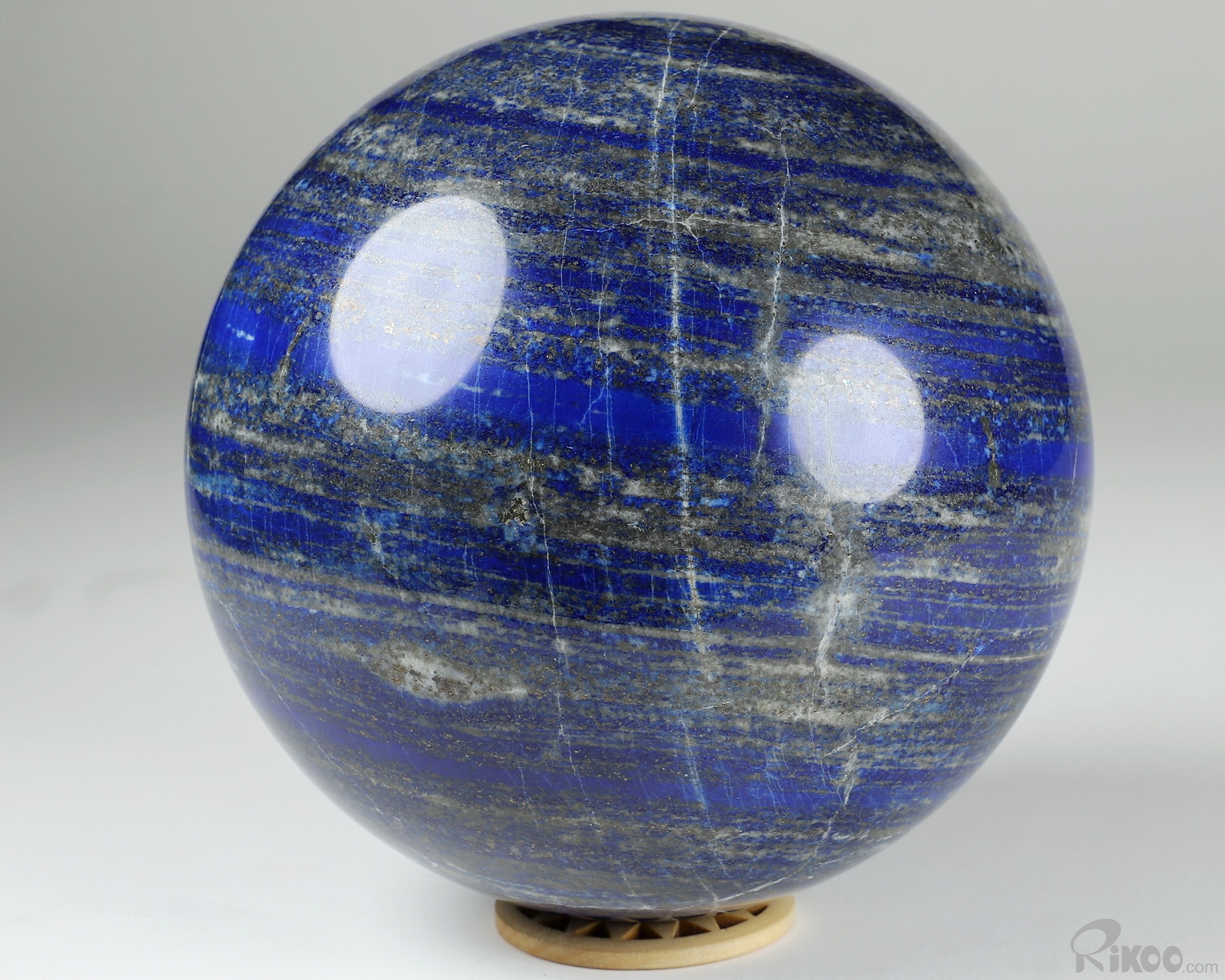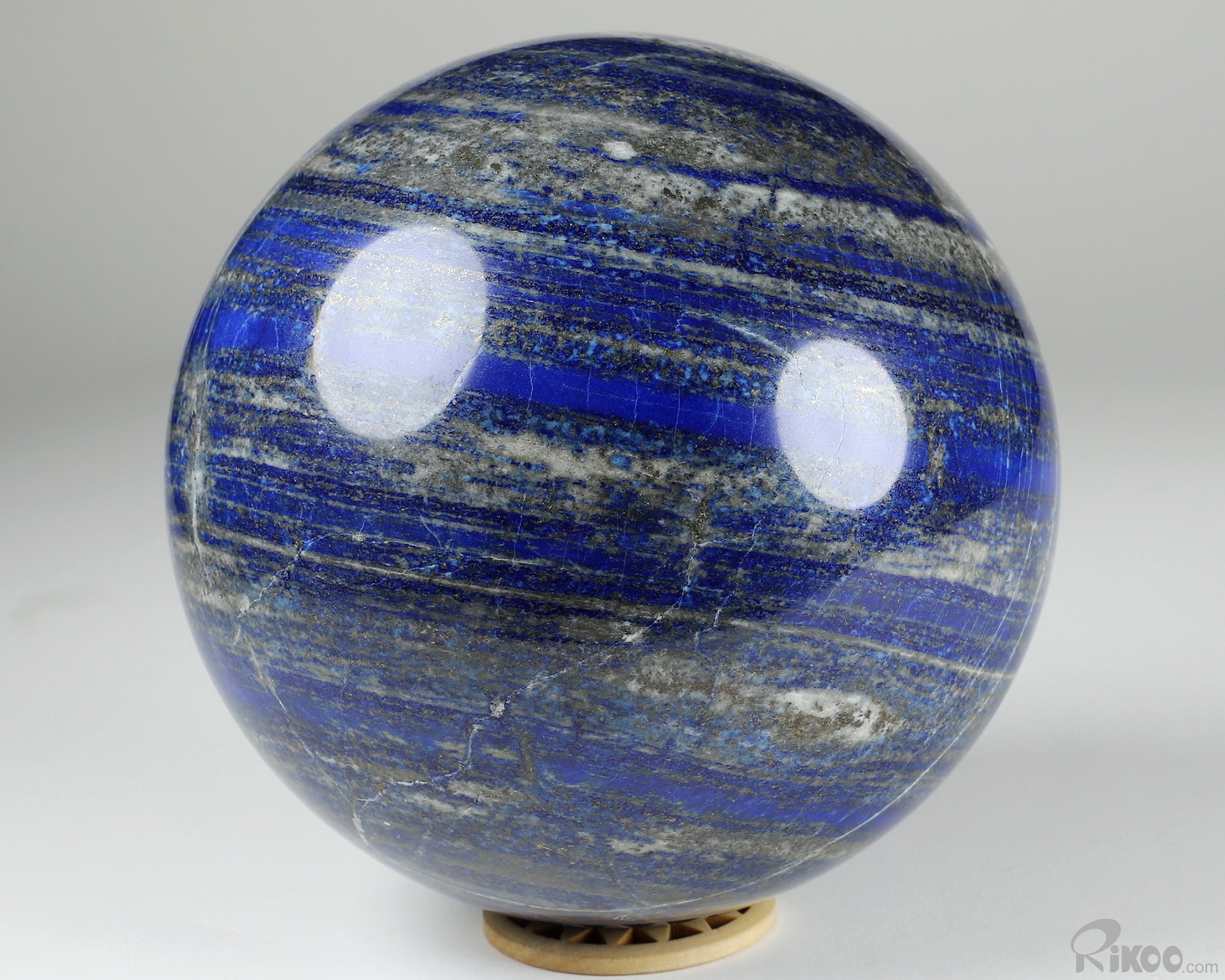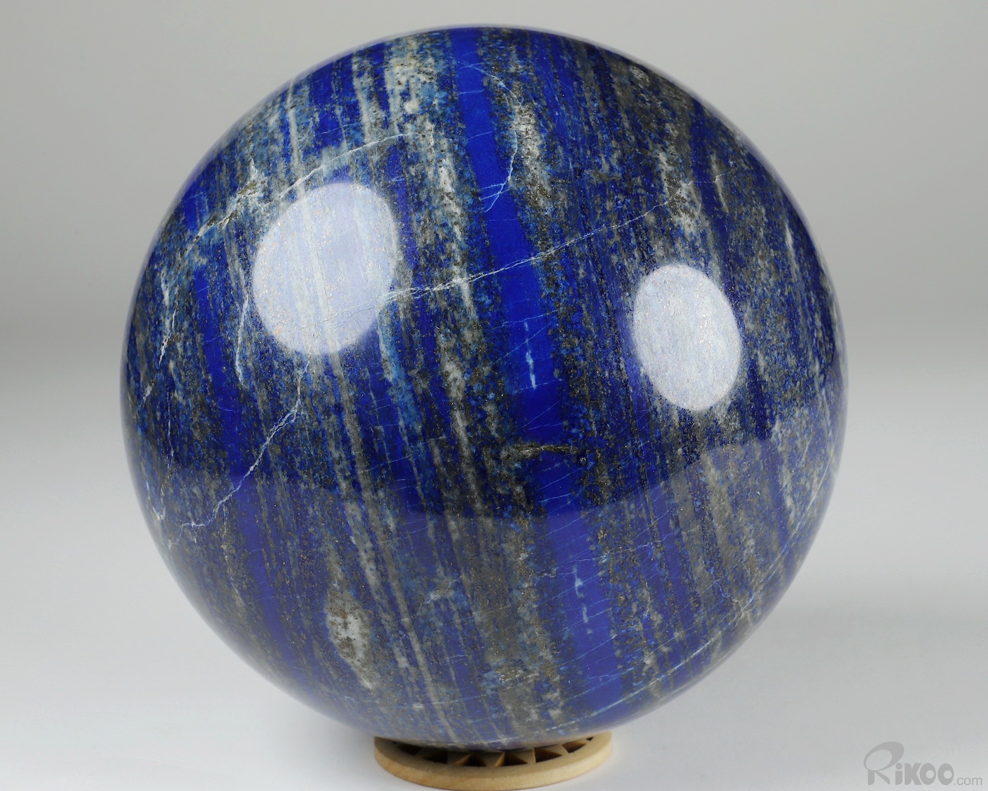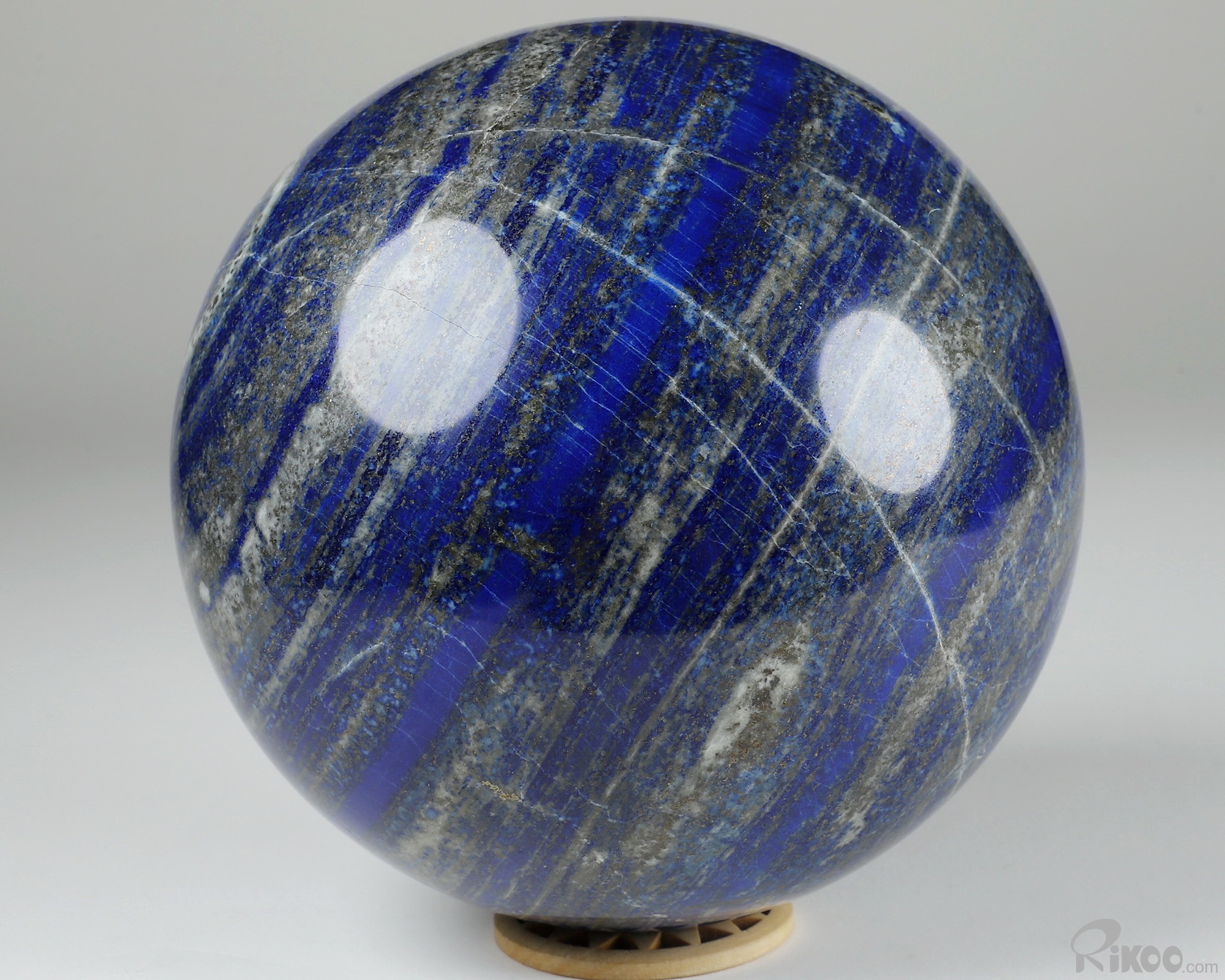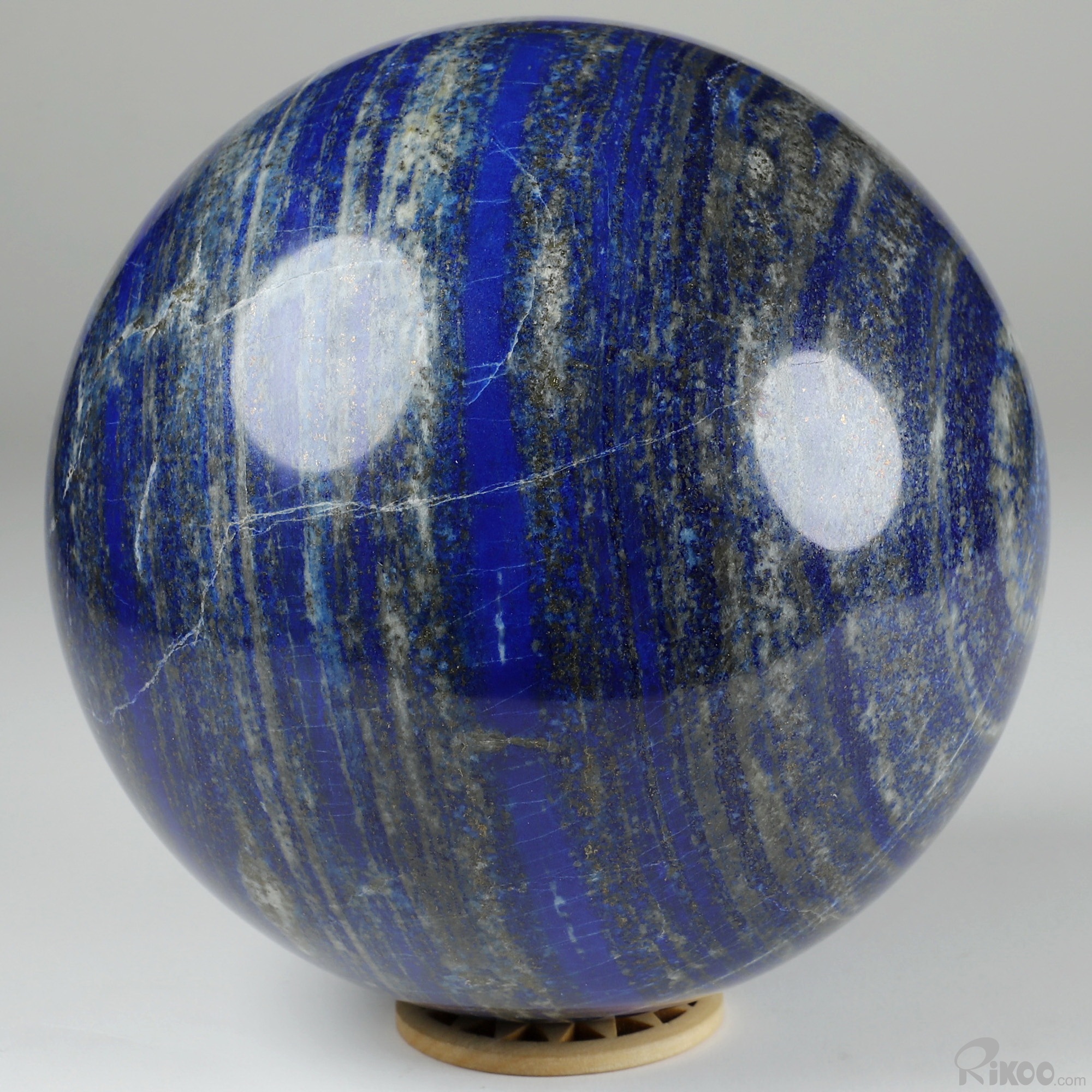 You are looking at a Lapis Lazuli Ball. The Ball is 5.8 inches long from front to back.