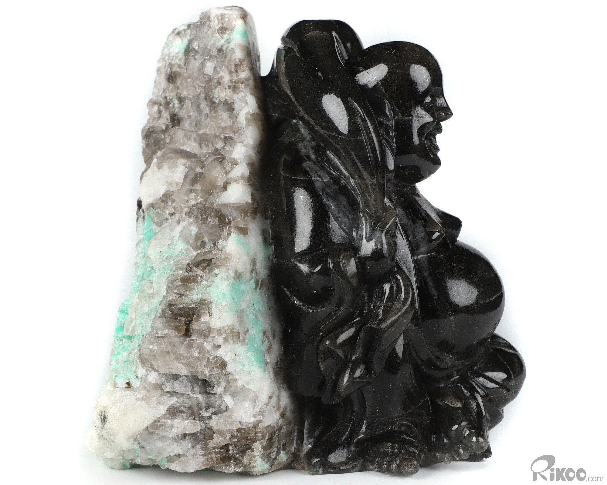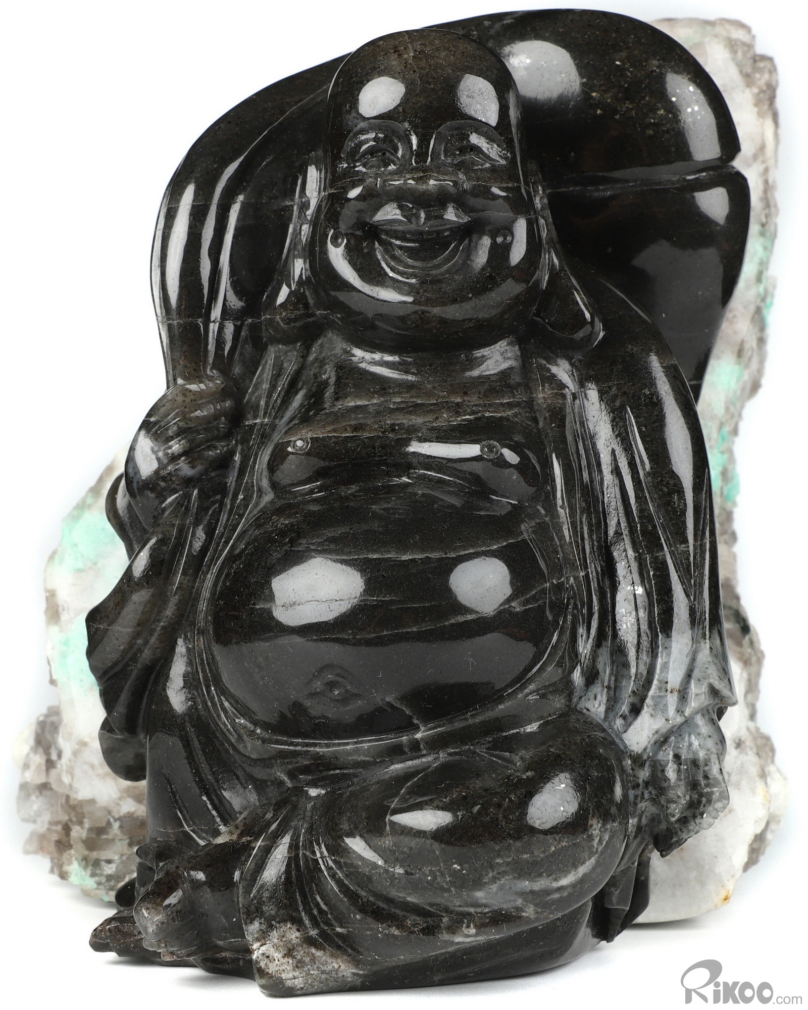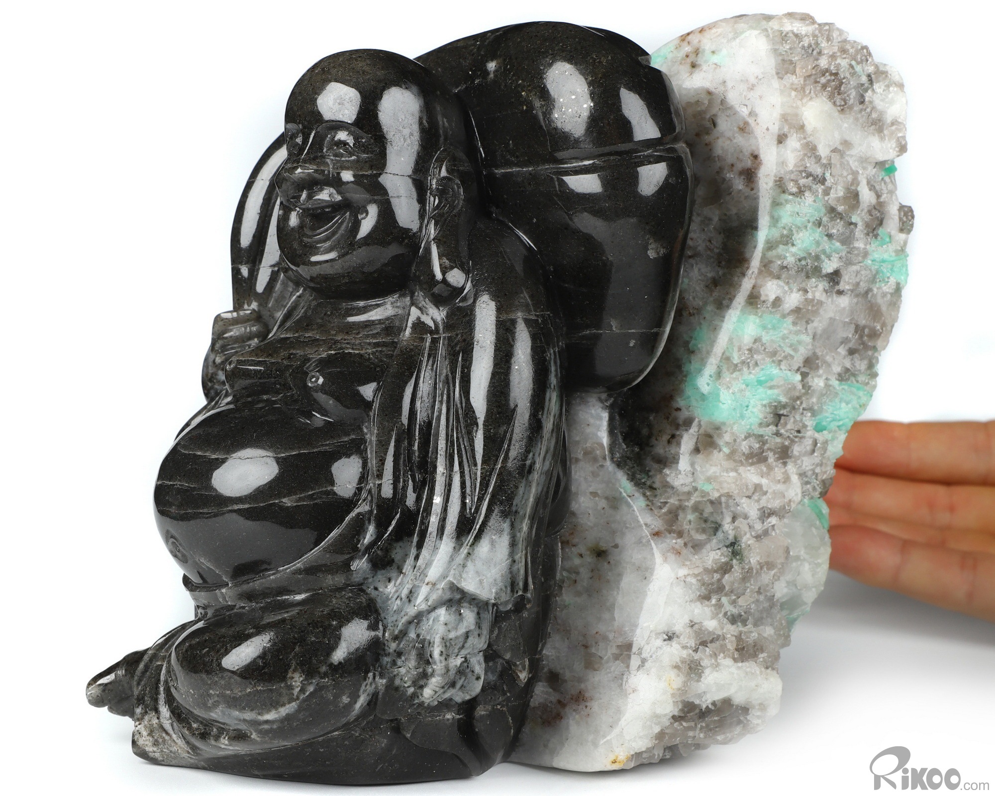 Gemstone 6.1" Emerald Hand Carved Crystal Buddha Sculpture, Crystal Healing