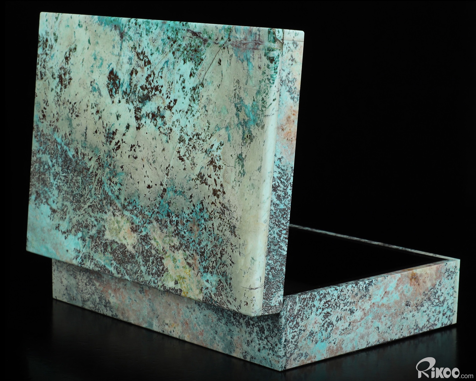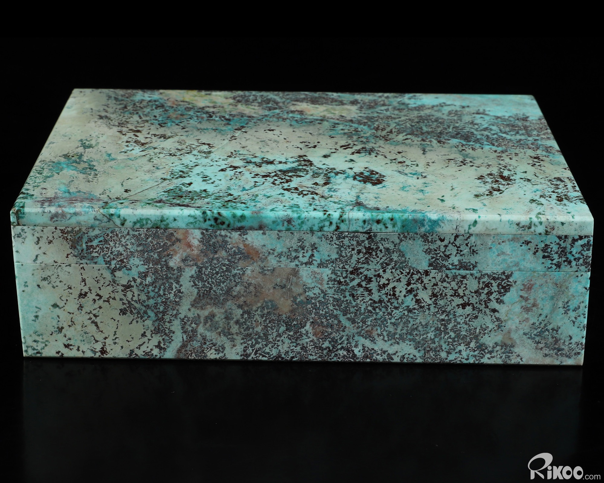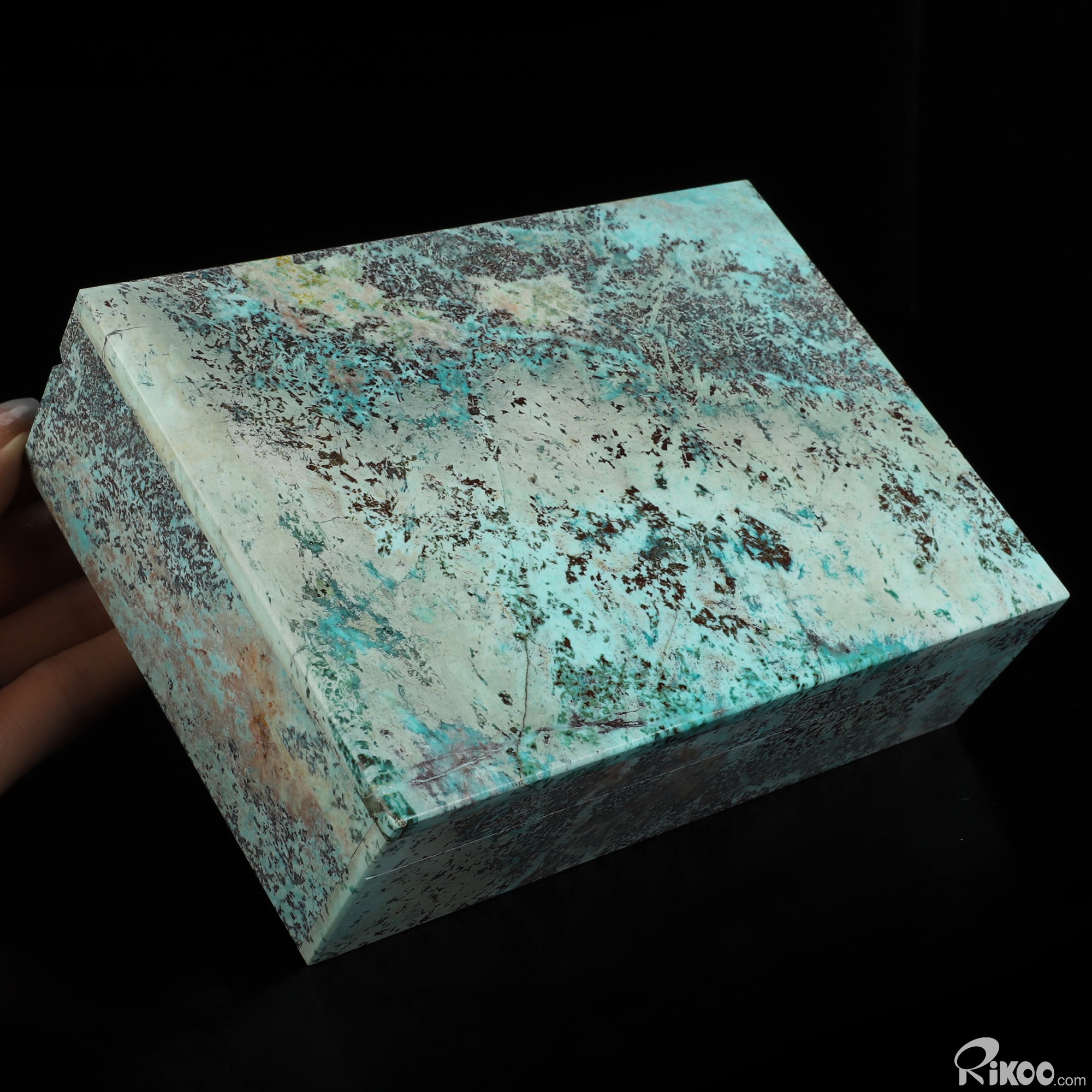 Gemstone 6.3" American Chrysocolla Hand Carved Crystal Jewelry Box, Crystal Healing