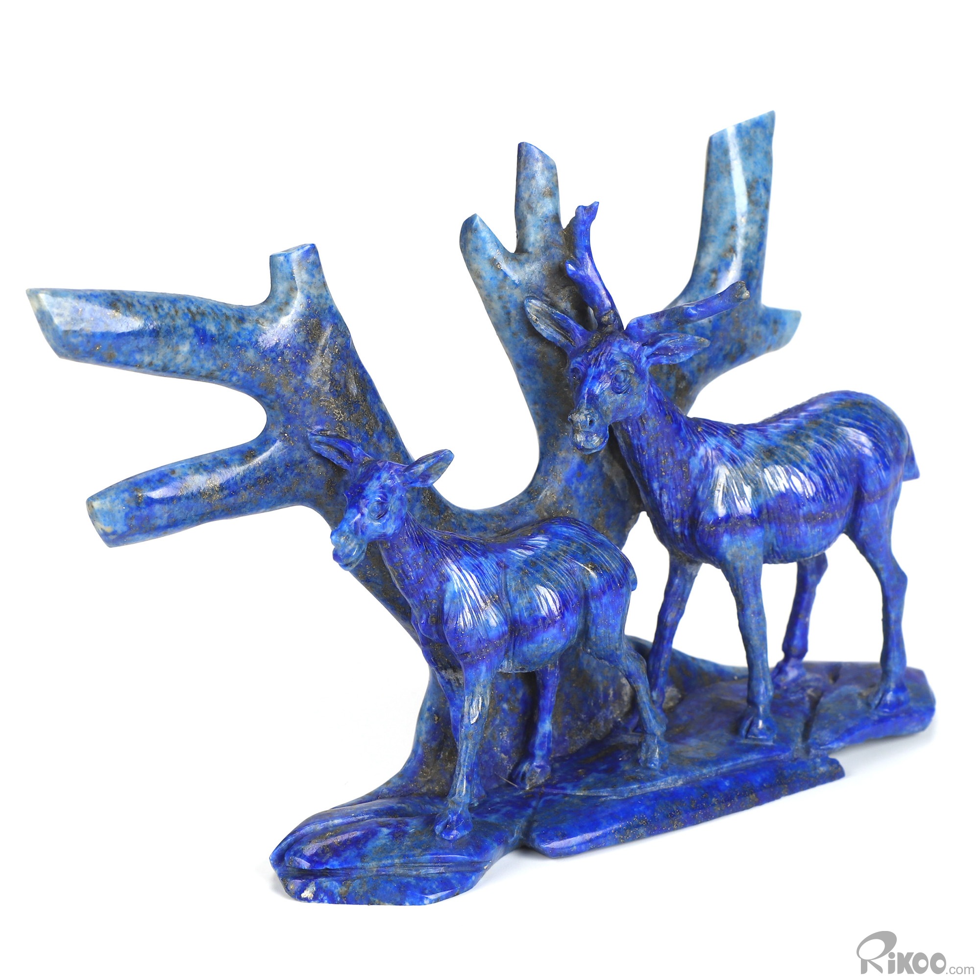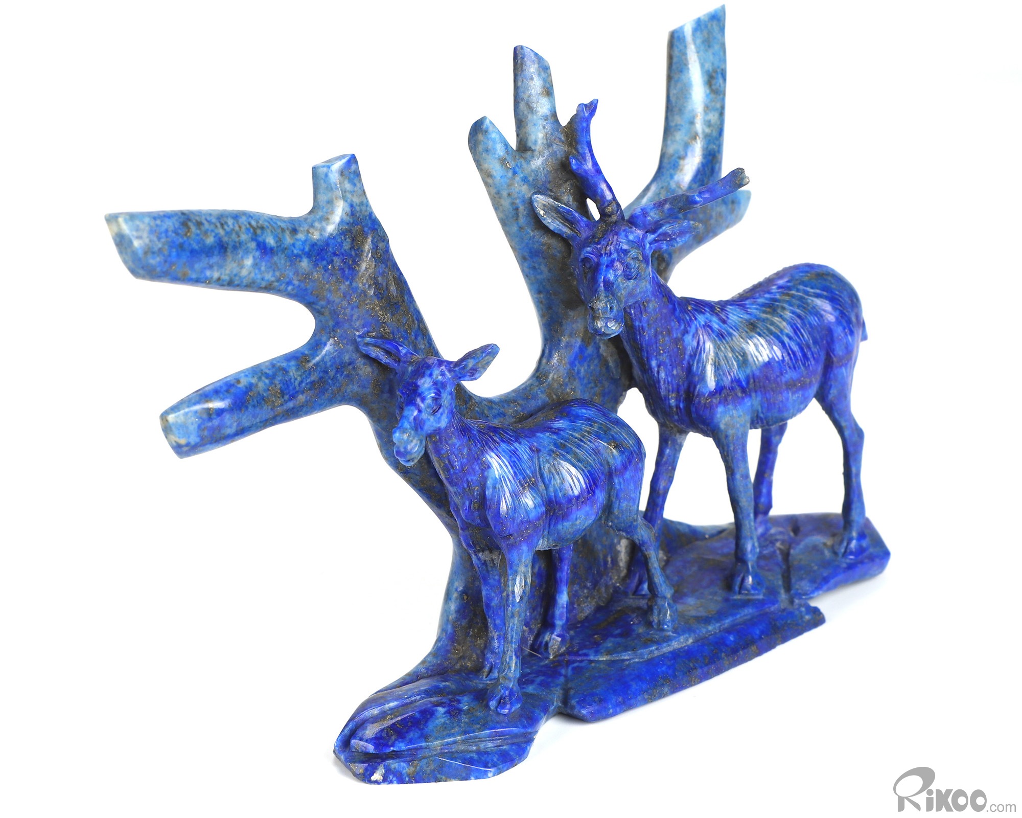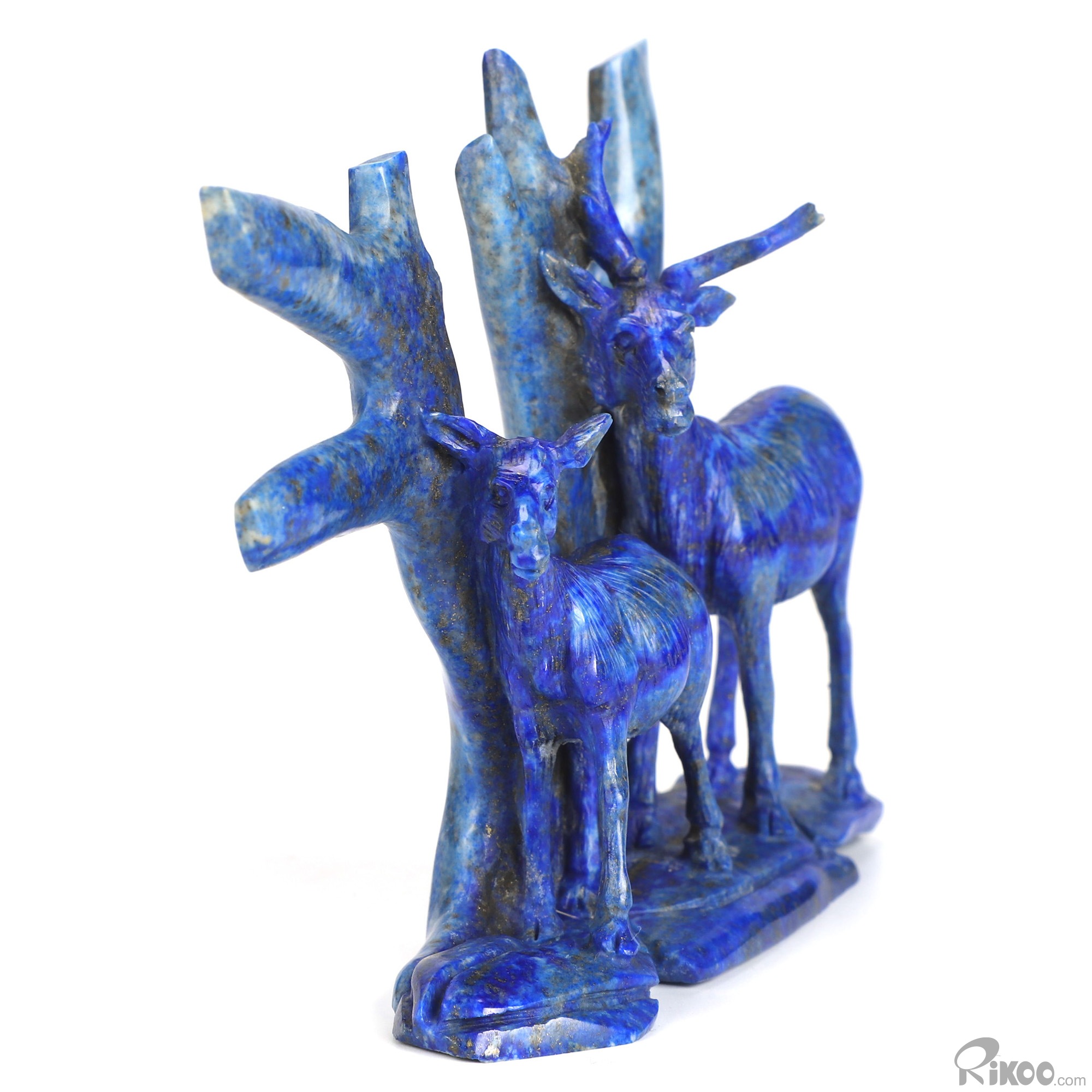 Gemstone 6.3" Lapis Lazuli Hand Carved Crystal Deers Sculpture, Crystal Healing
