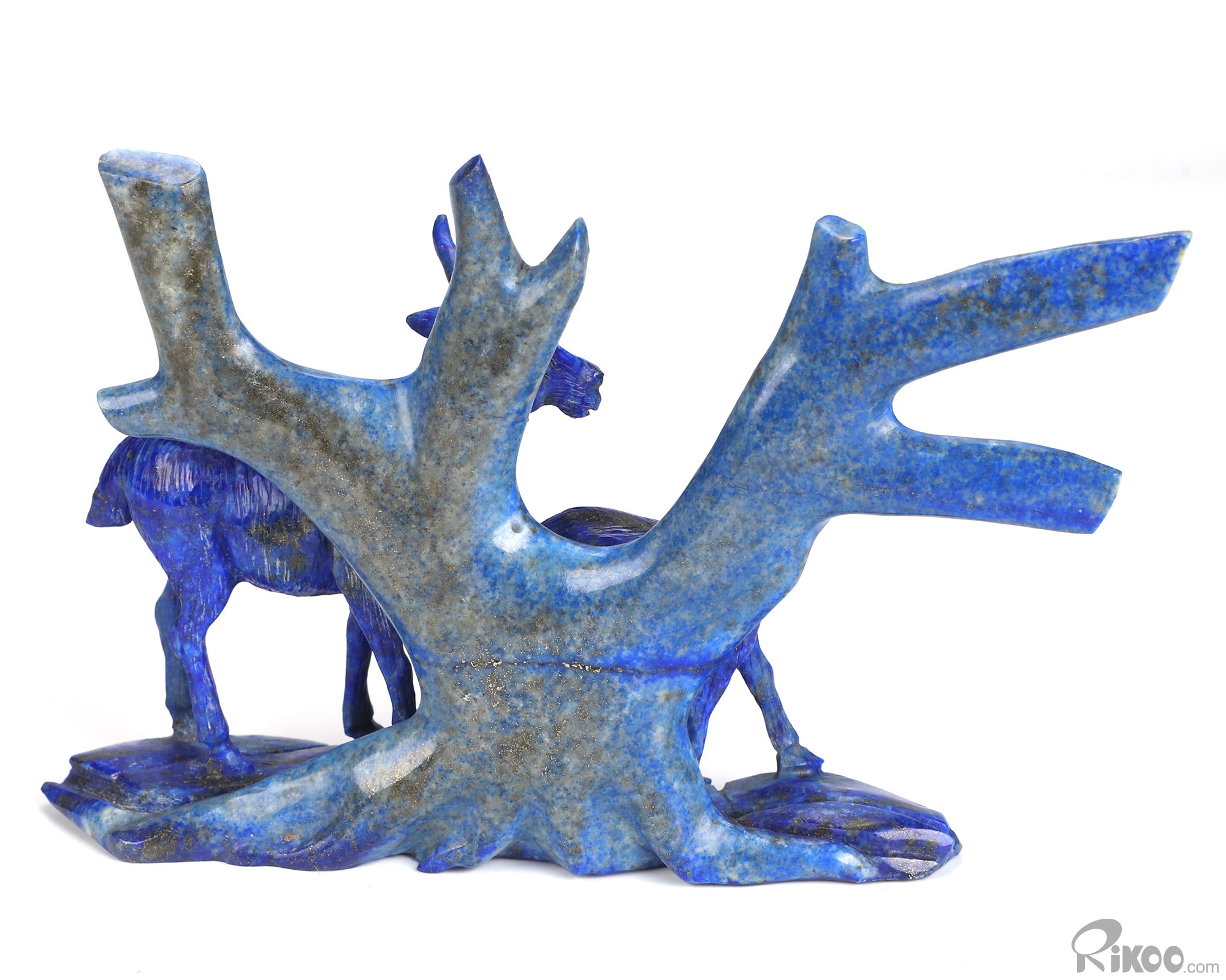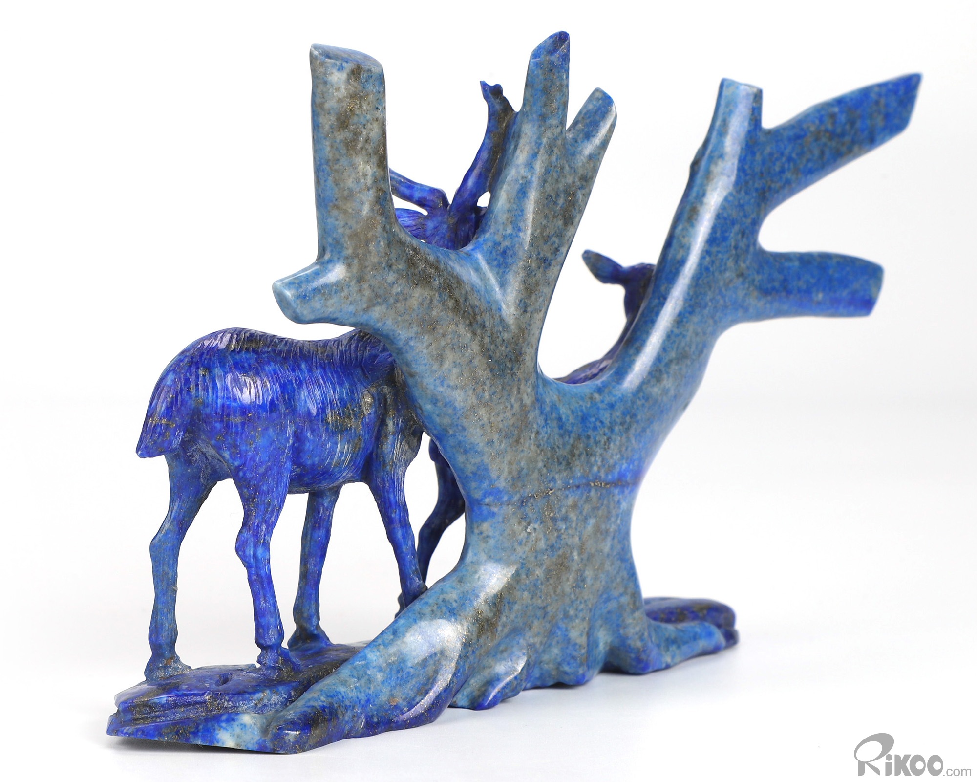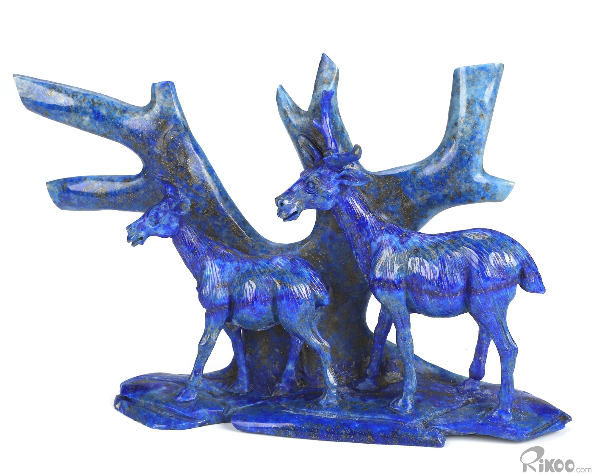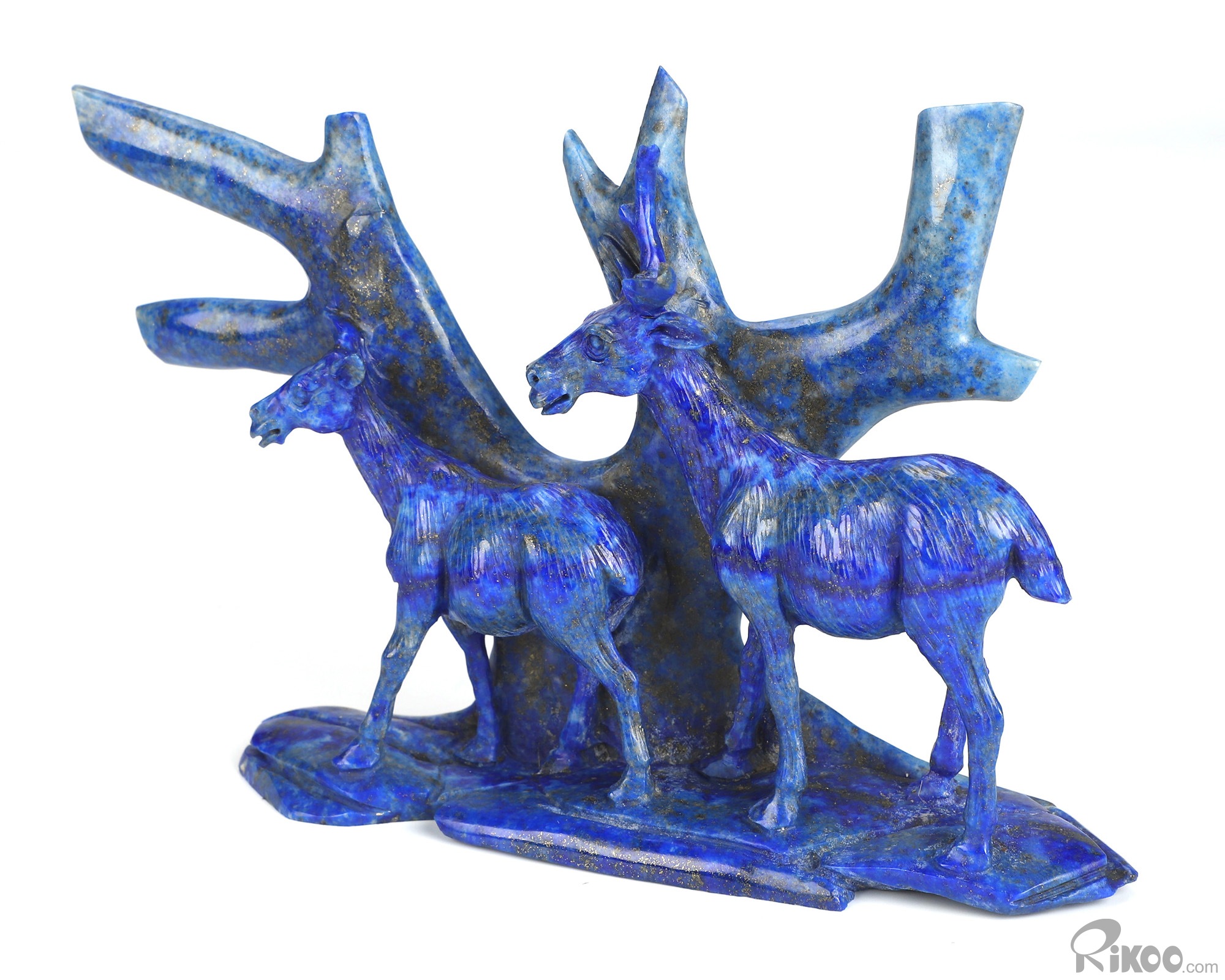 Gemstone 6.3" Lapis Lazuli Hand Carved Crystal Deers Sculpture, Crystal Healing