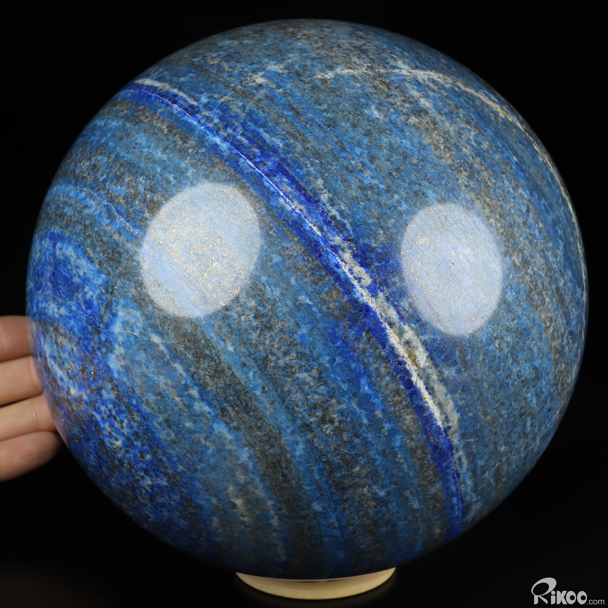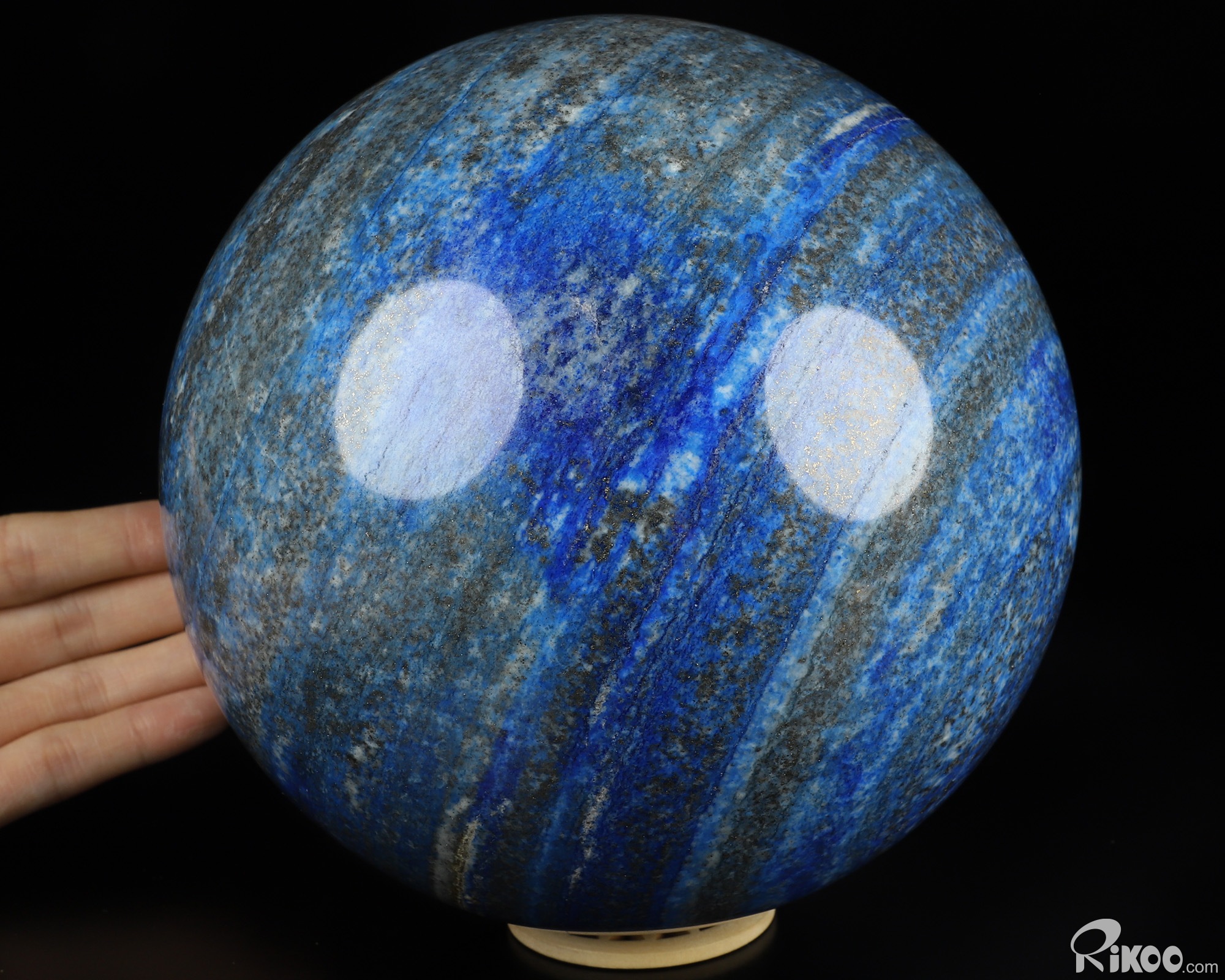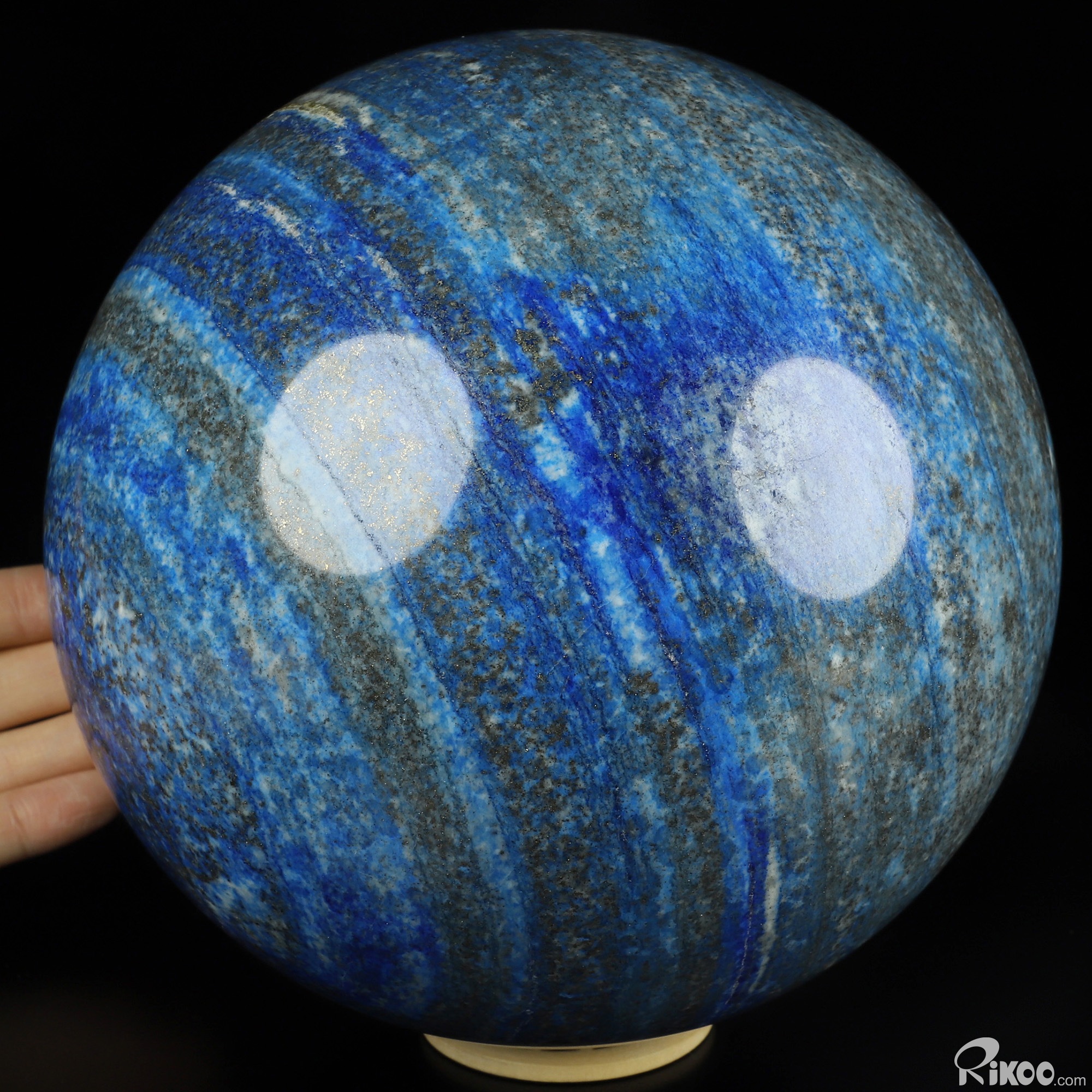 You are looking at a Lapis Lazuli Ball. The Ball is 6.4 inches long from front to back.
