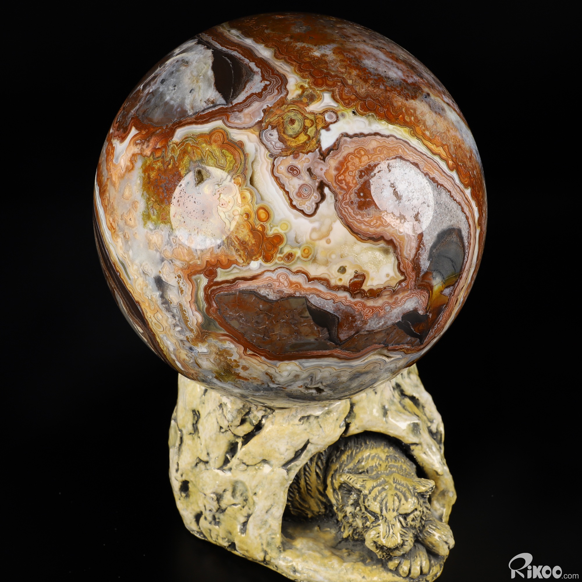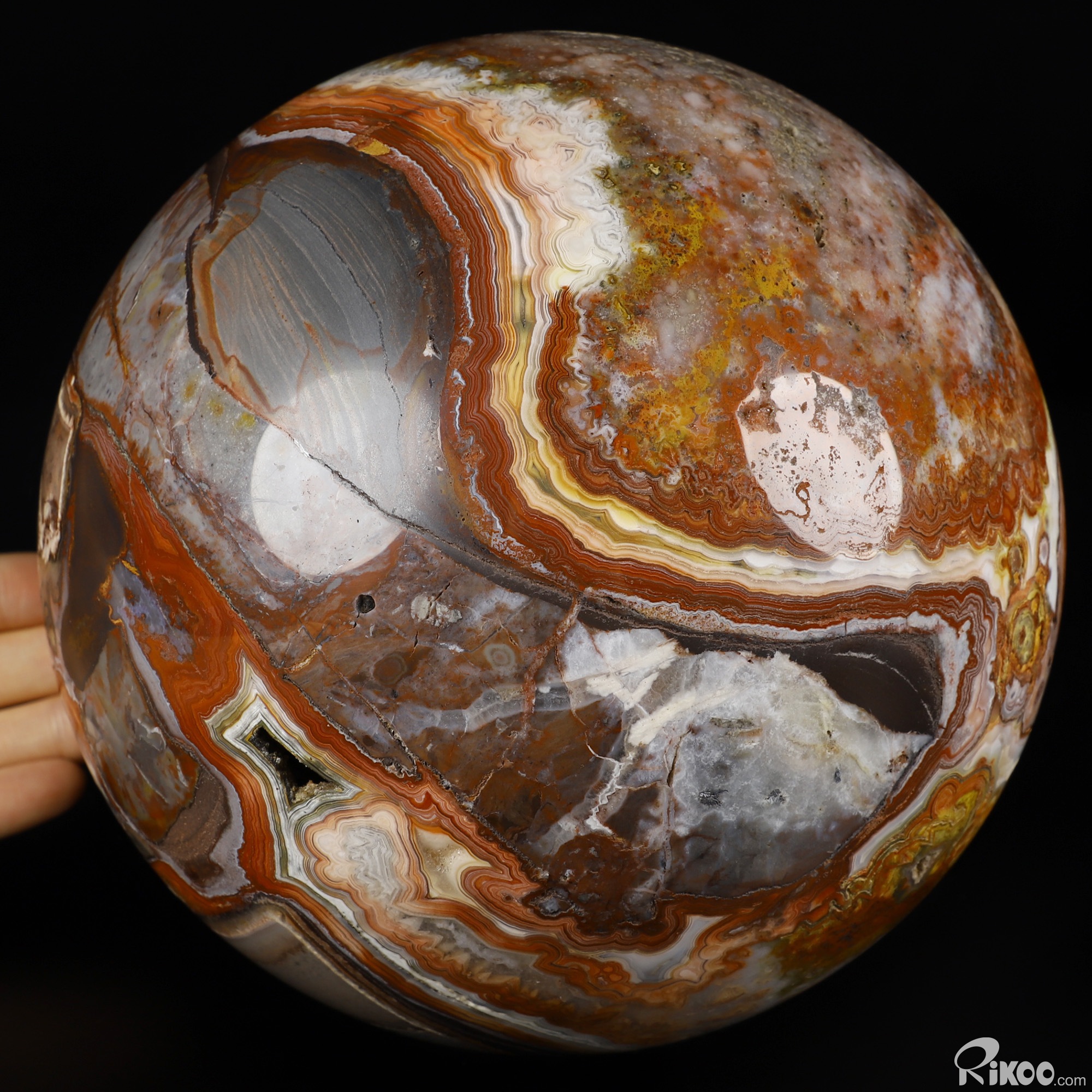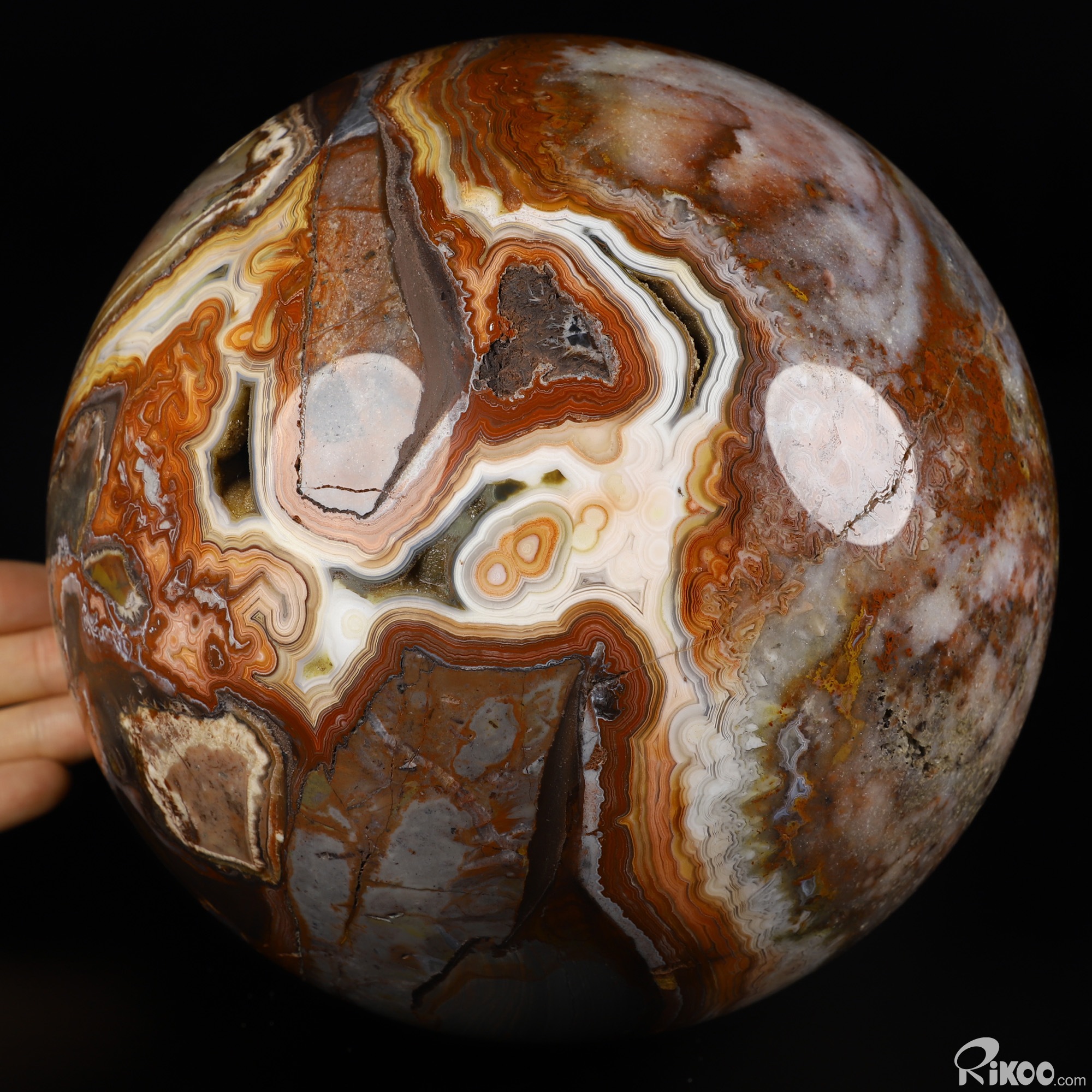 Gemstone 6.5" Red Crazy Lace Agate Hand Carved Crystal Ball/Sphere, Crystal Healing