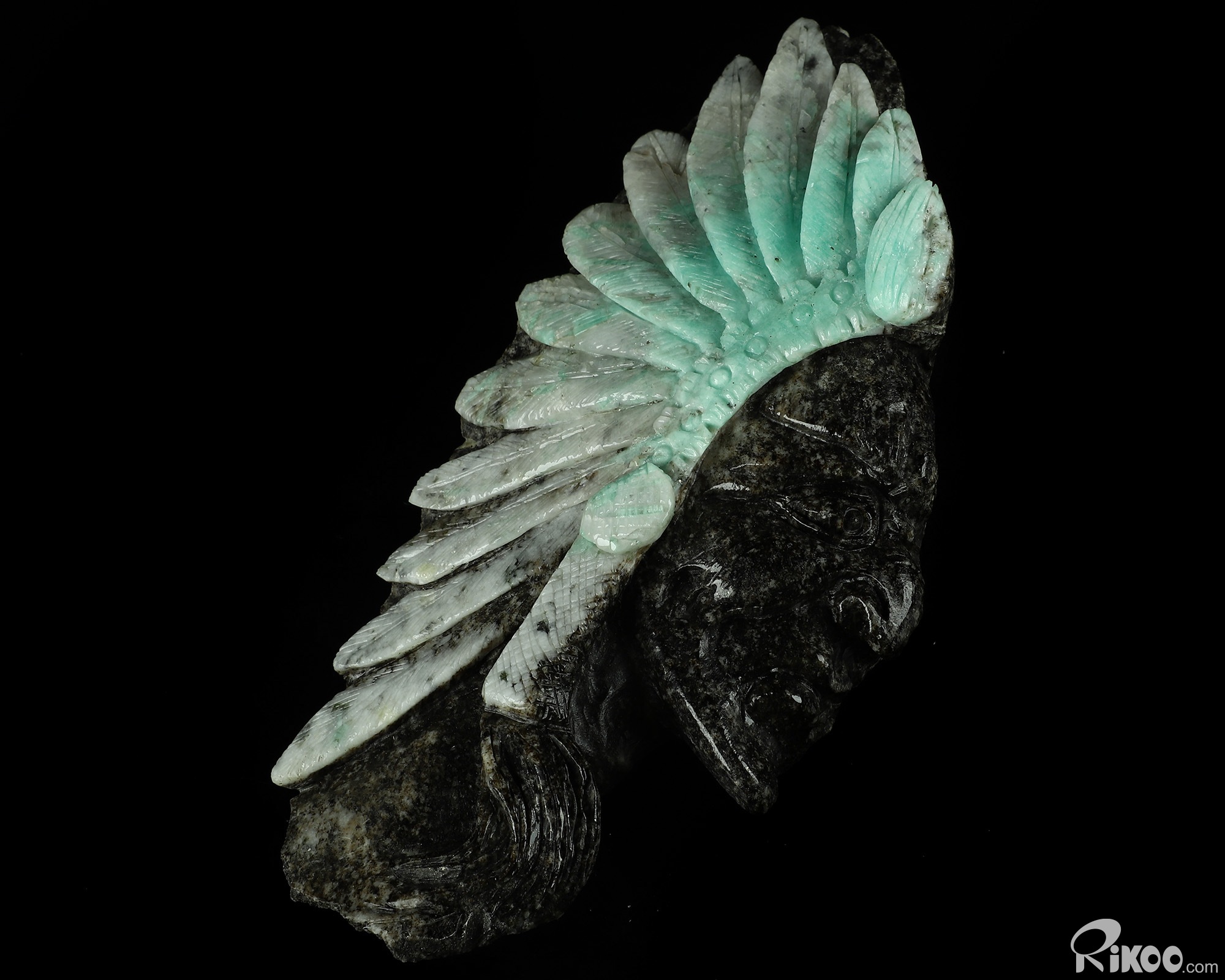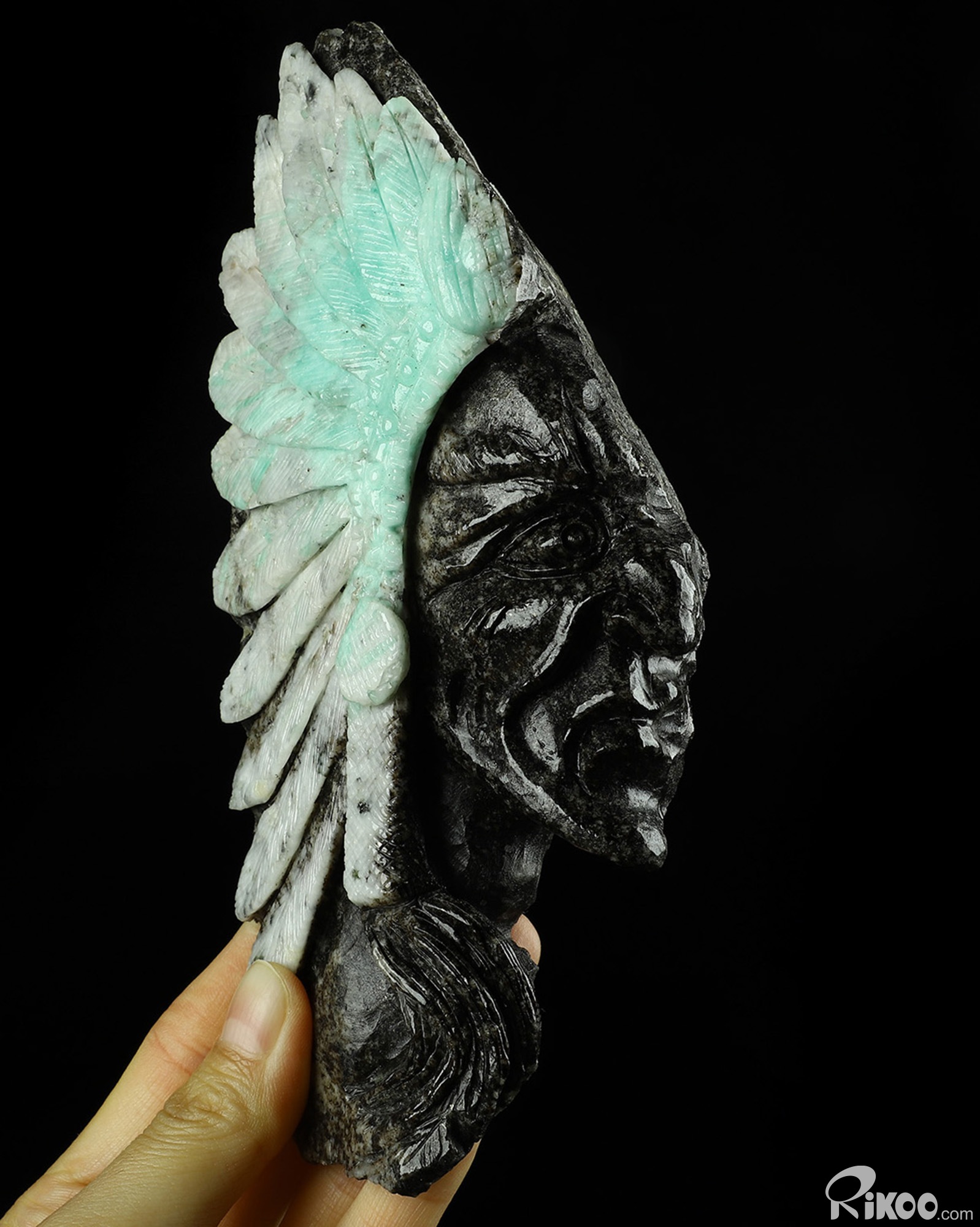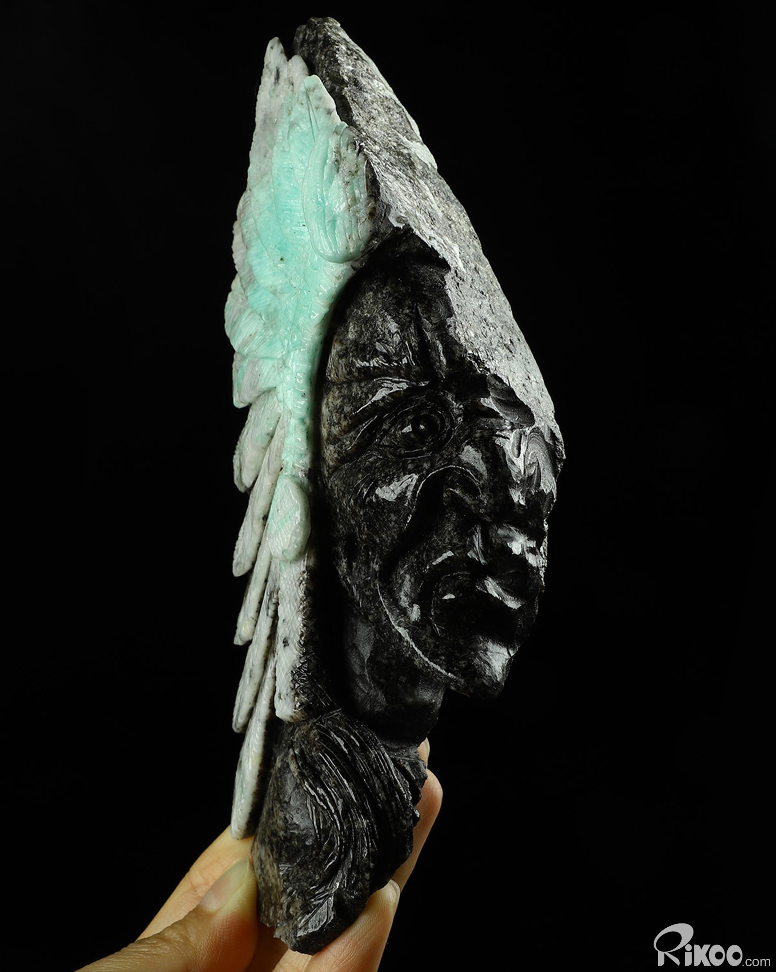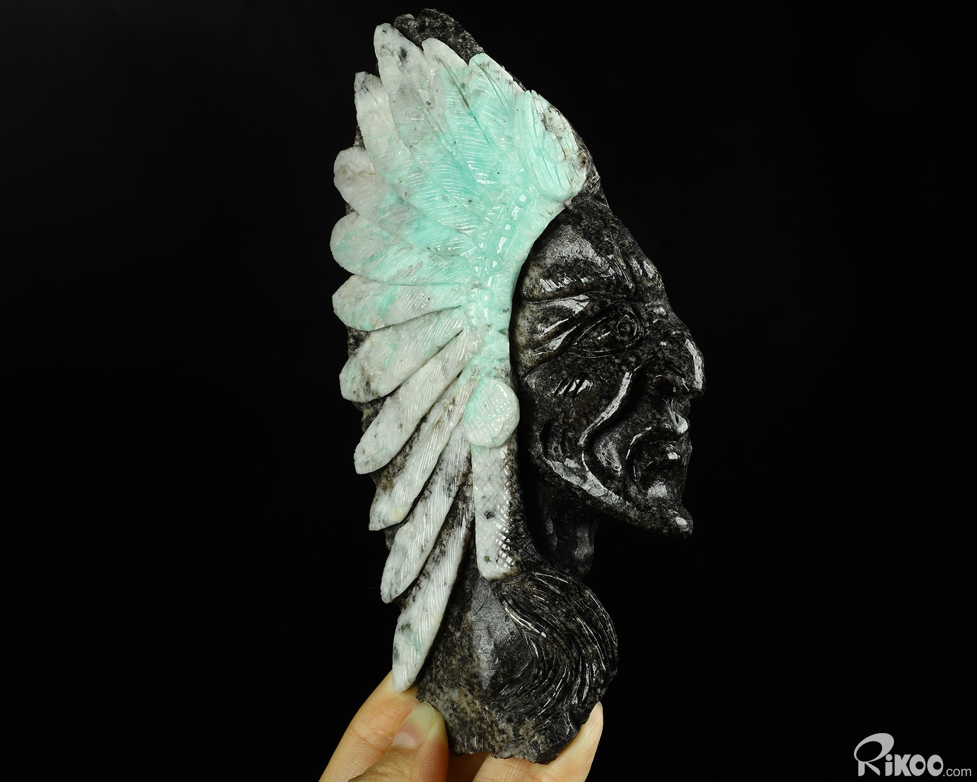 Gemstone 7.0" Emerald Hand Carved Crystal Indian Sculpture, Crystal Healing