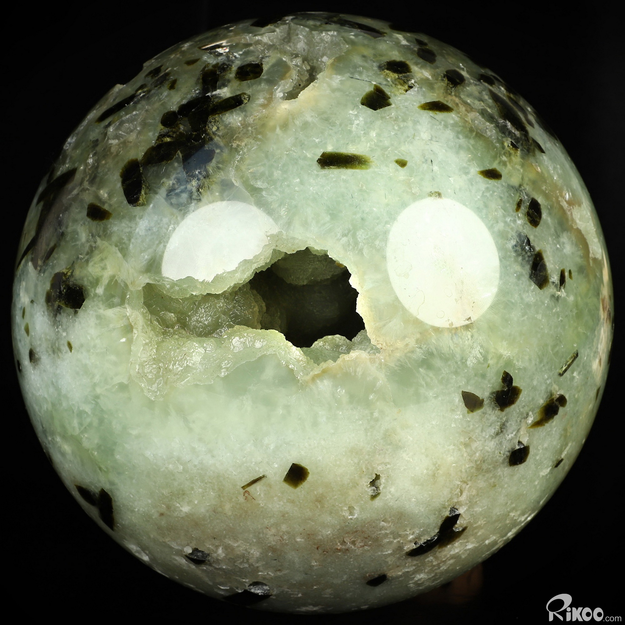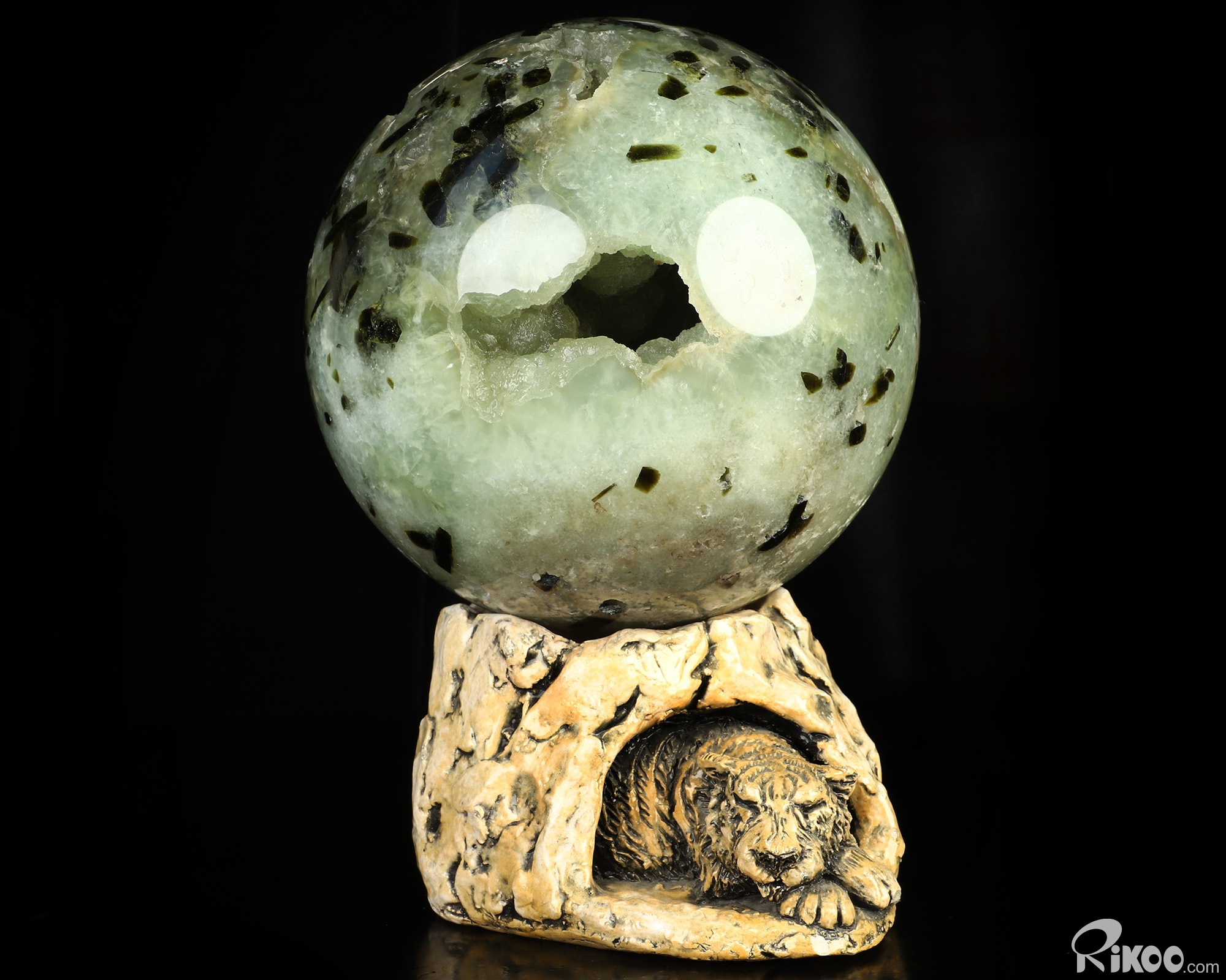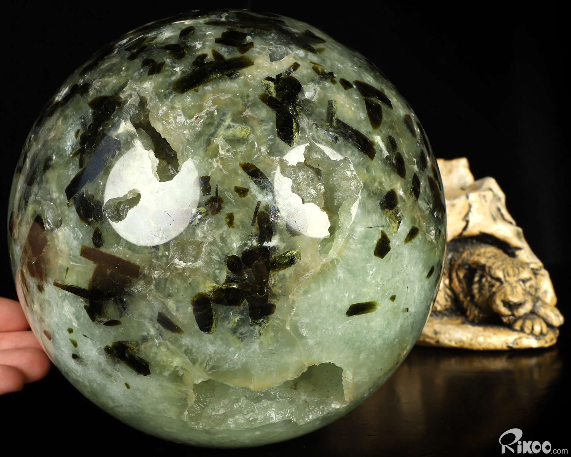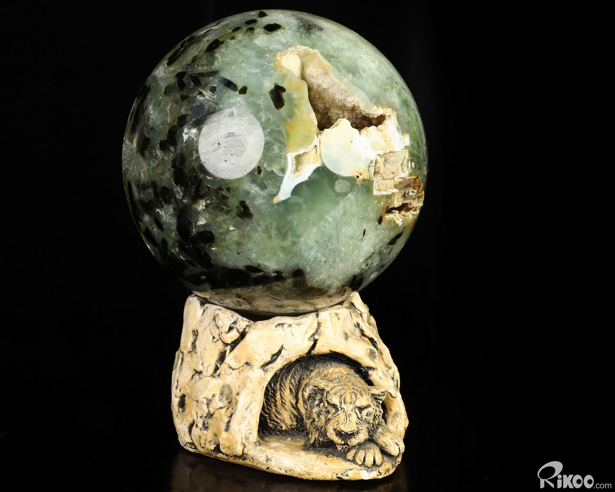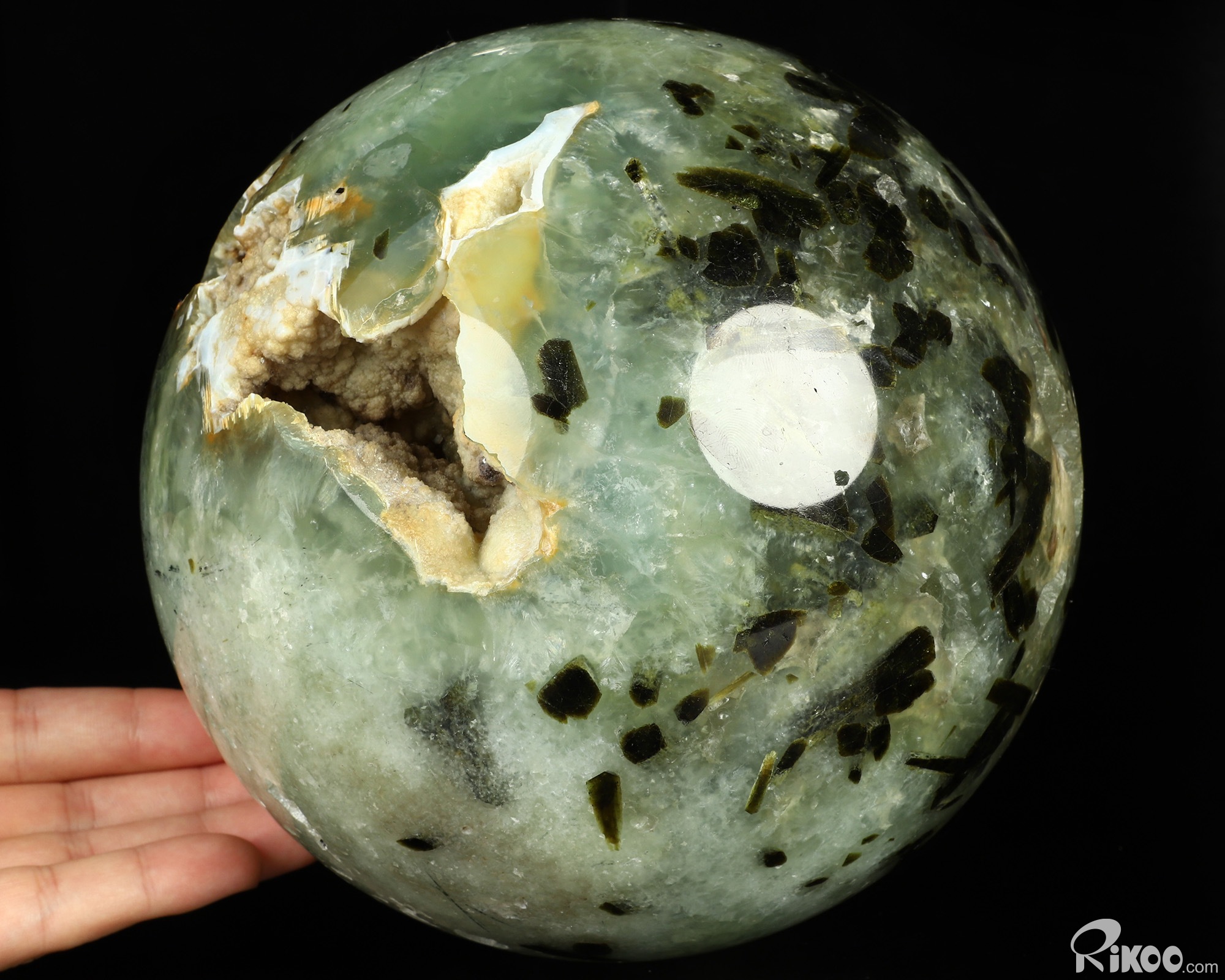 Gemstone 7.1" Prehnite Hand Carved Crystal Ball/Sphere, Crystal Healing