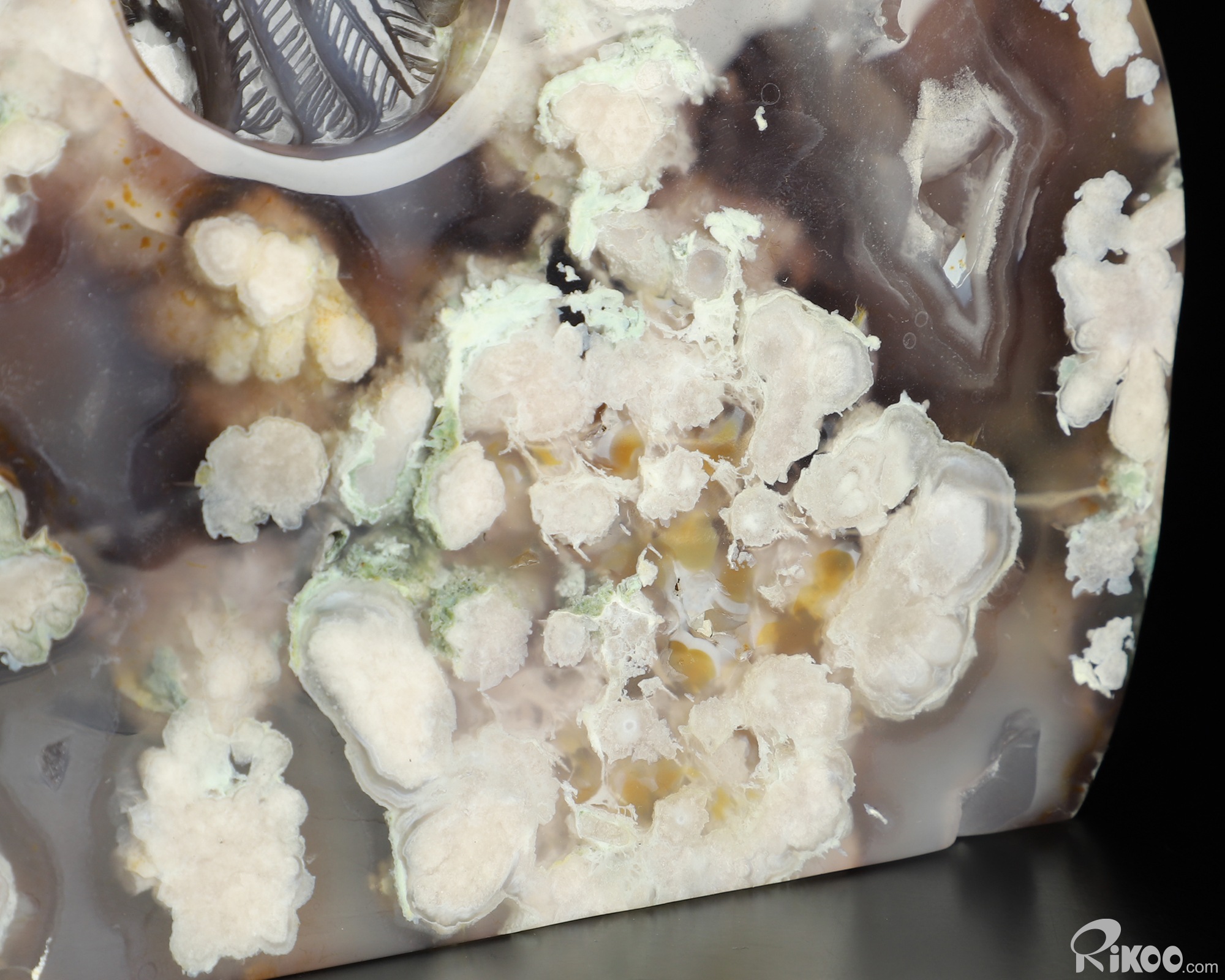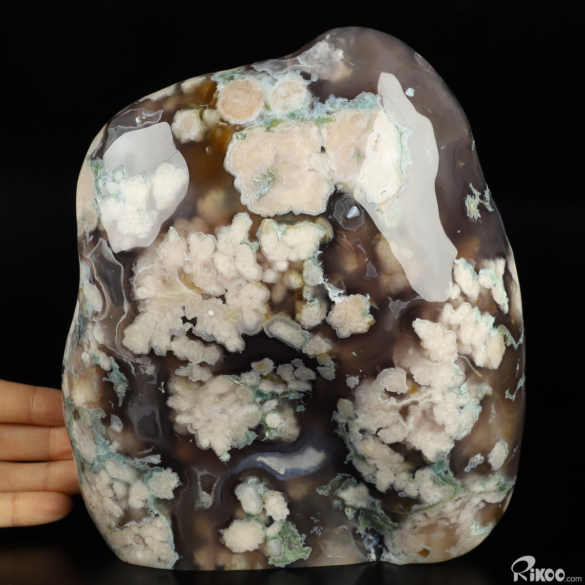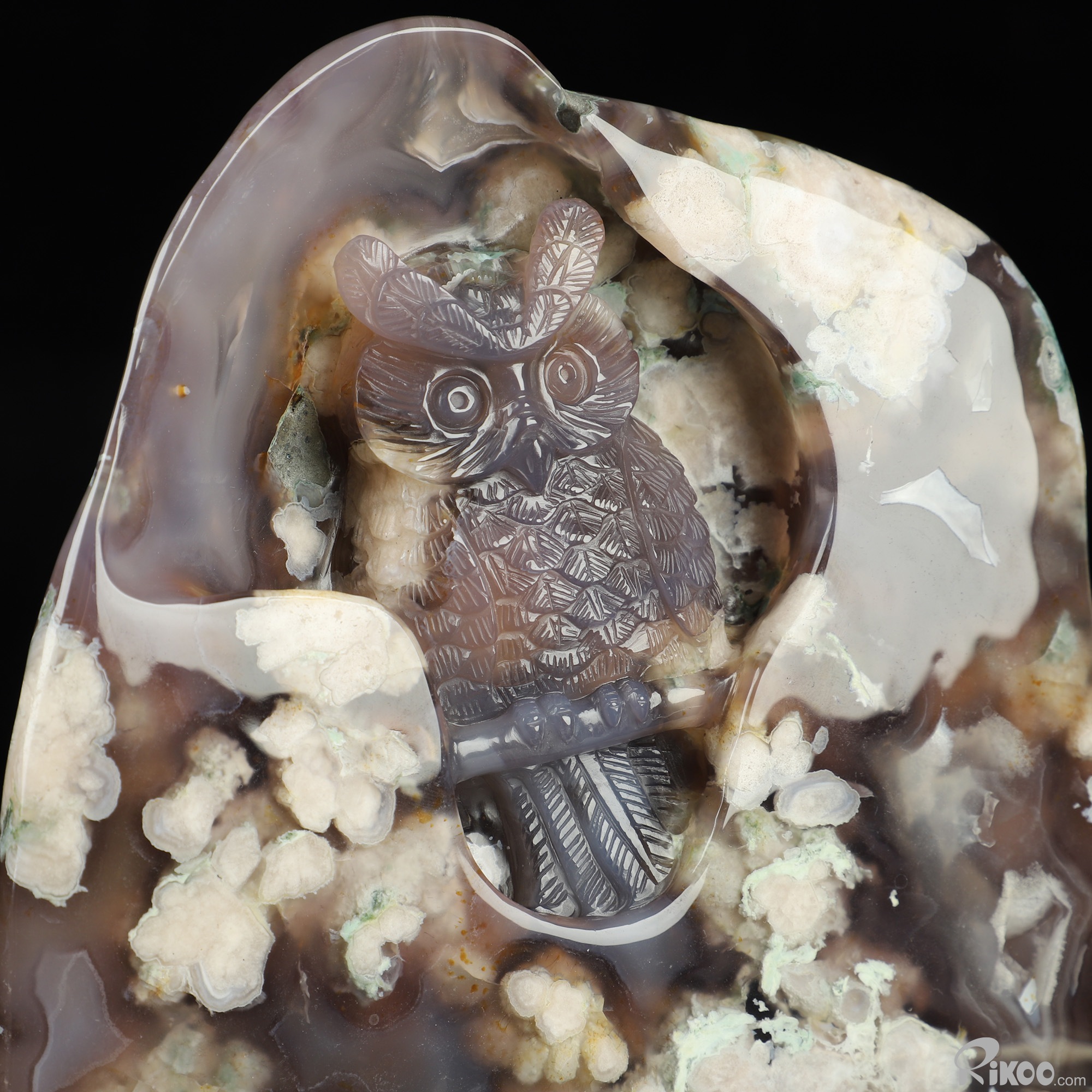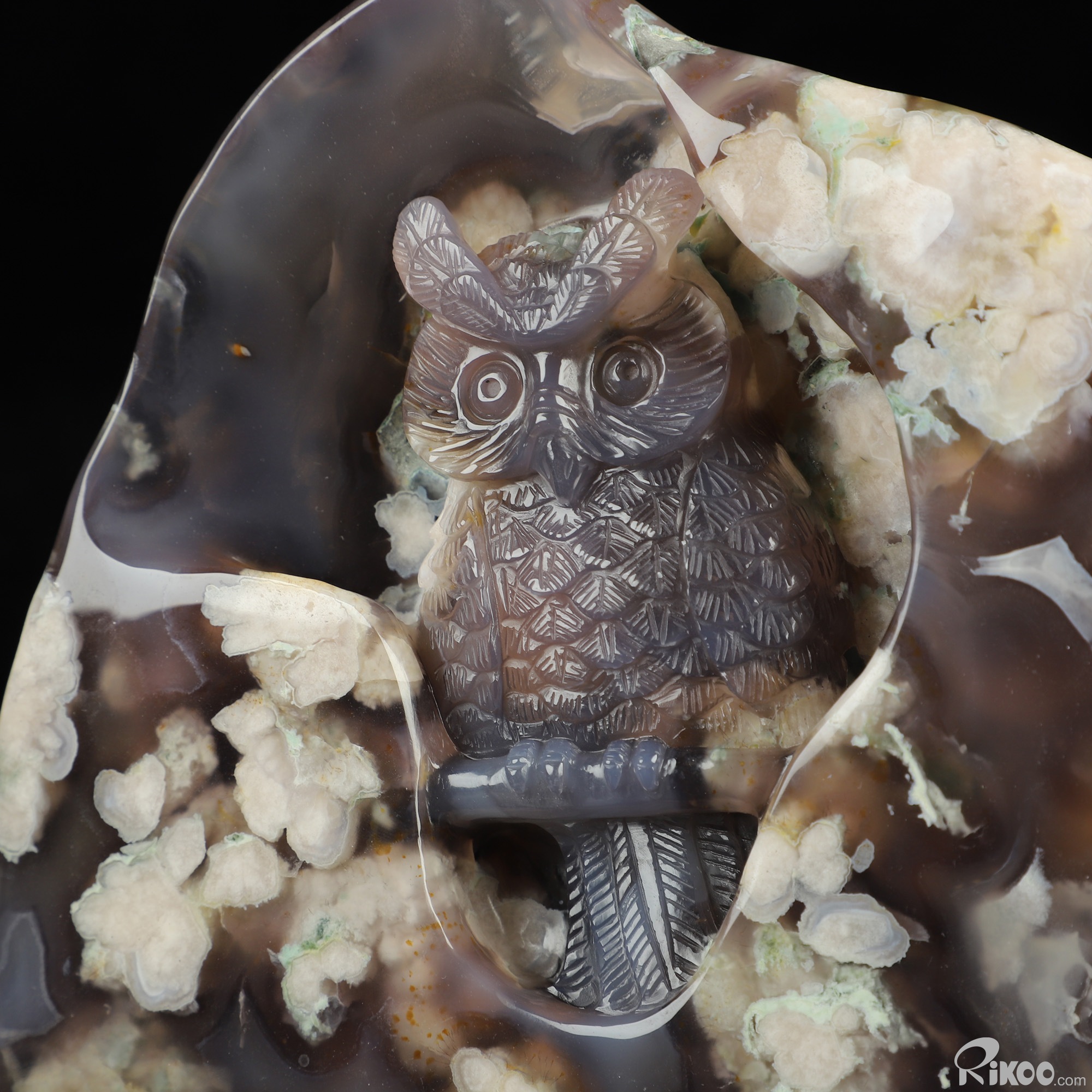 Gemstone 7.1" Sakura Agate Hand Carved Crystal Owl Sculpture, Crystal Healing