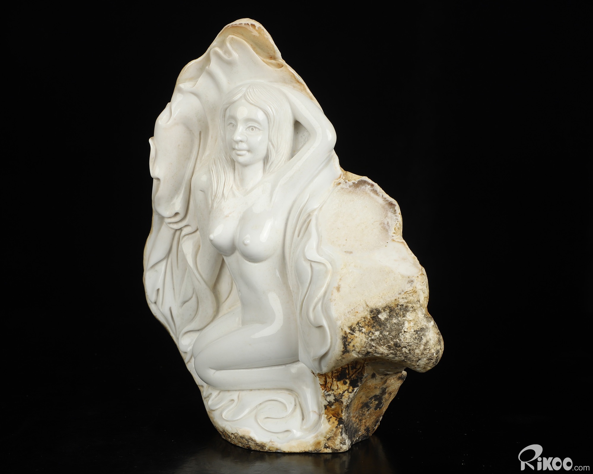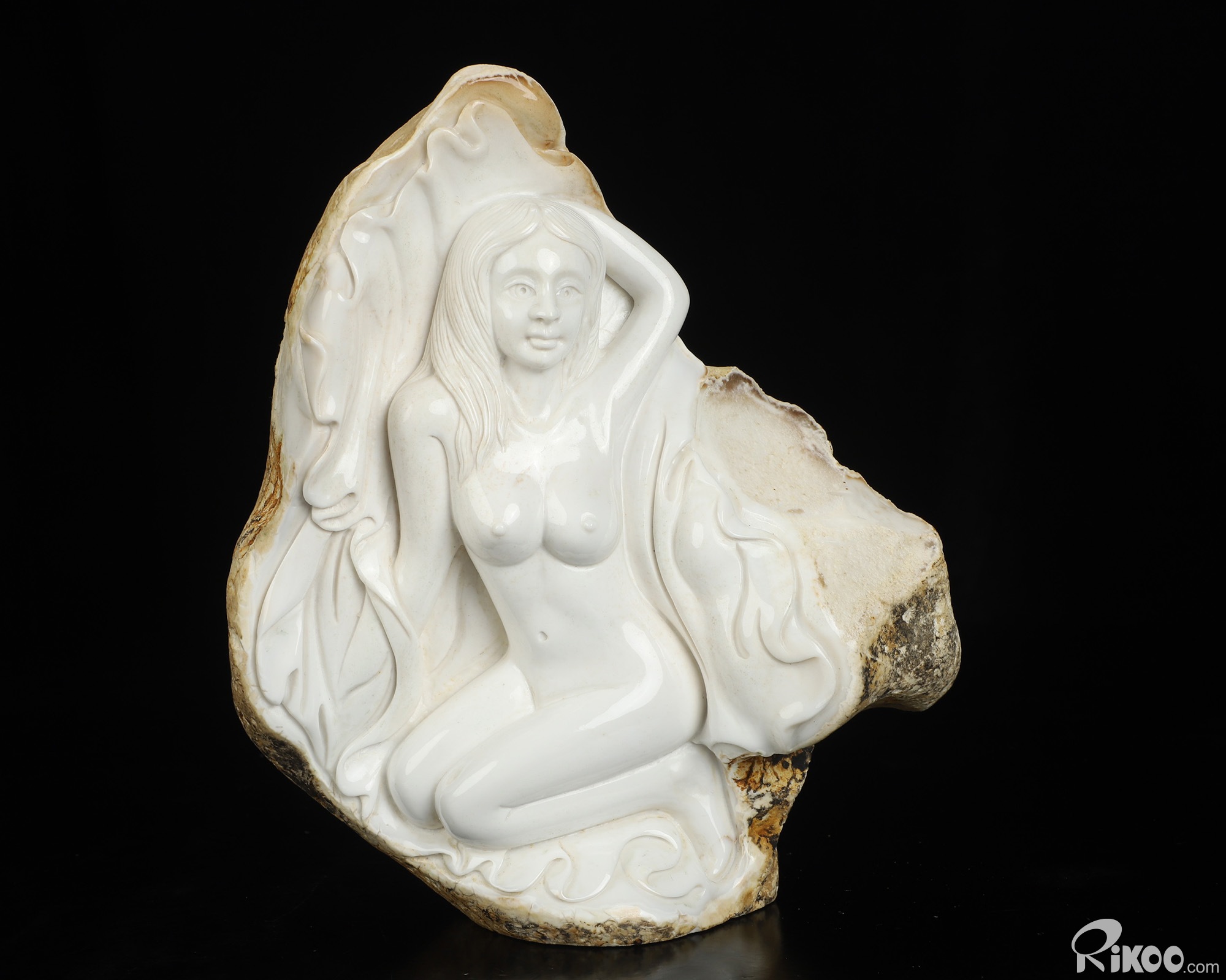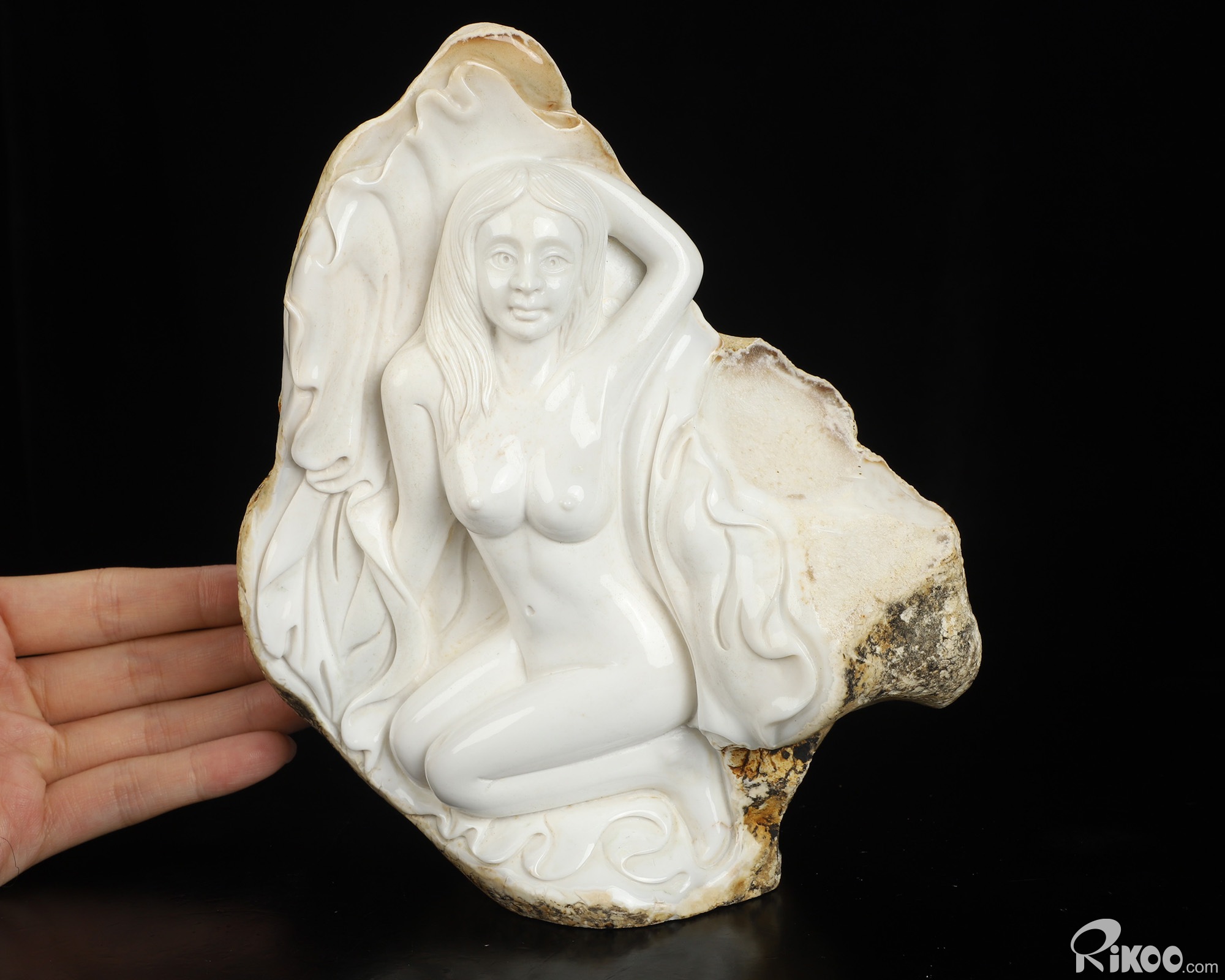 Gemstone 7.1" White Chalcedony Hand Carved Crystal Beauty Sculpture, Crystal Healing