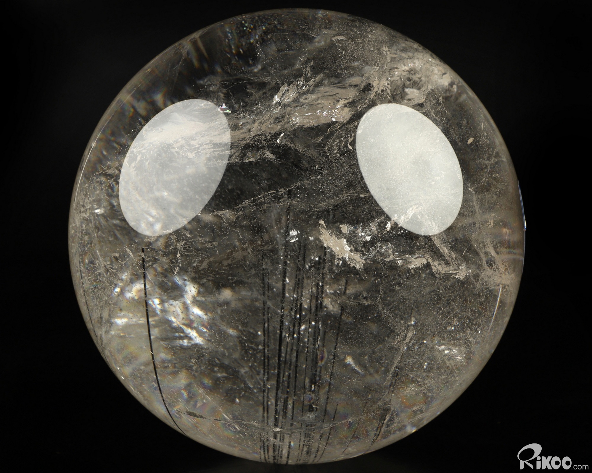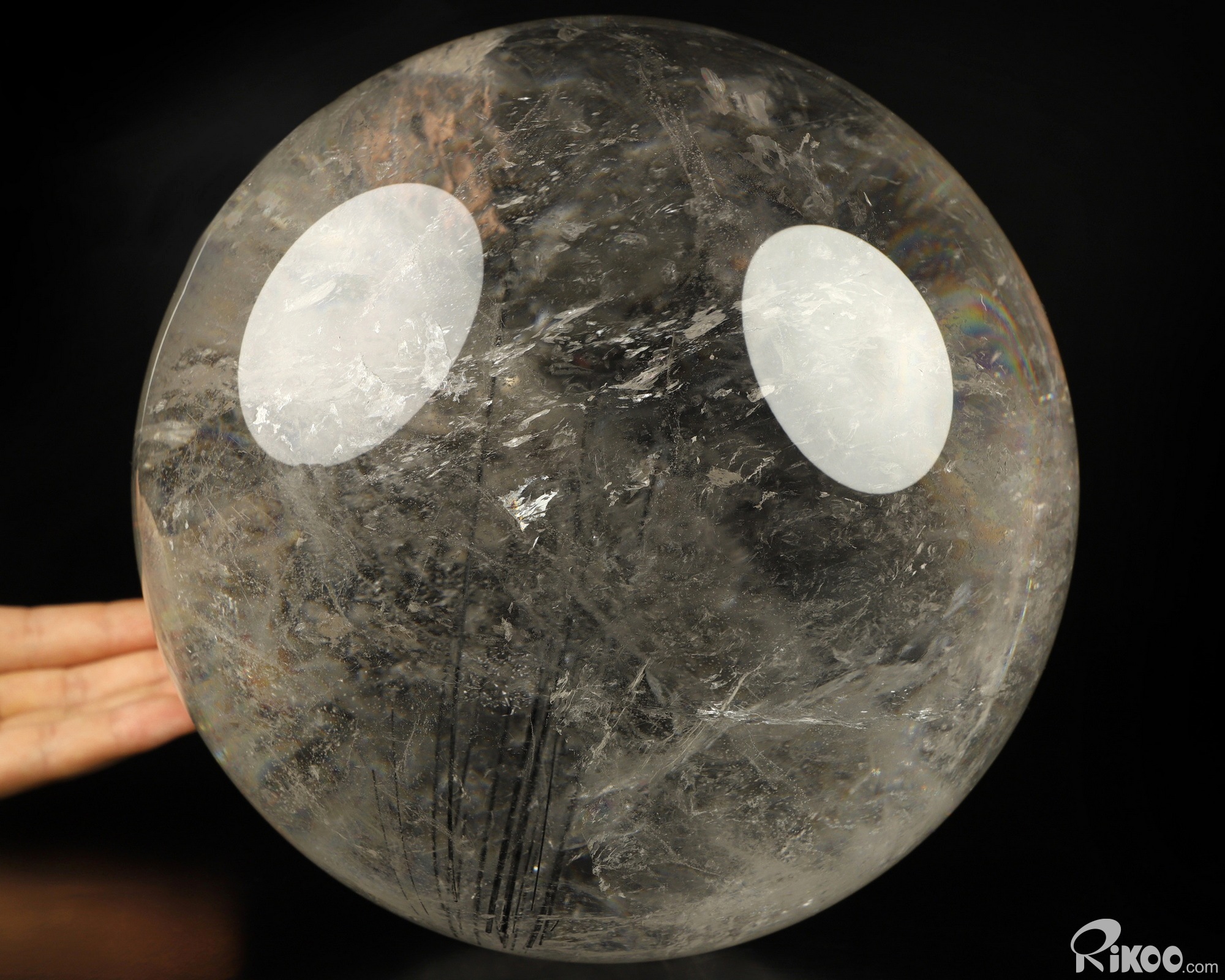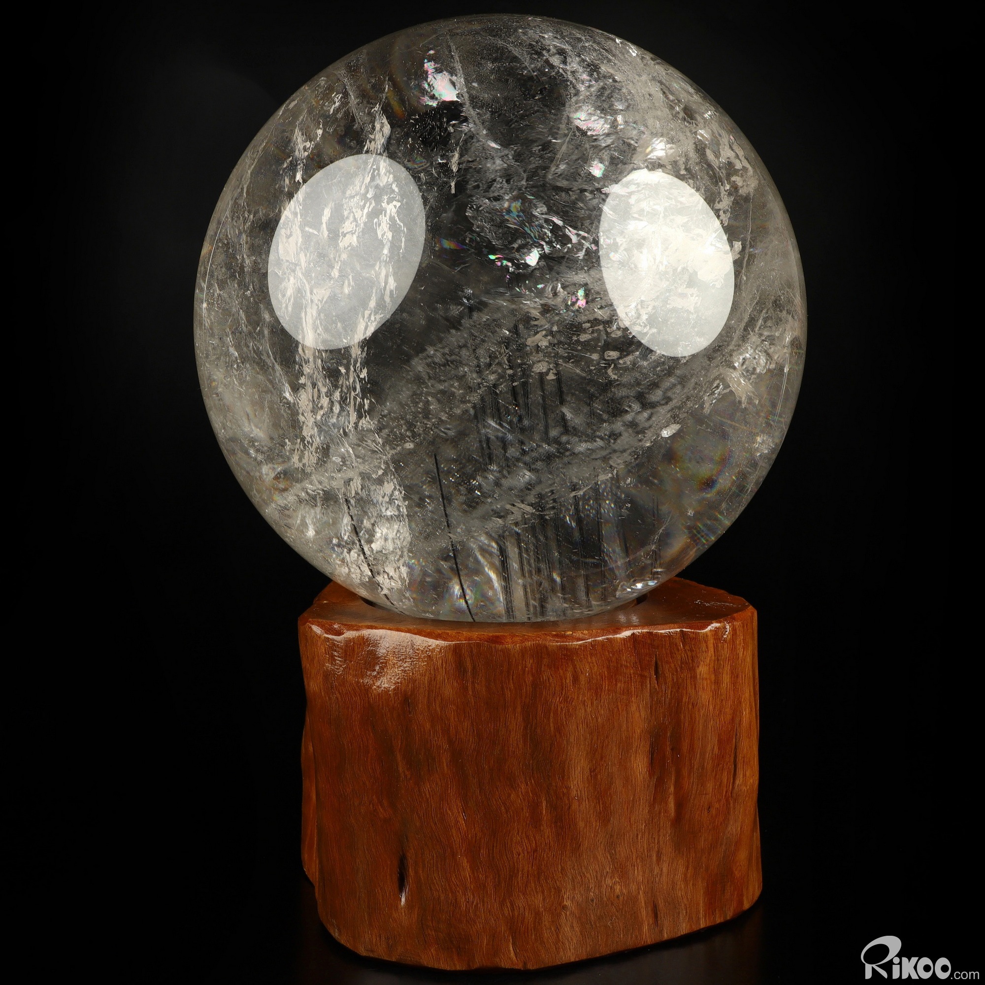 You are looking at a Rutilated Quartz Rock Crystal ball. The ball is 7.2 inches long from front to back.