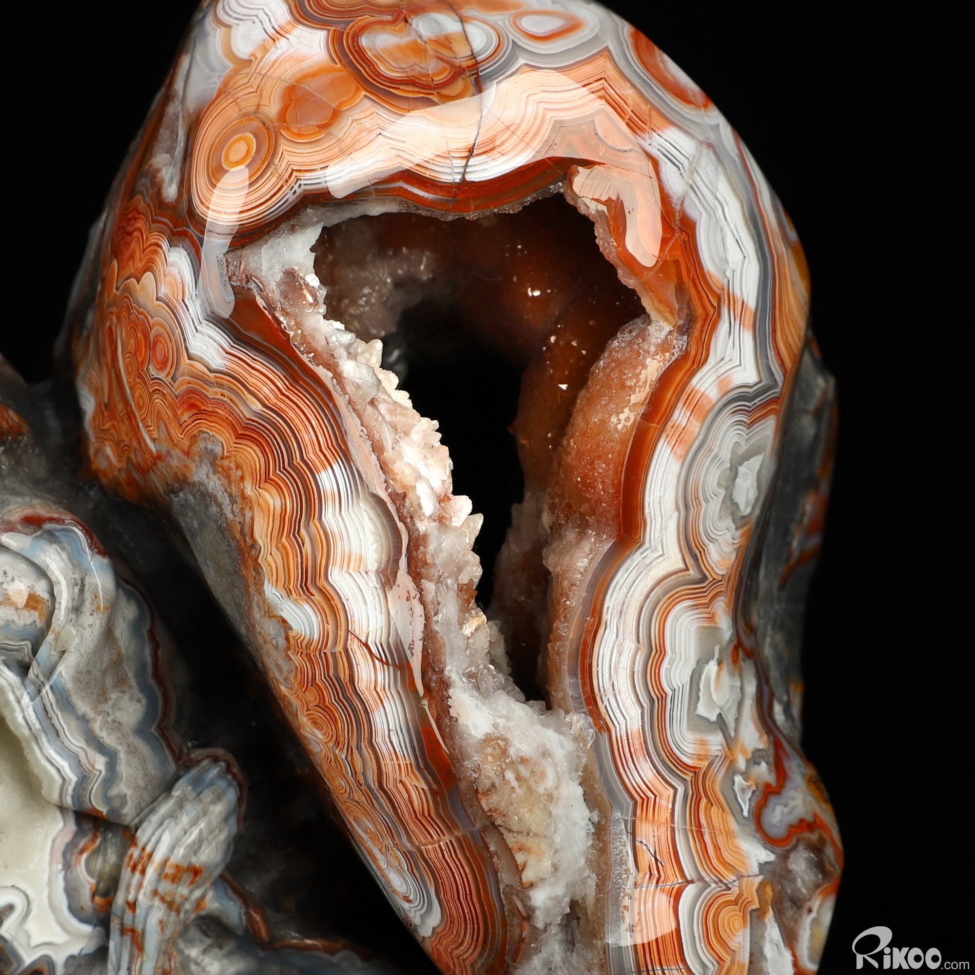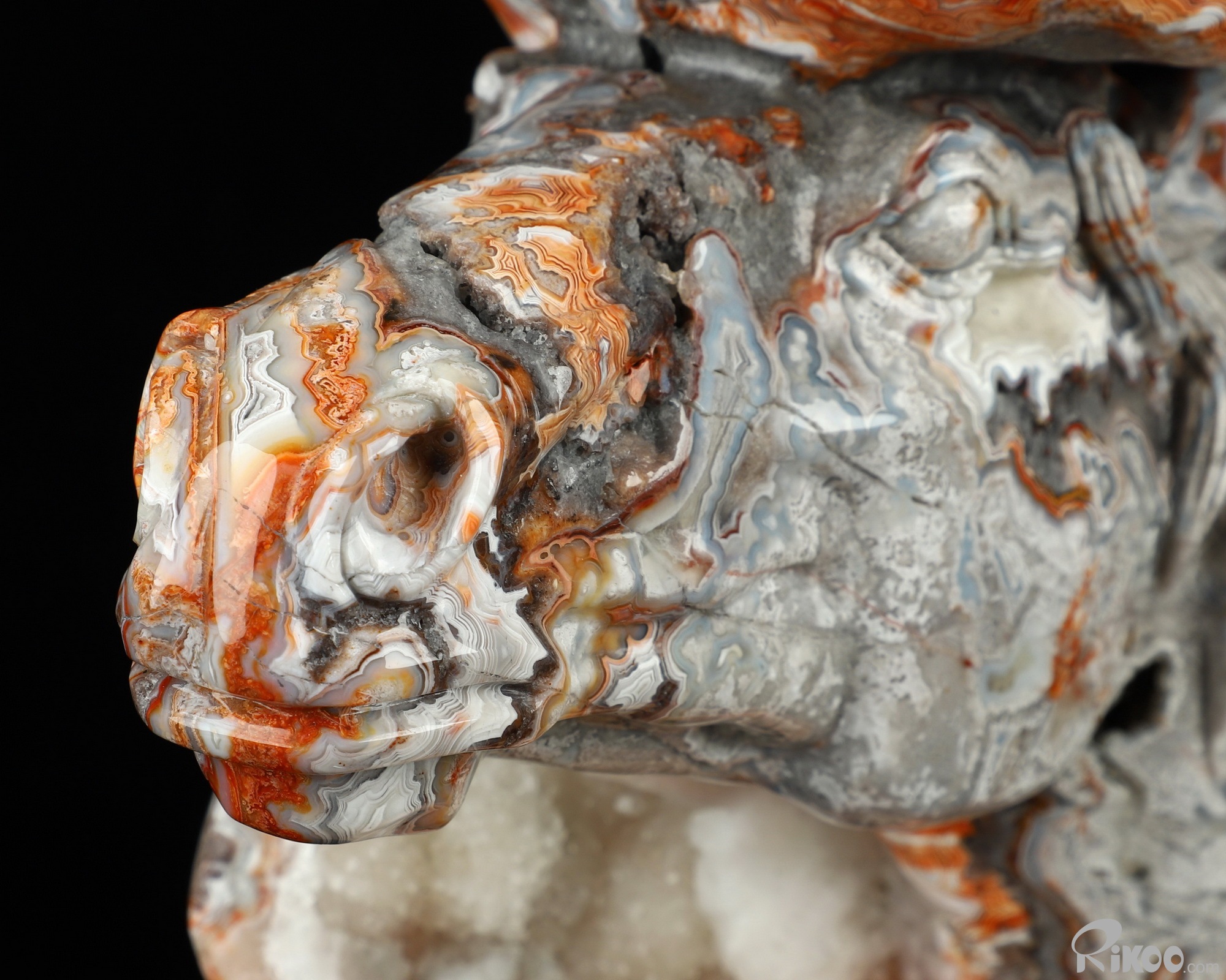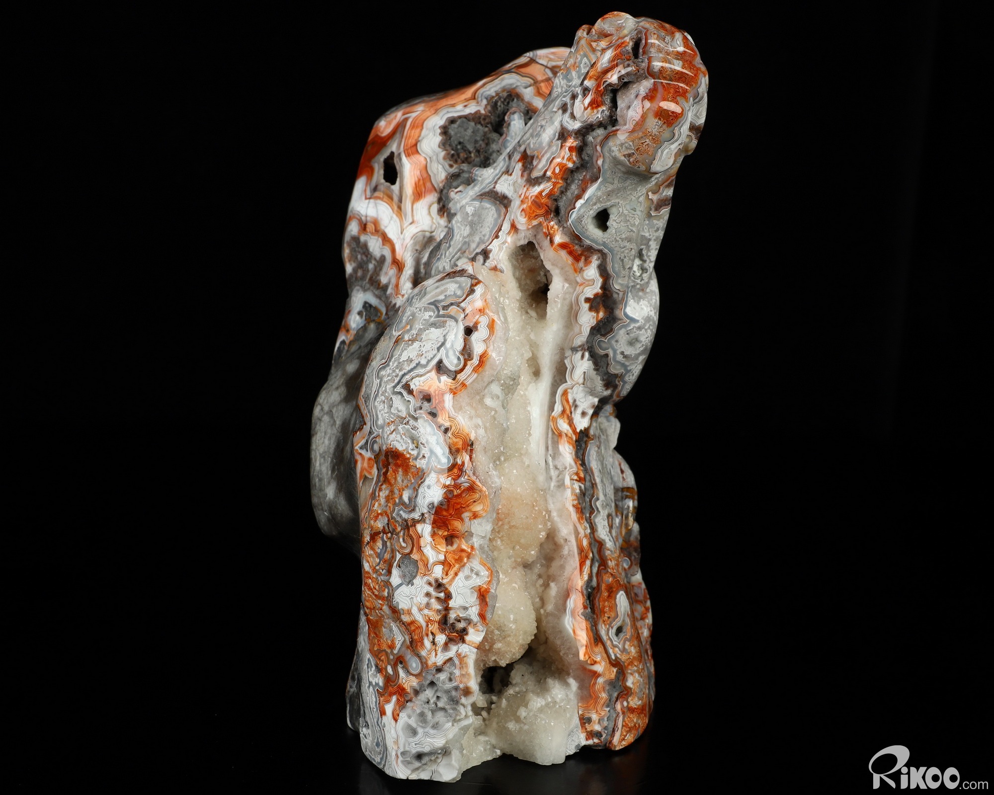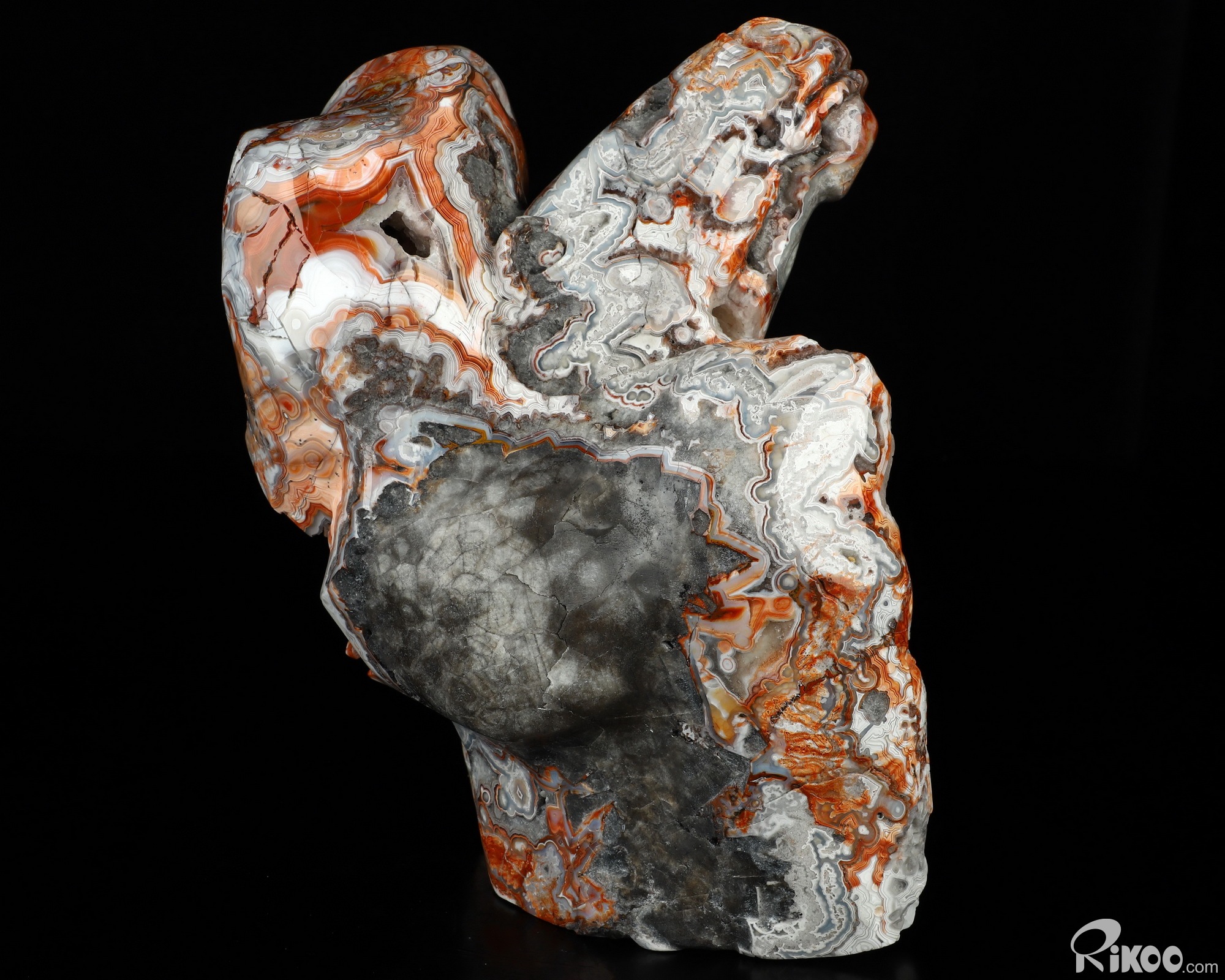 You are looking at a Red Crazy Lace Agate sculpture. The sculpture is 7.6 inches long.