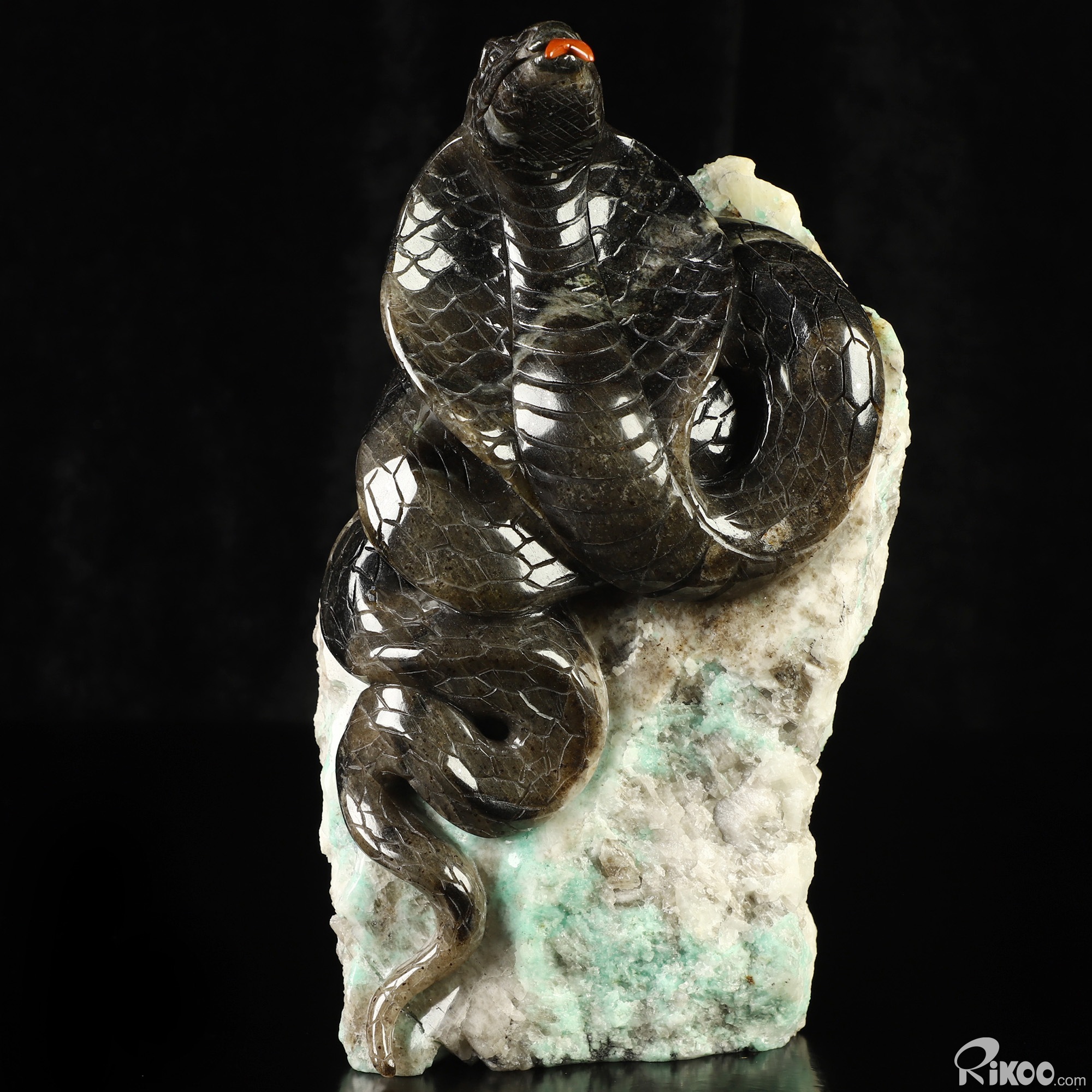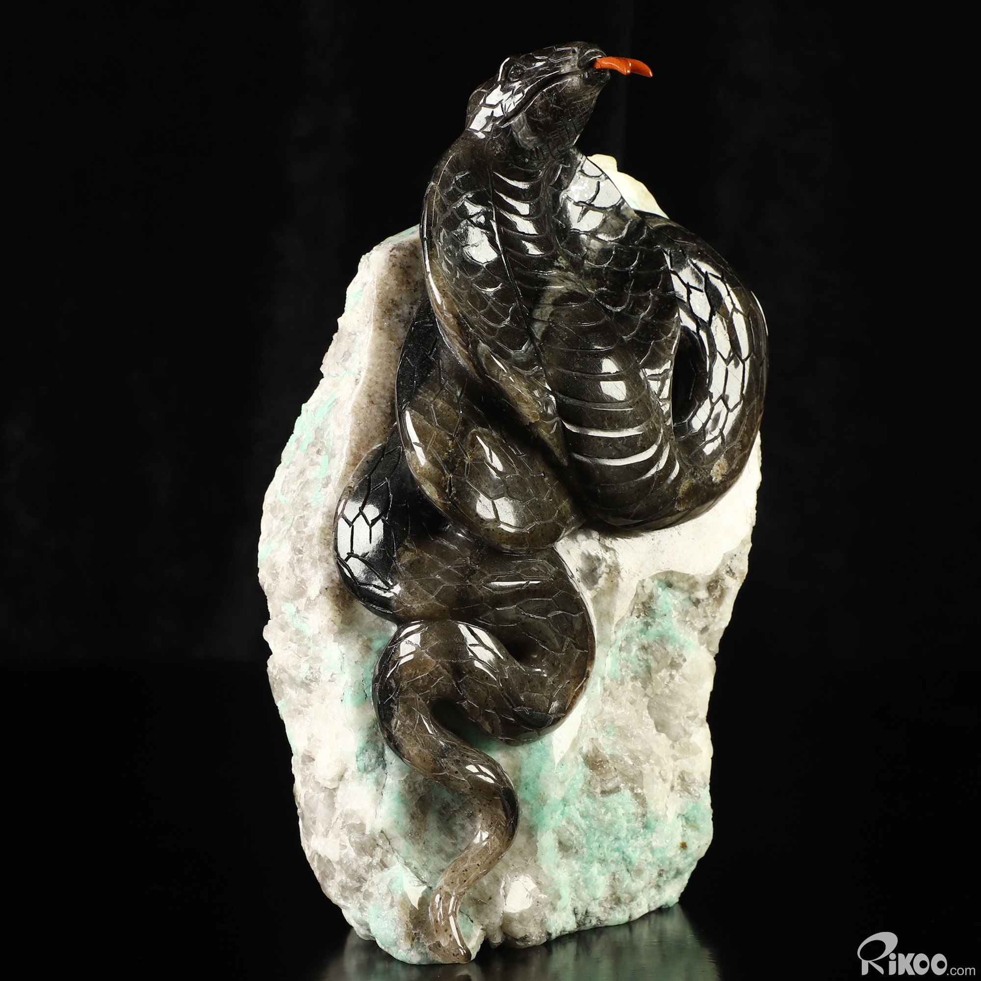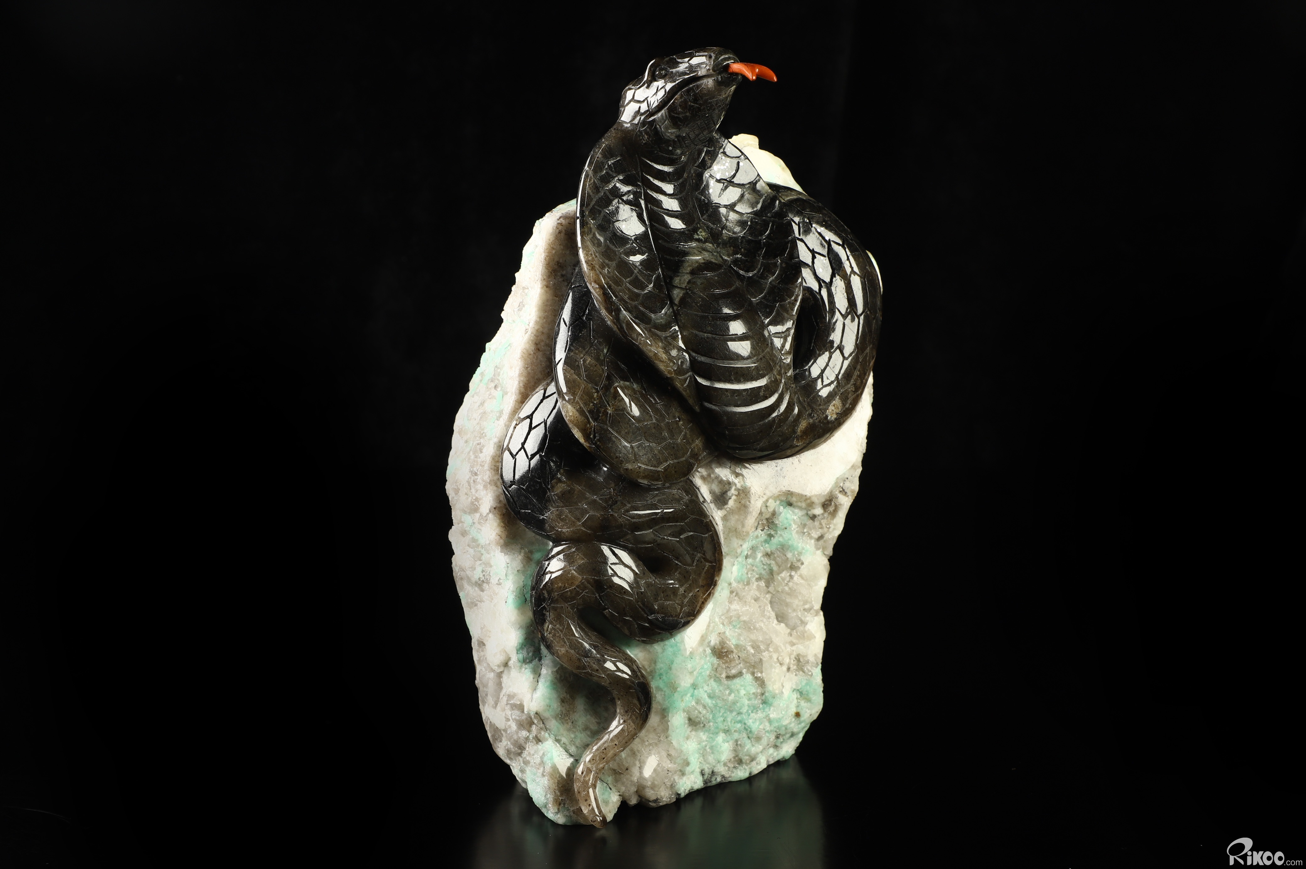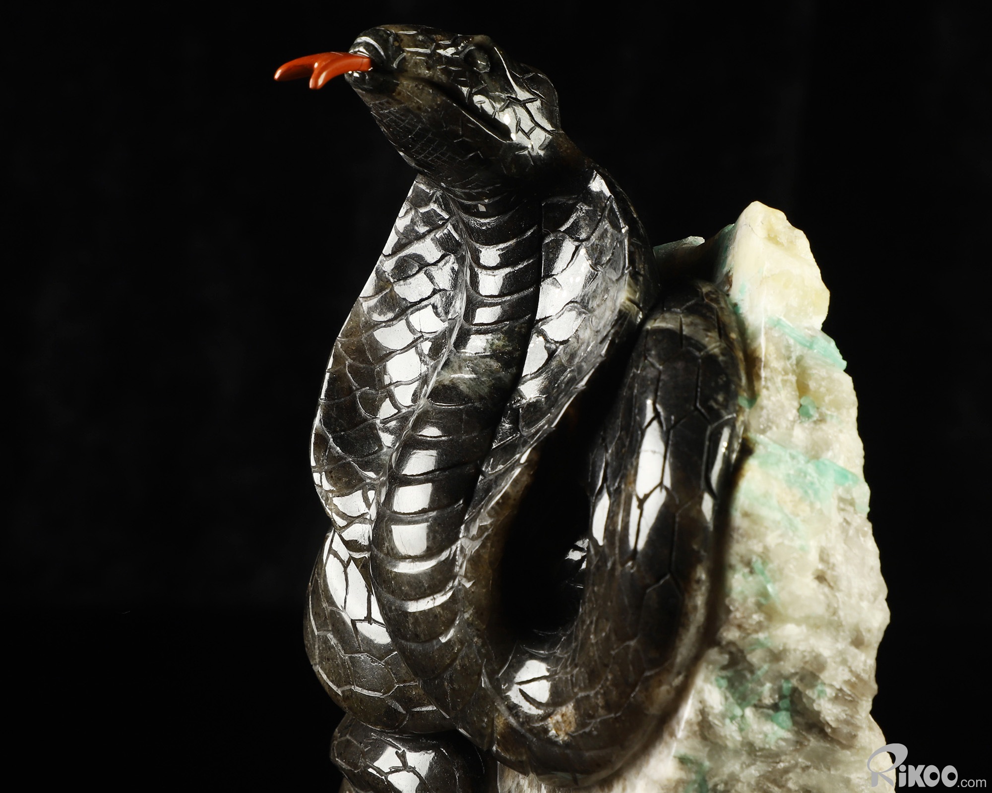 Gemstone 8.3" Emerald Hand Carved Crystal Snake Sculpture, Crystal Healing