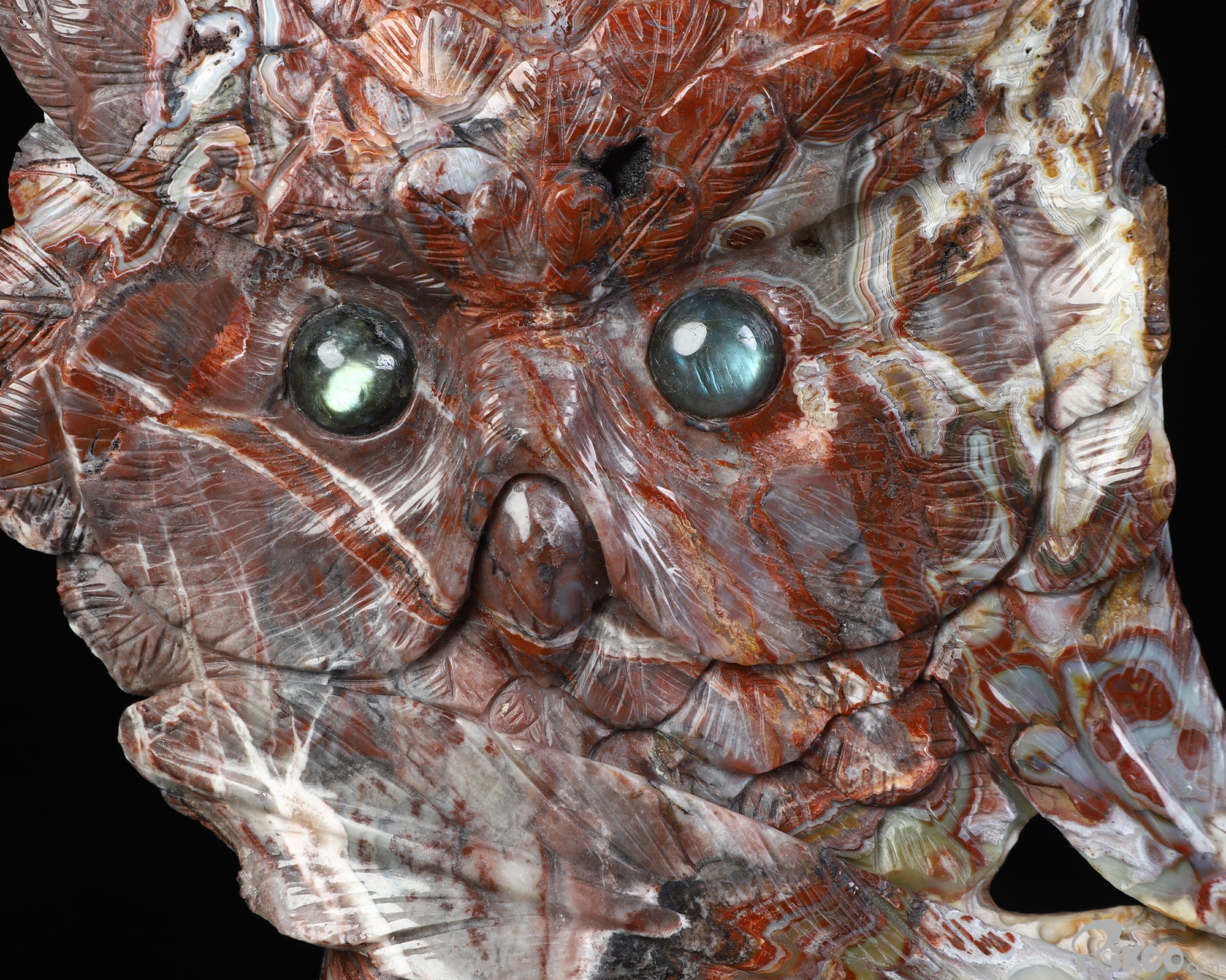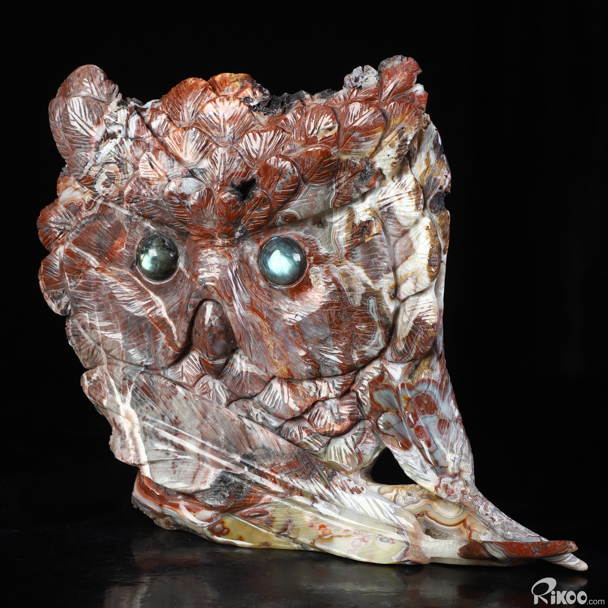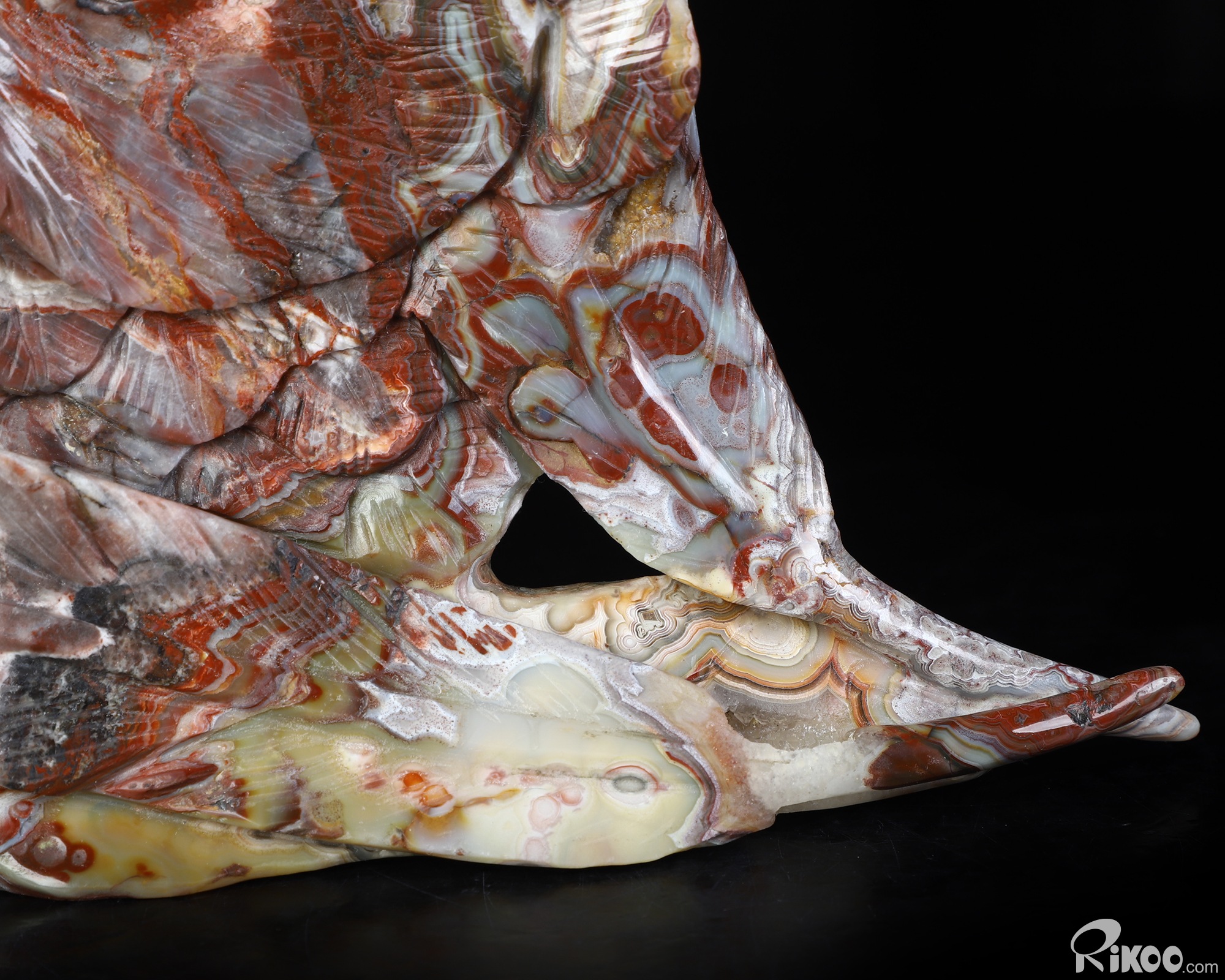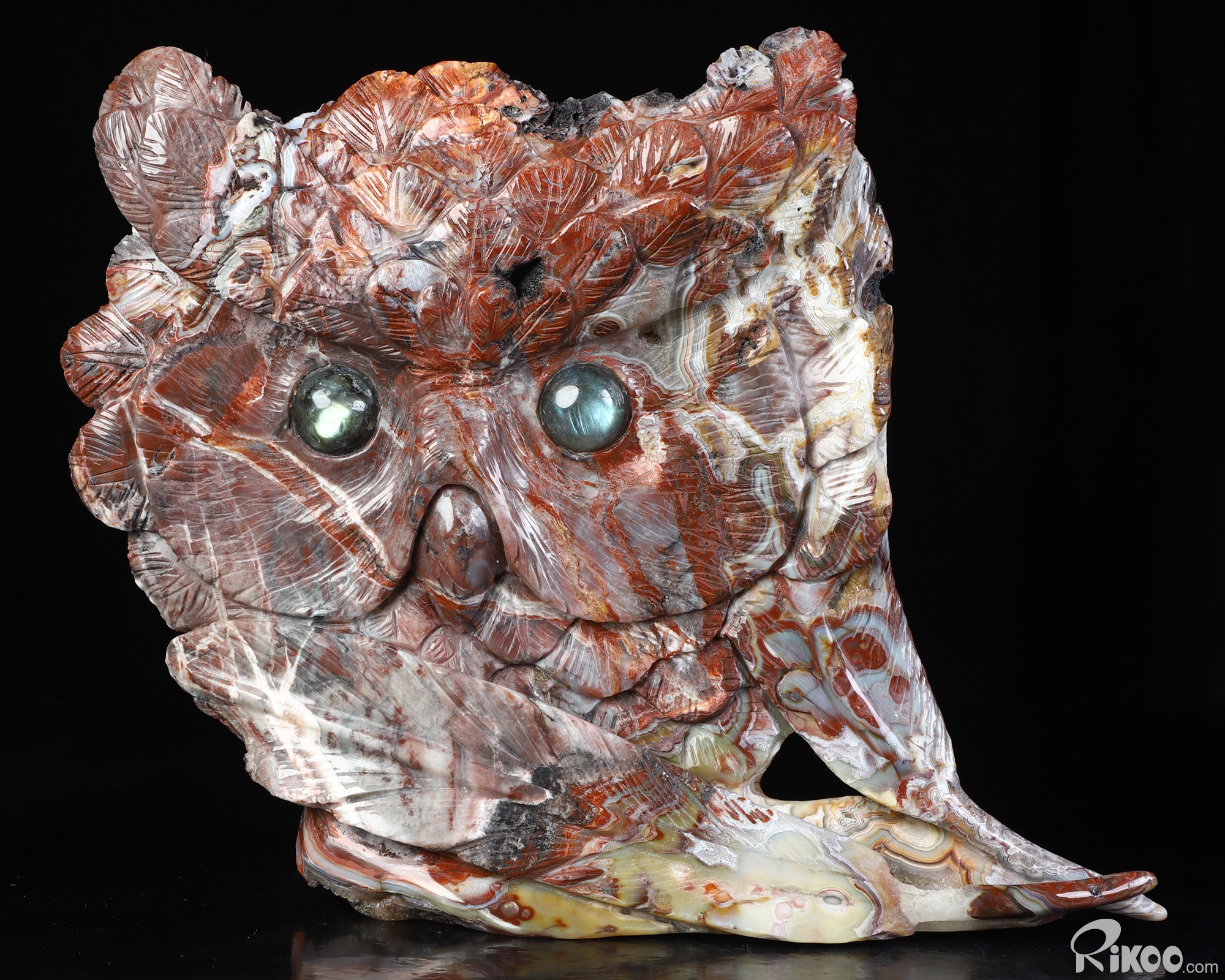 Gemstone 8.5" Red Crazy Lace Agate Hand Carved Crystal Owl Sculpture, Crystal Healing