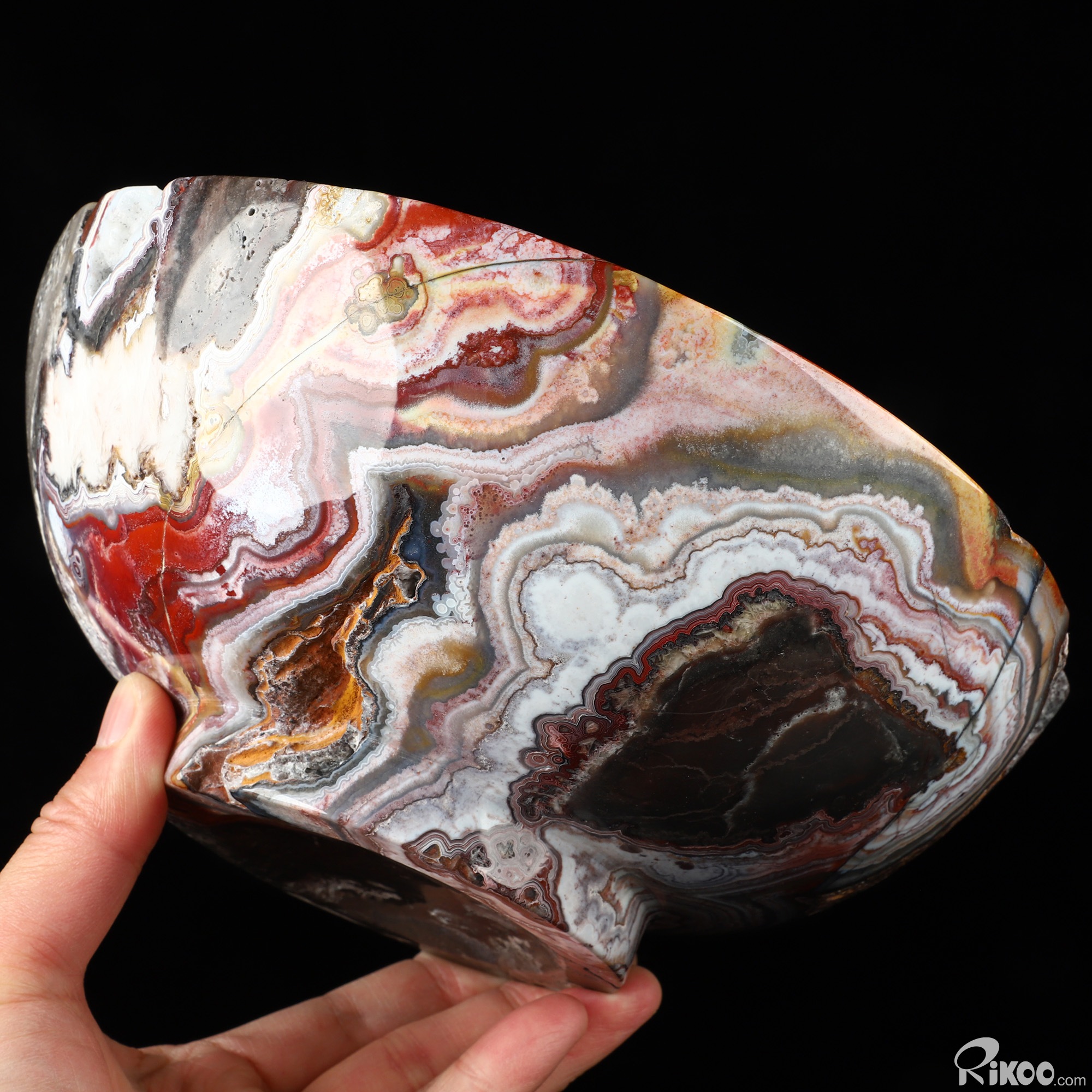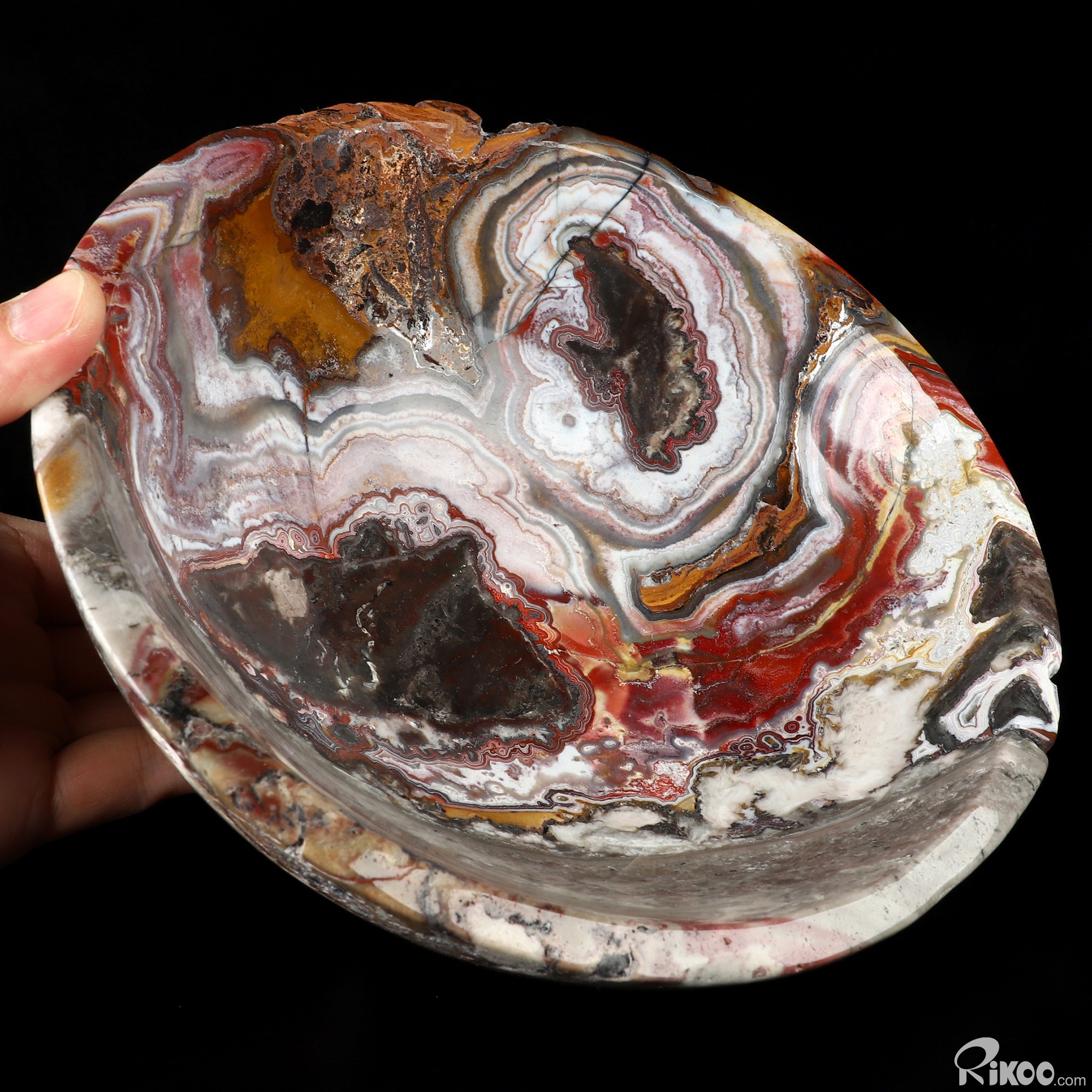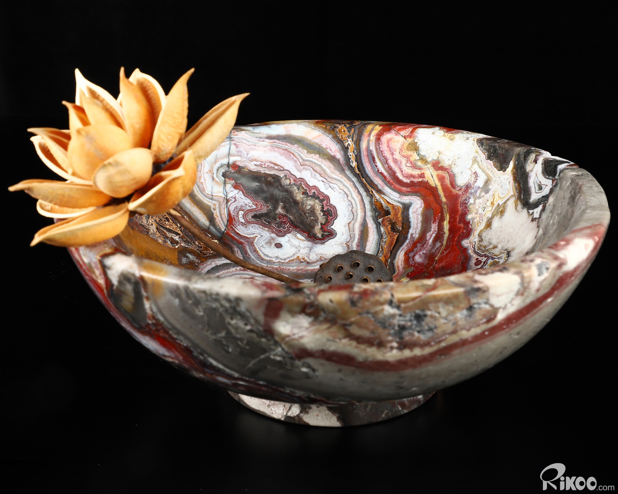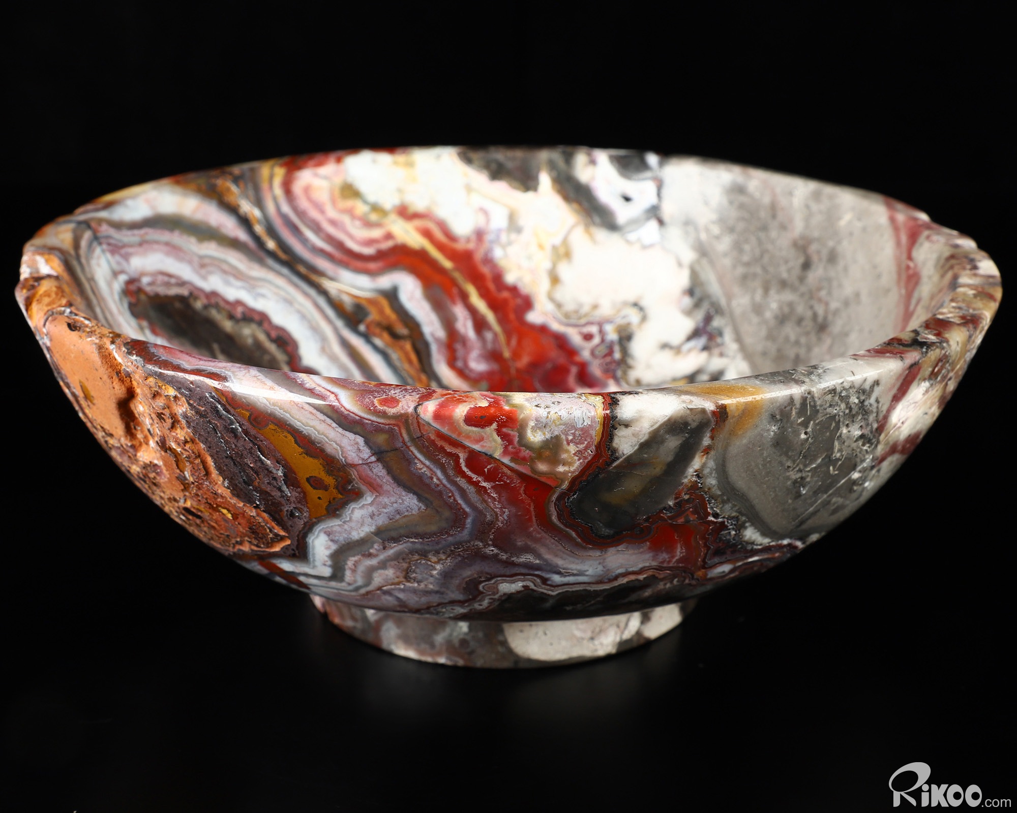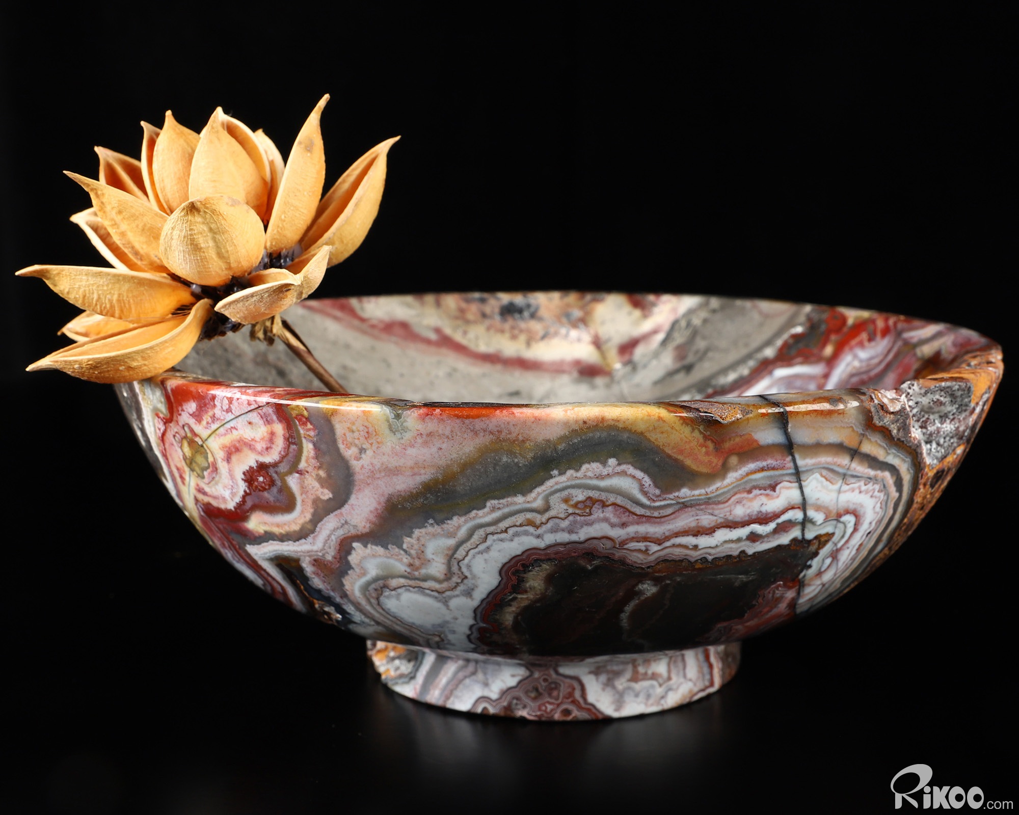 Gemstone 8.6" Red Crazy Lace Agate Hand Carved Crystal Bowl, Crystal Healing