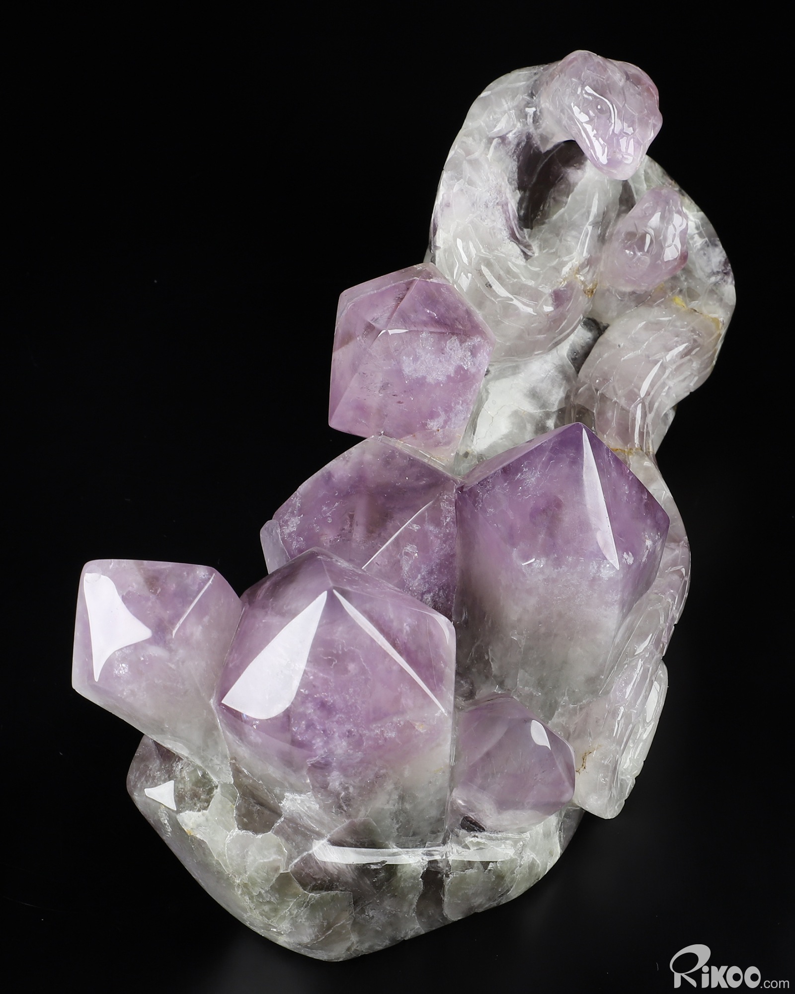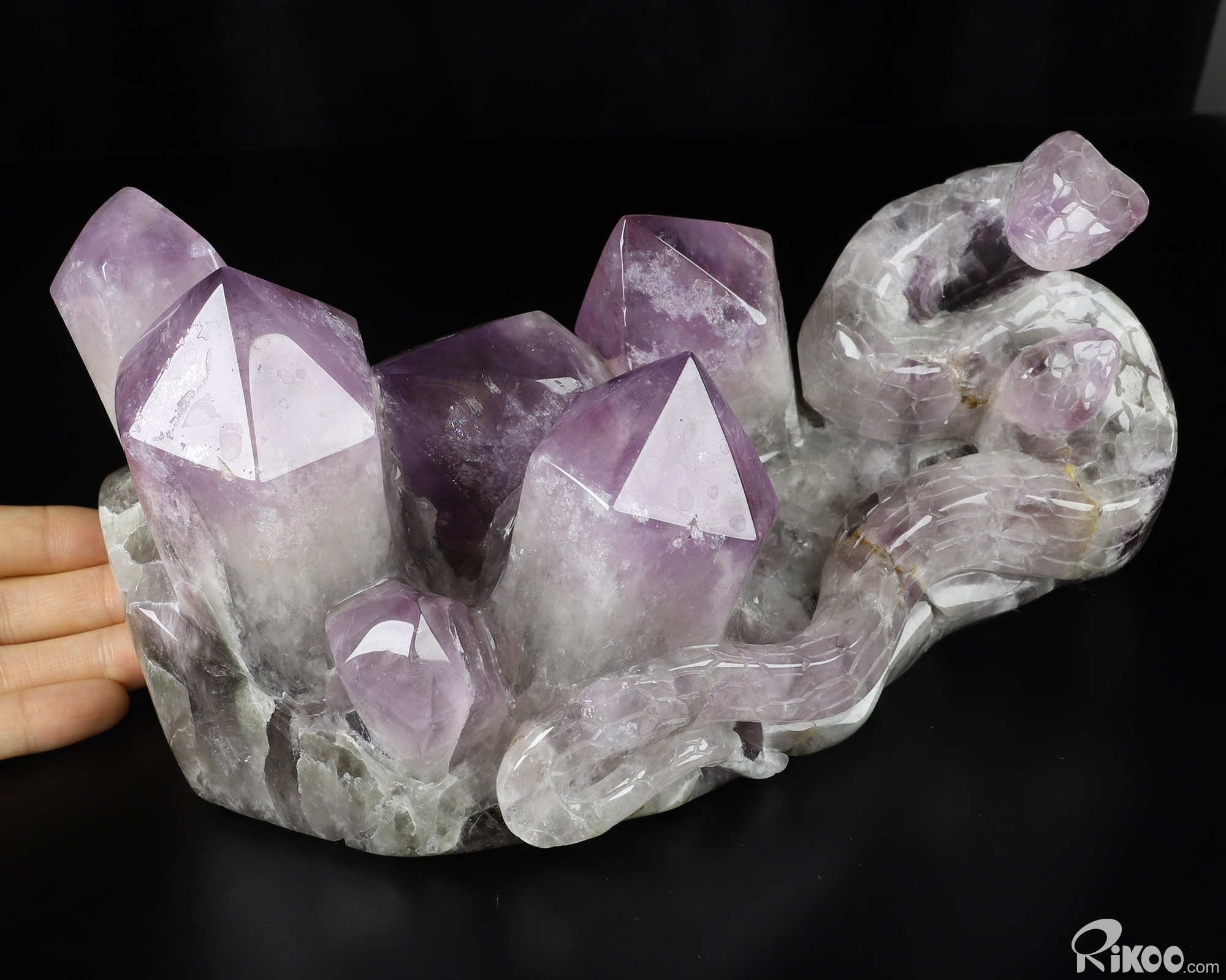 You are looking at a Amethyst sculpture. The sculpture is 8.7 inches long.
