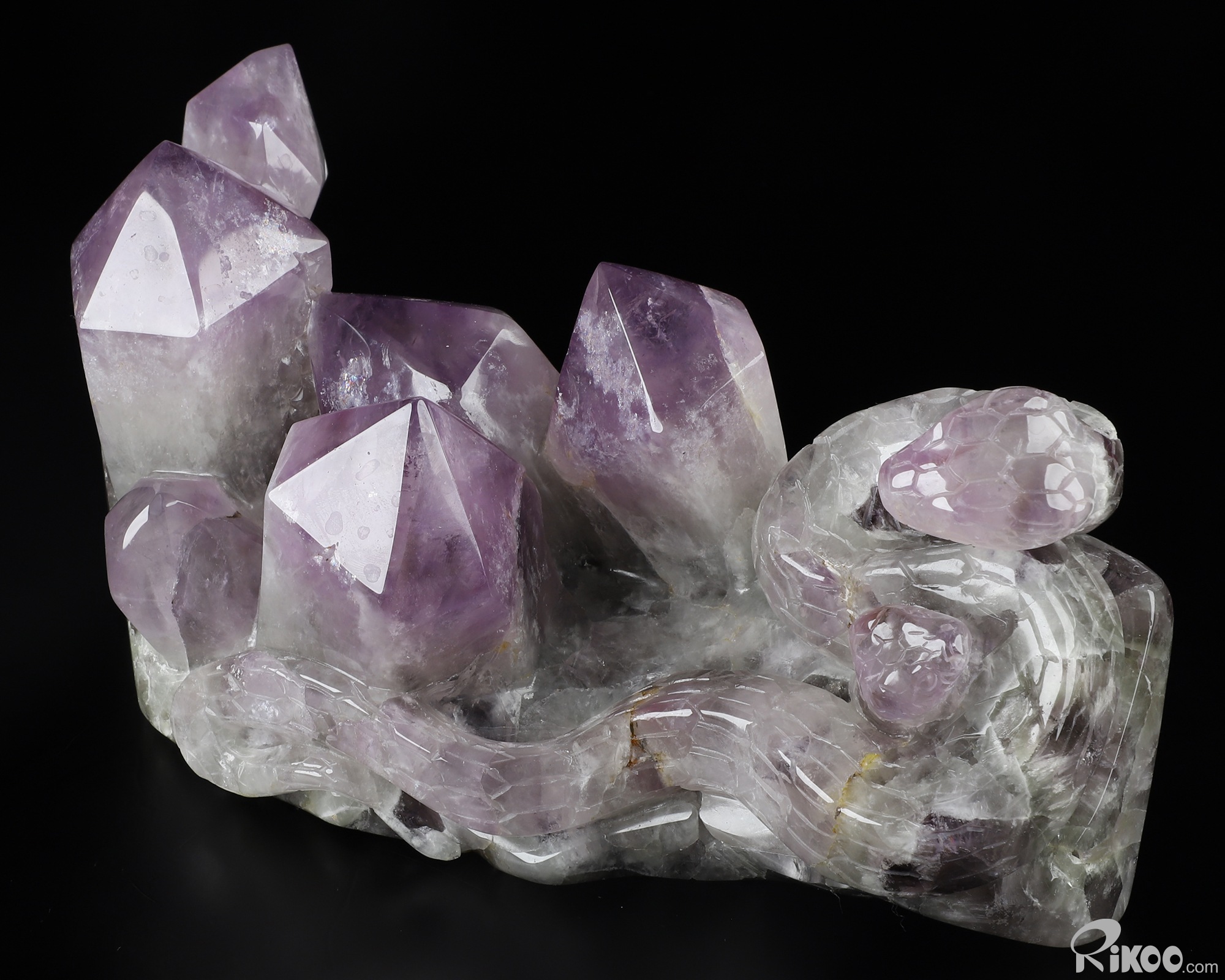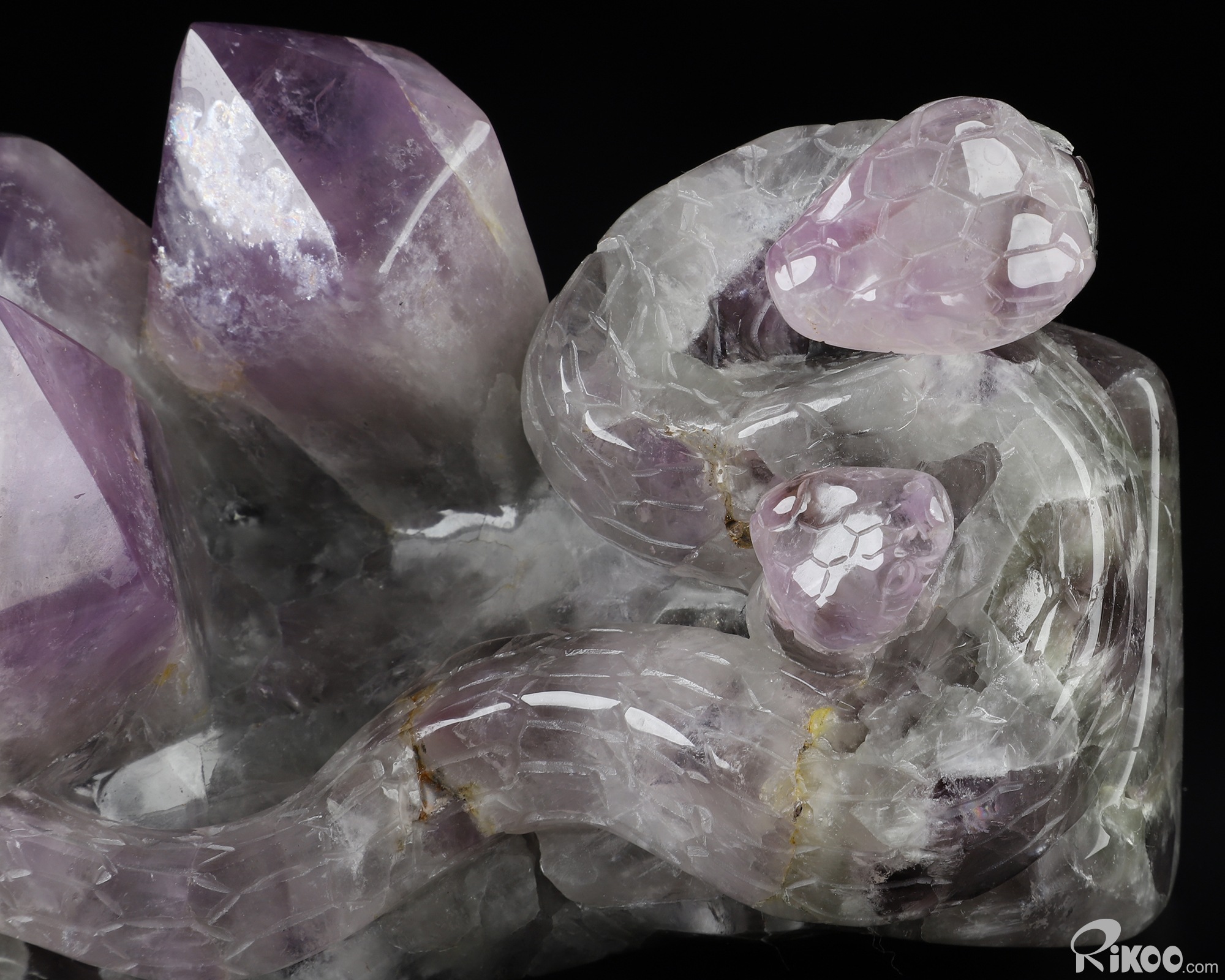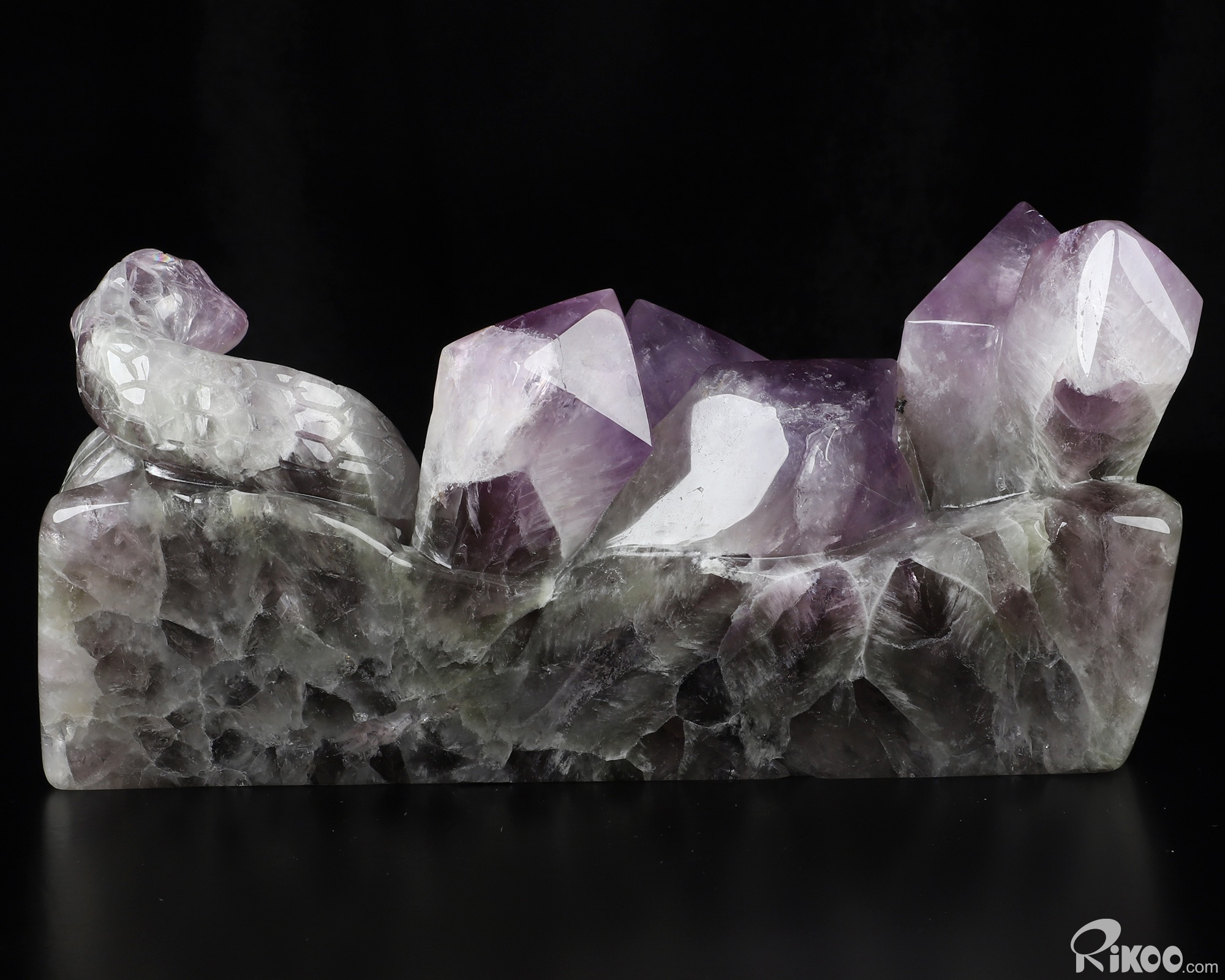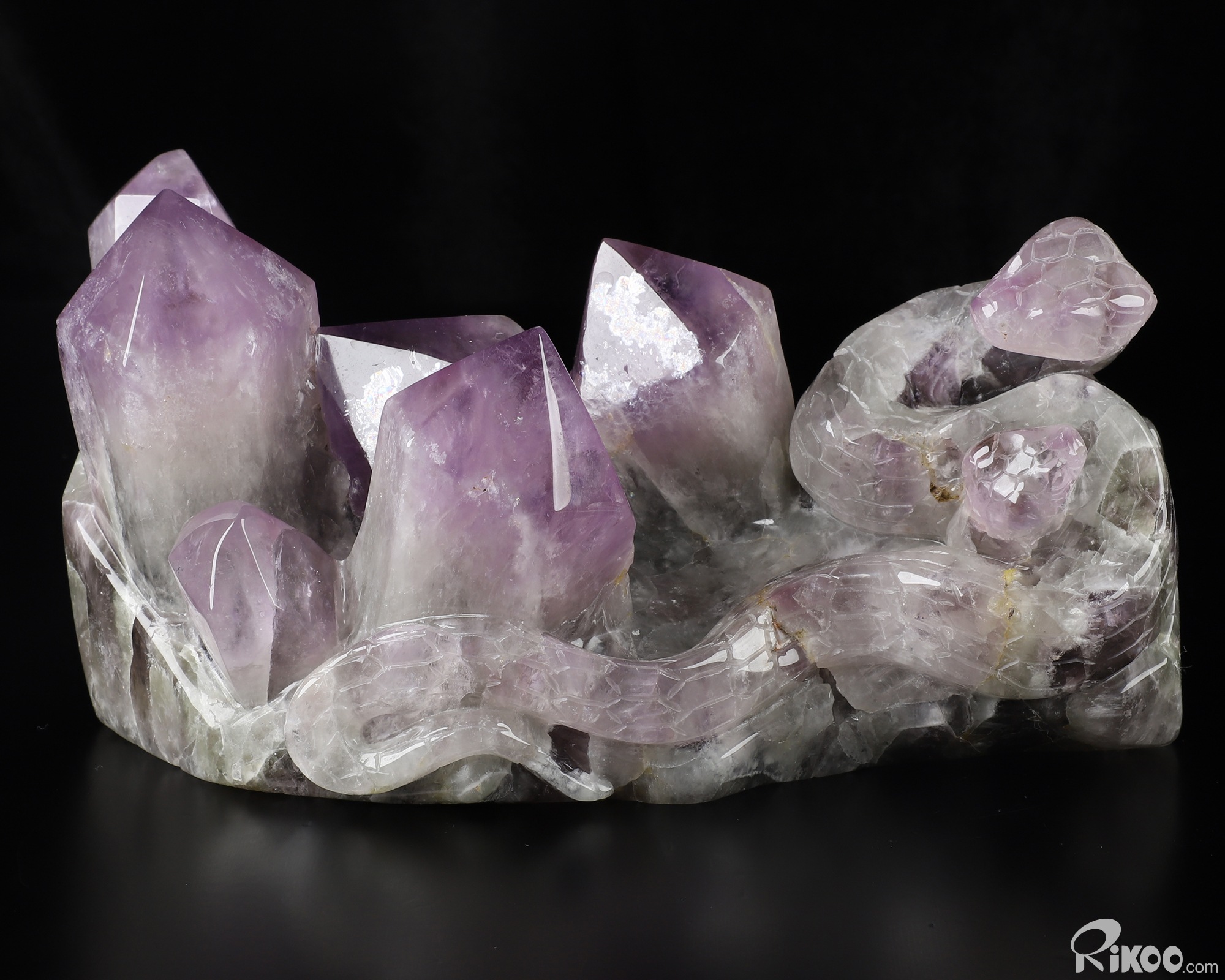 Gemstone 8.7" Amethyst Hand Carved Crystal Snake Sculpture, Crystal Healing