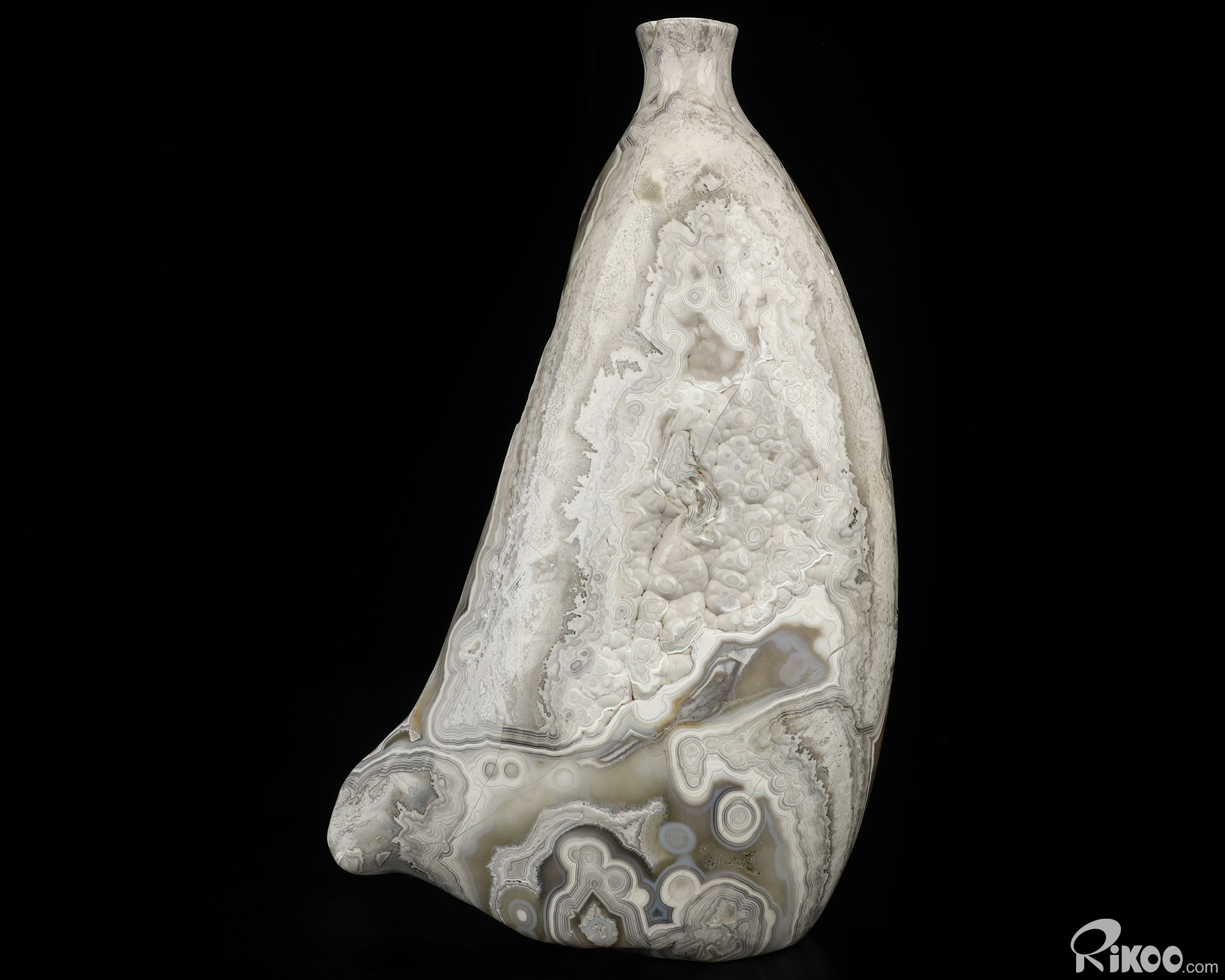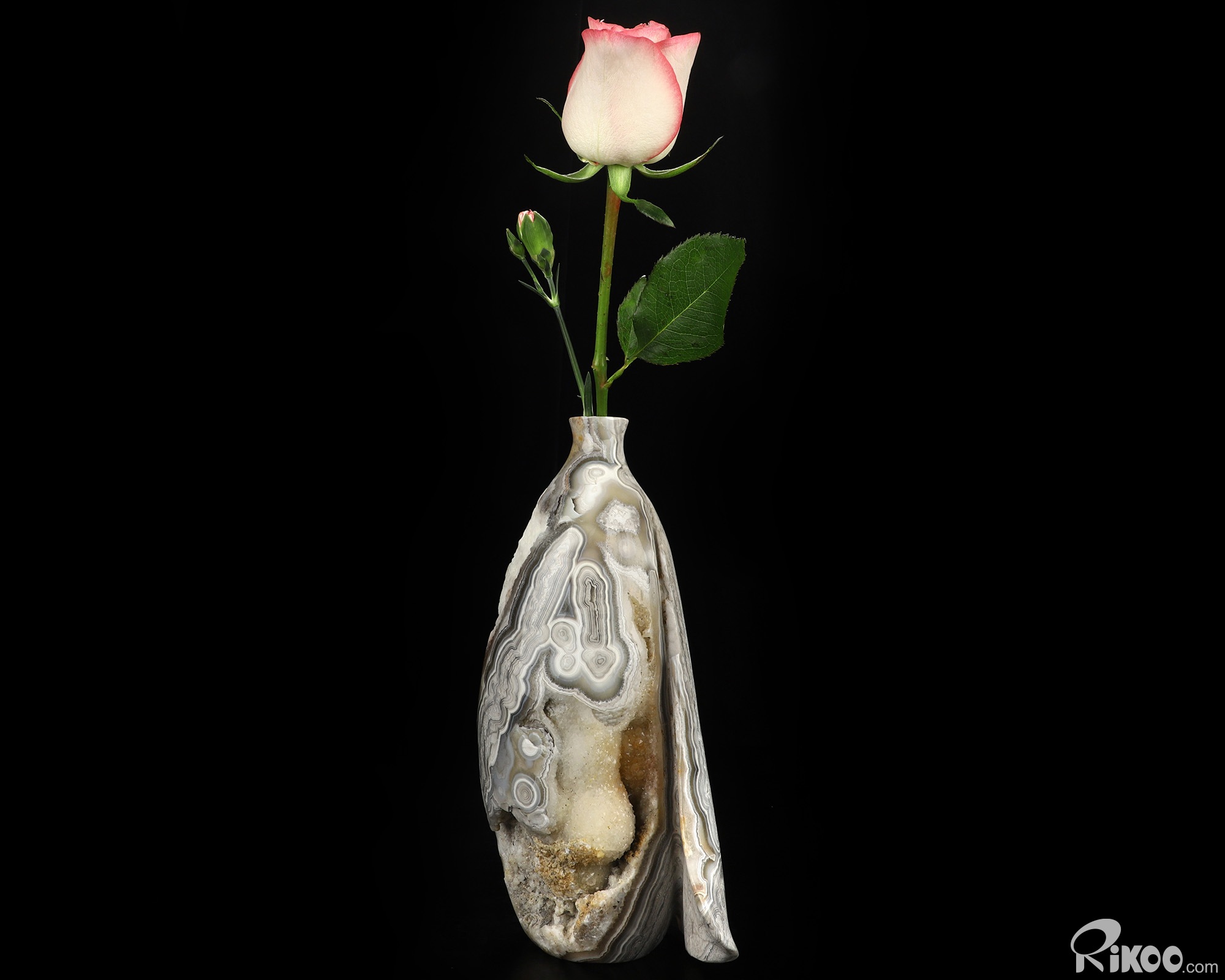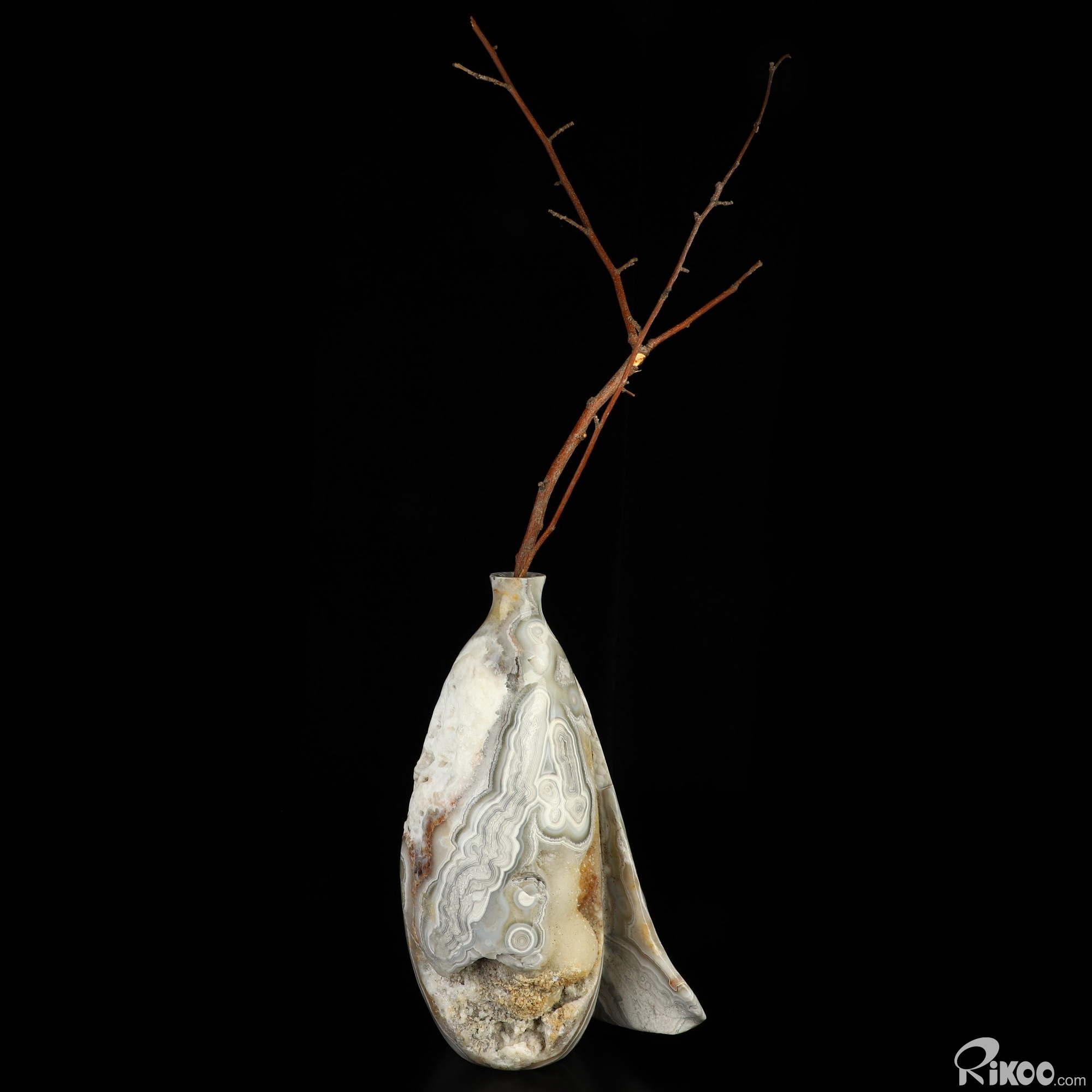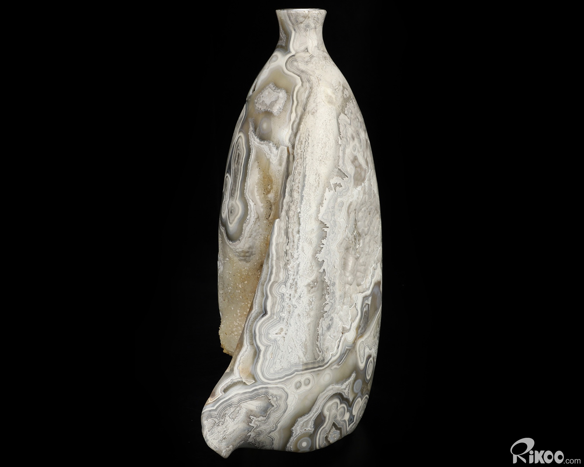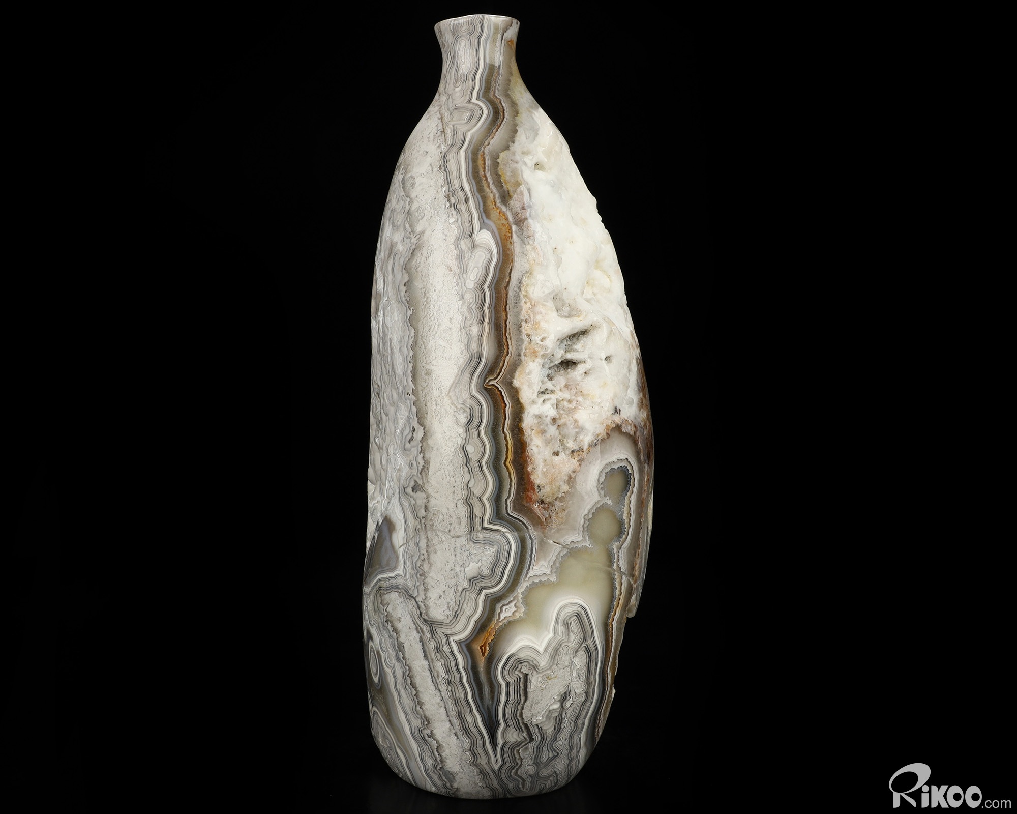 This vase with limited functionality is mainly for display.Crazy Lace Agate can be used to help one to reach extremely high physical levels. It helps to balance physical energies. It can bring humor and laughter to one's life, and helps to see life clearly.