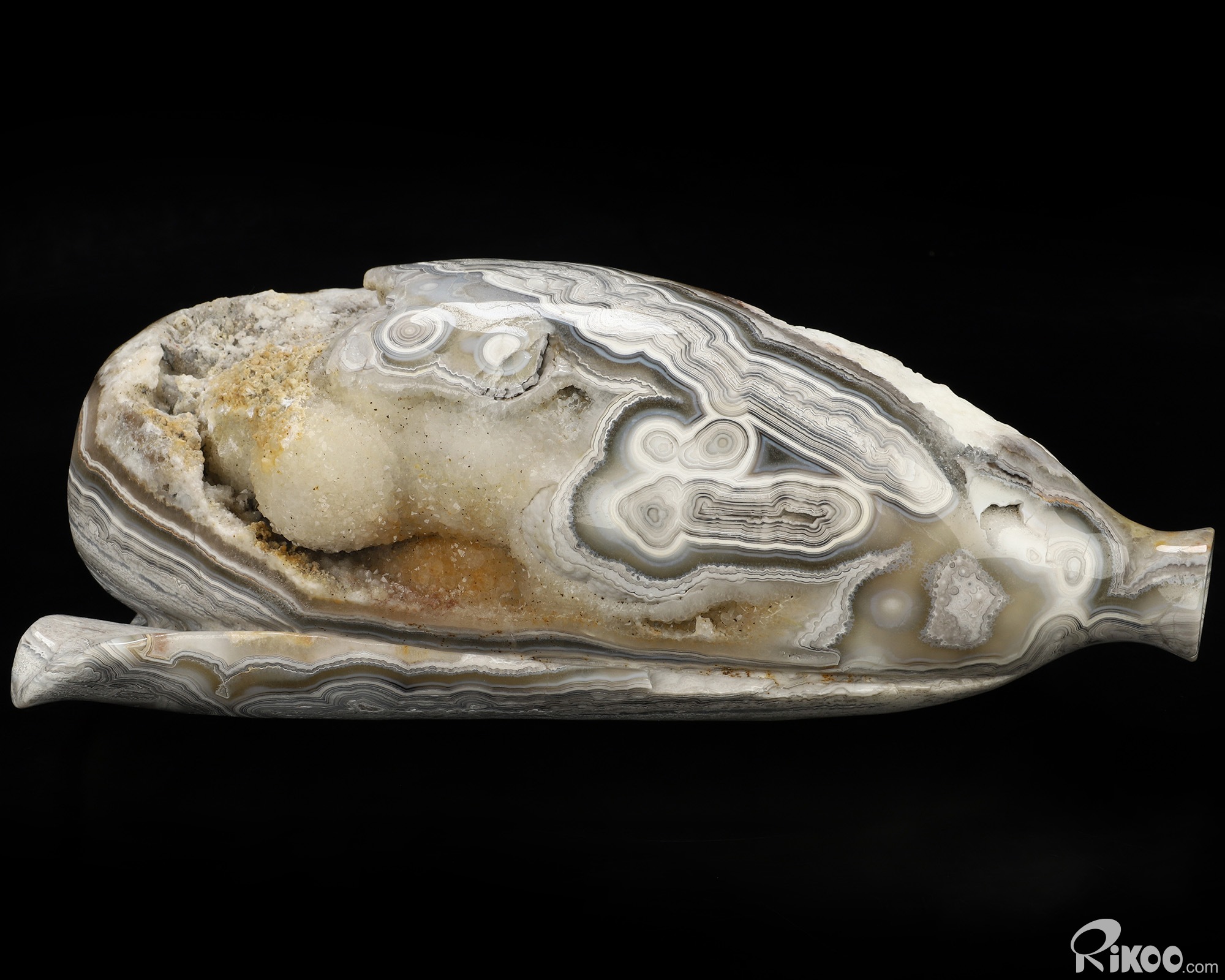 You are looking at a Red Crazy Lace Agate sculpture. The sculpture is 8.7 inches long.
