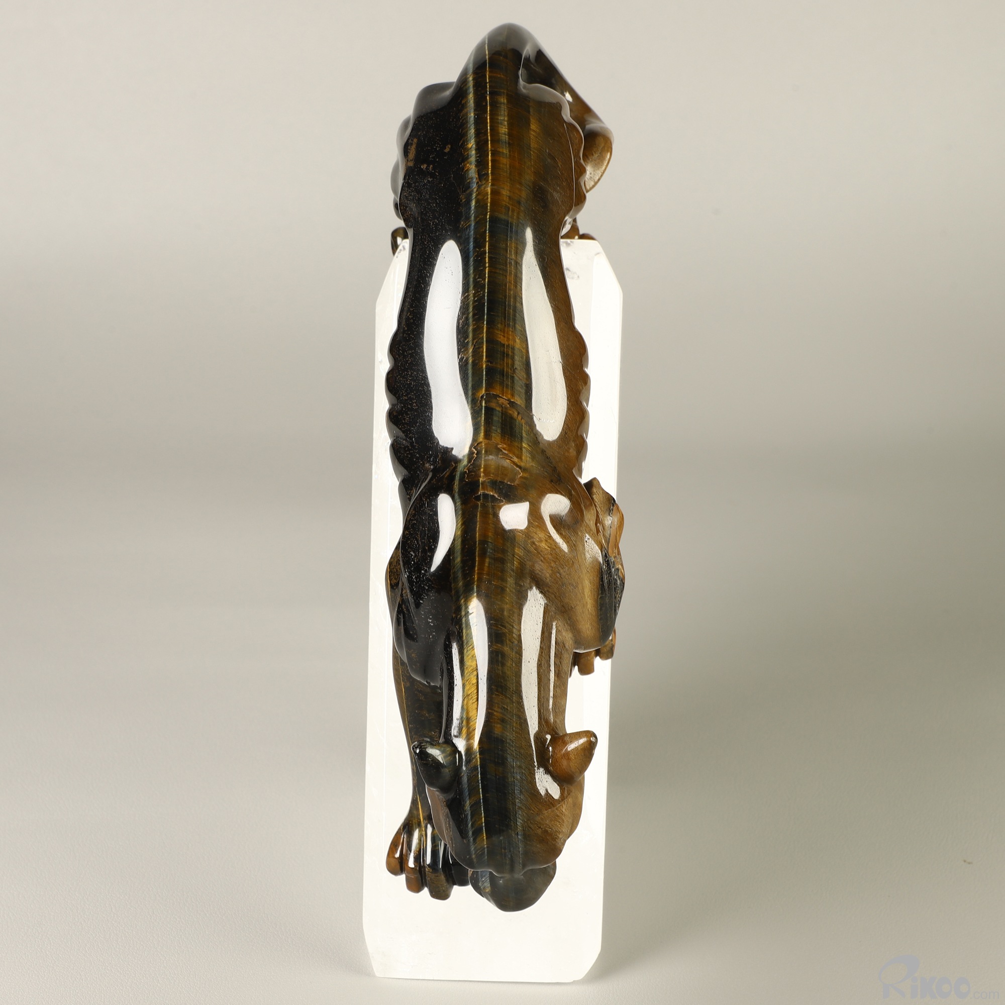 You are looking at a Blue & Gold Tiger's Eye sculpture. The sculpture is 9.1 inches long.