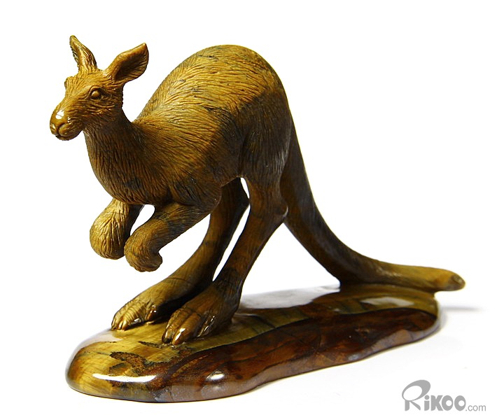 Gemstone Huge 4.2" Gold Tiger Eye Carved Crystal Kangaroo