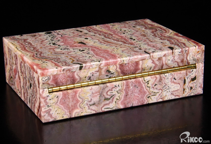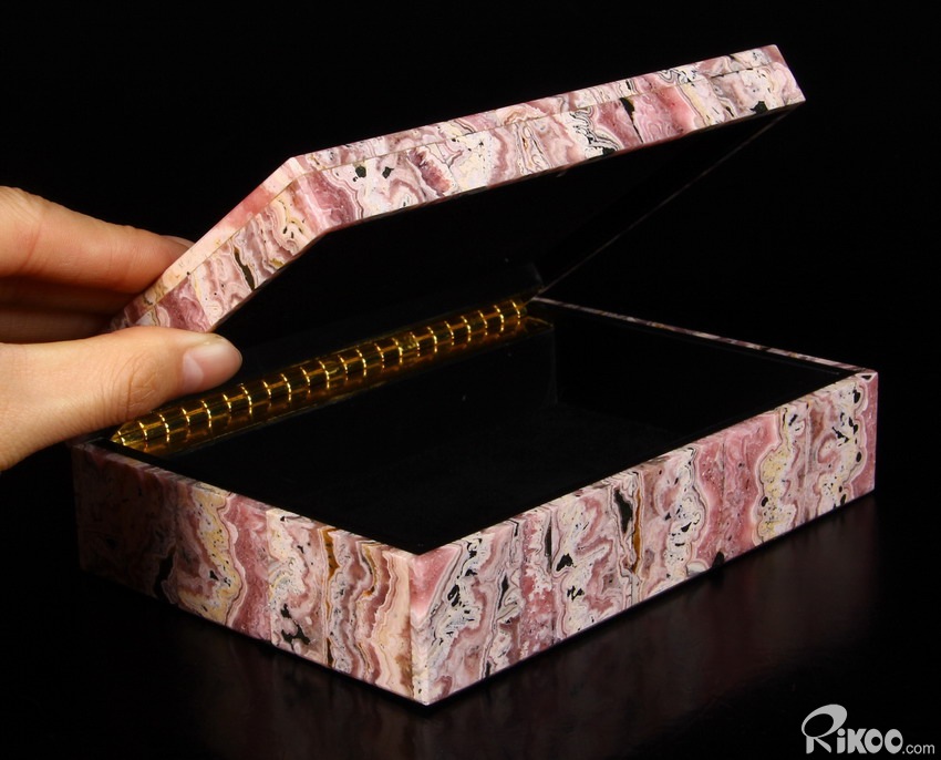 Gemstone Huge 6.2" Rhodochrosite Carved Crystal Jewelry Box