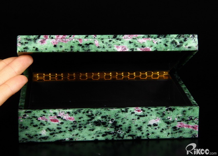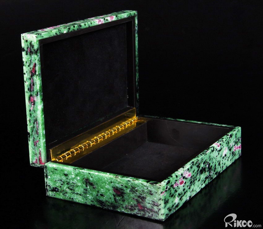 Gemstone Huge 6.2" Ruby Fuchsite Carved Crystal Jewelry Box