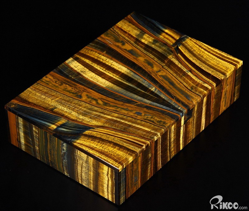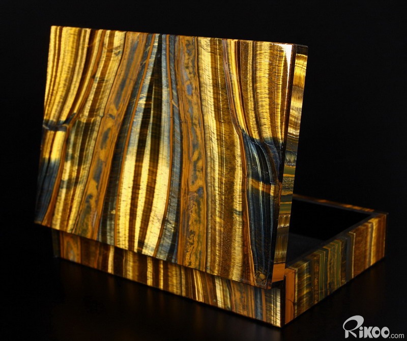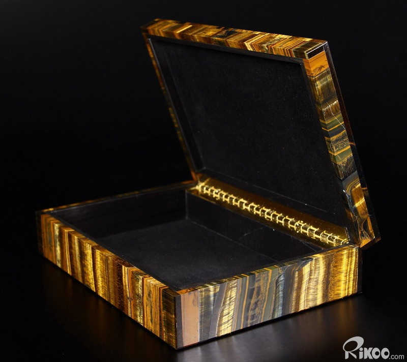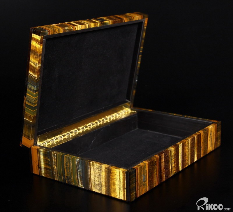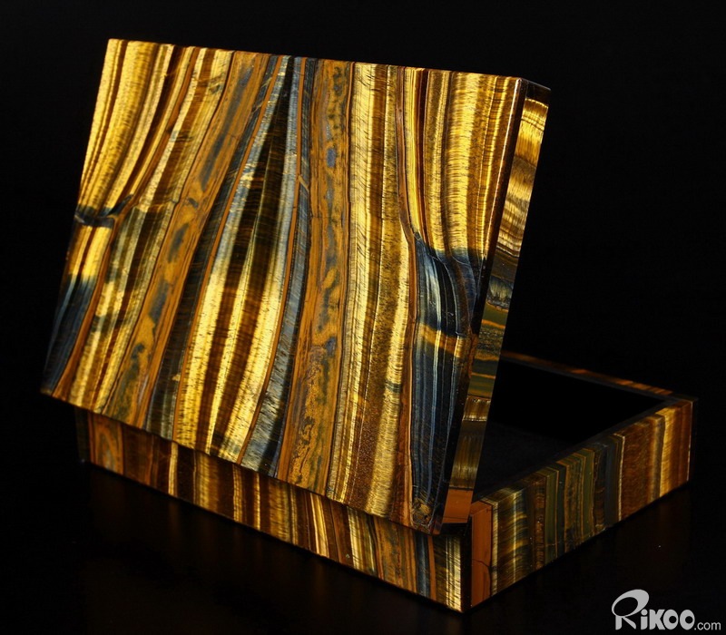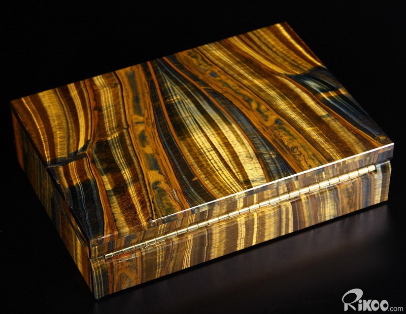 Gemstone Huge 7.2" Blue & Gold Tiger Eye Carved Crystal Jewelry Box