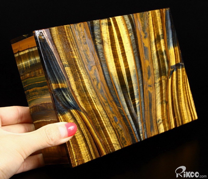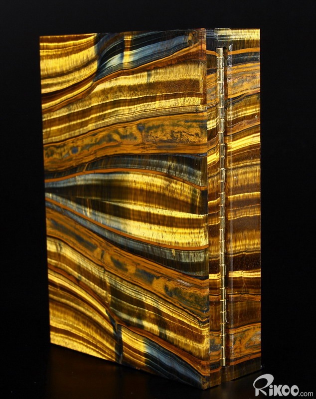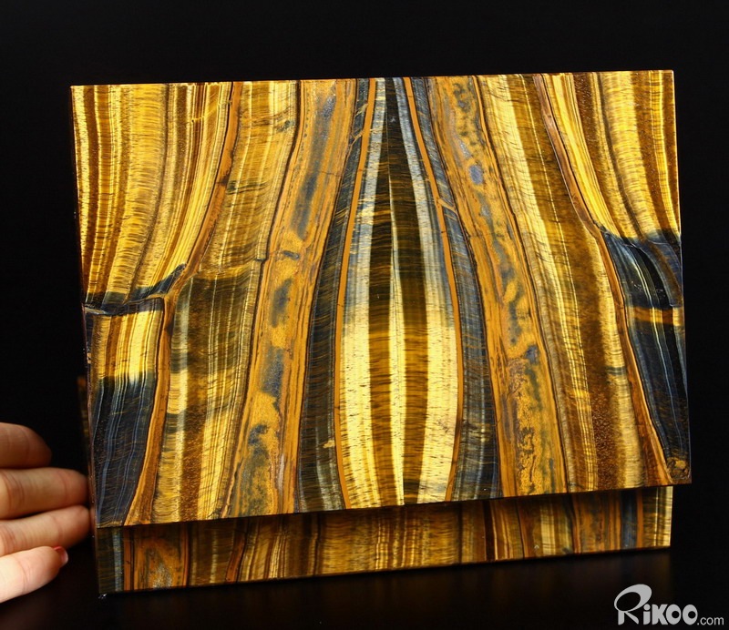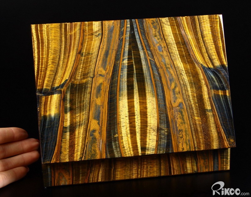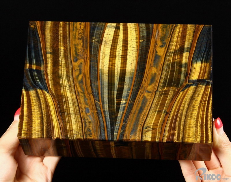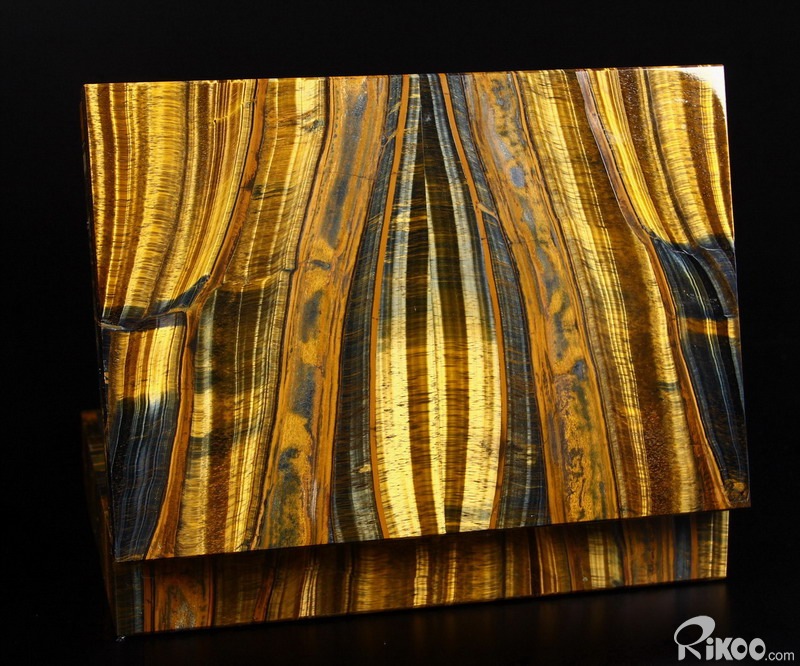 Gemstone Huge 7.2" Blue & Gold Tiger Eye Carved Crystal Jewelry Box