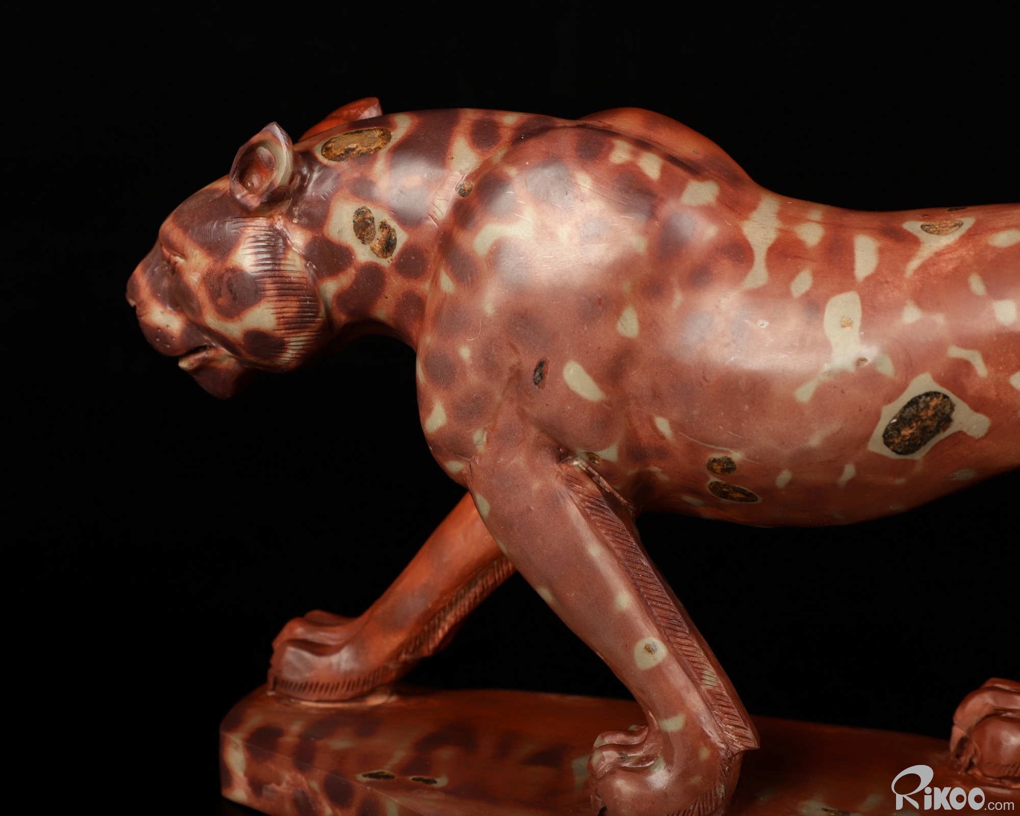 Giant 10.8" Australian Print Stone Carved Crystal Leopard, Crystal Healing