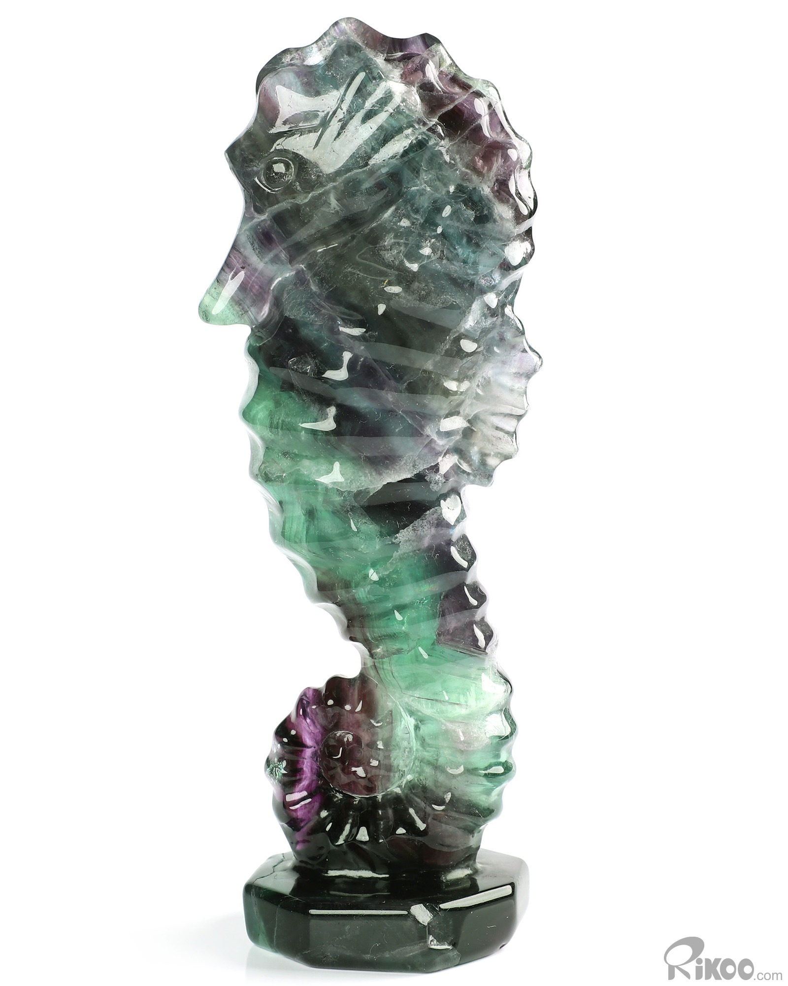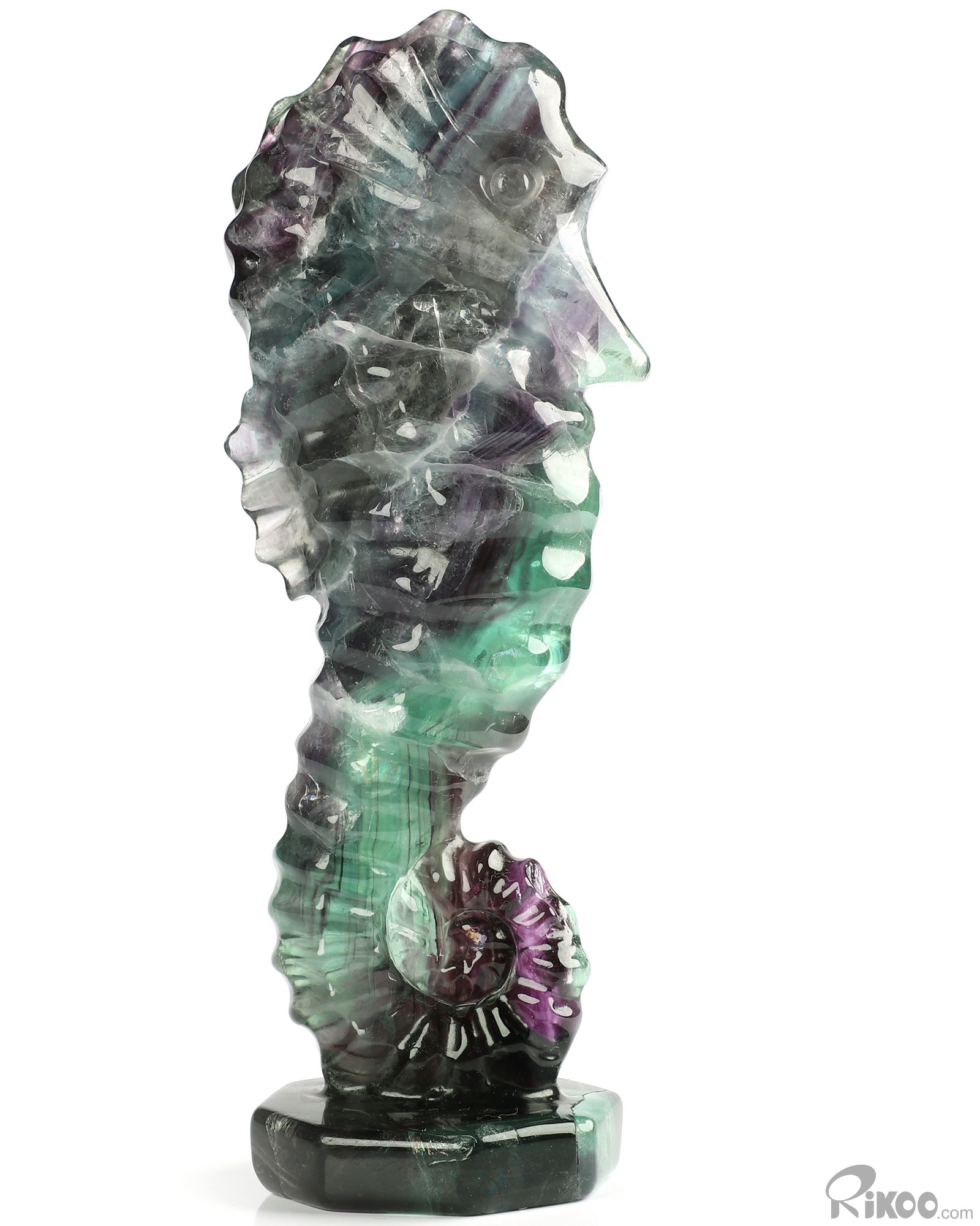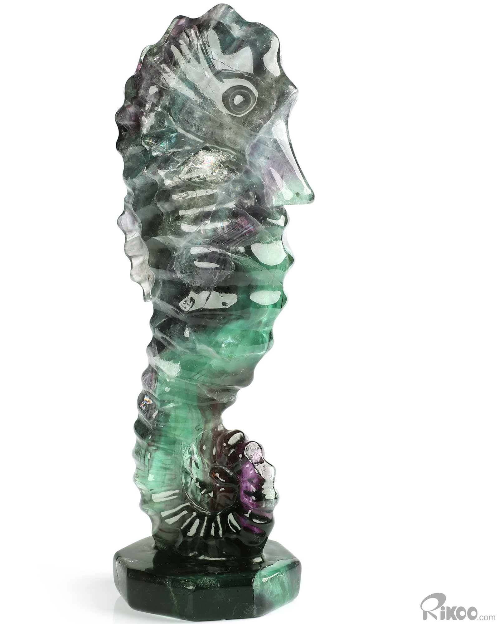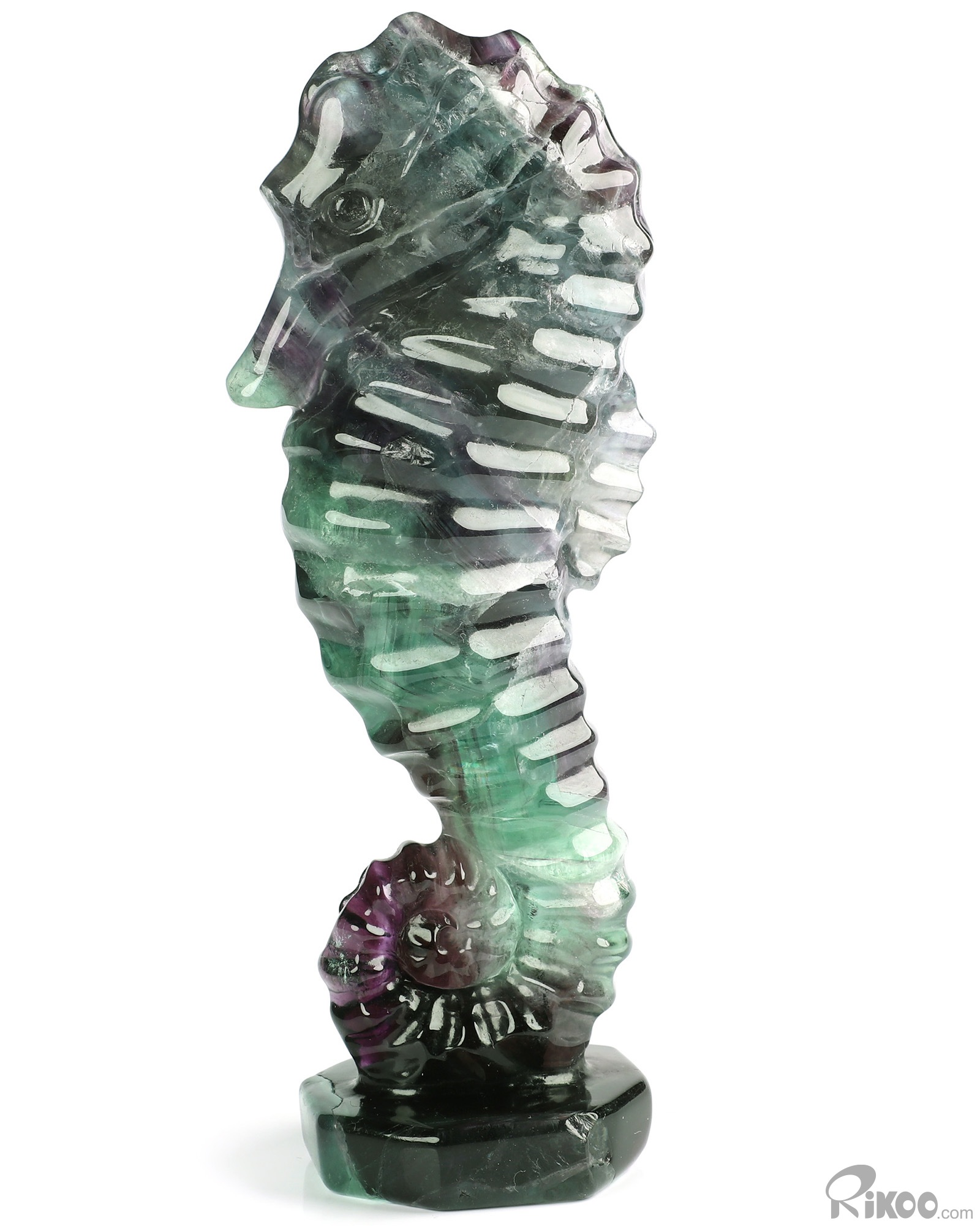 Giant 7.1" Fluorite Carved Crystal Hippocampus, Realistic, Crystal Healing
