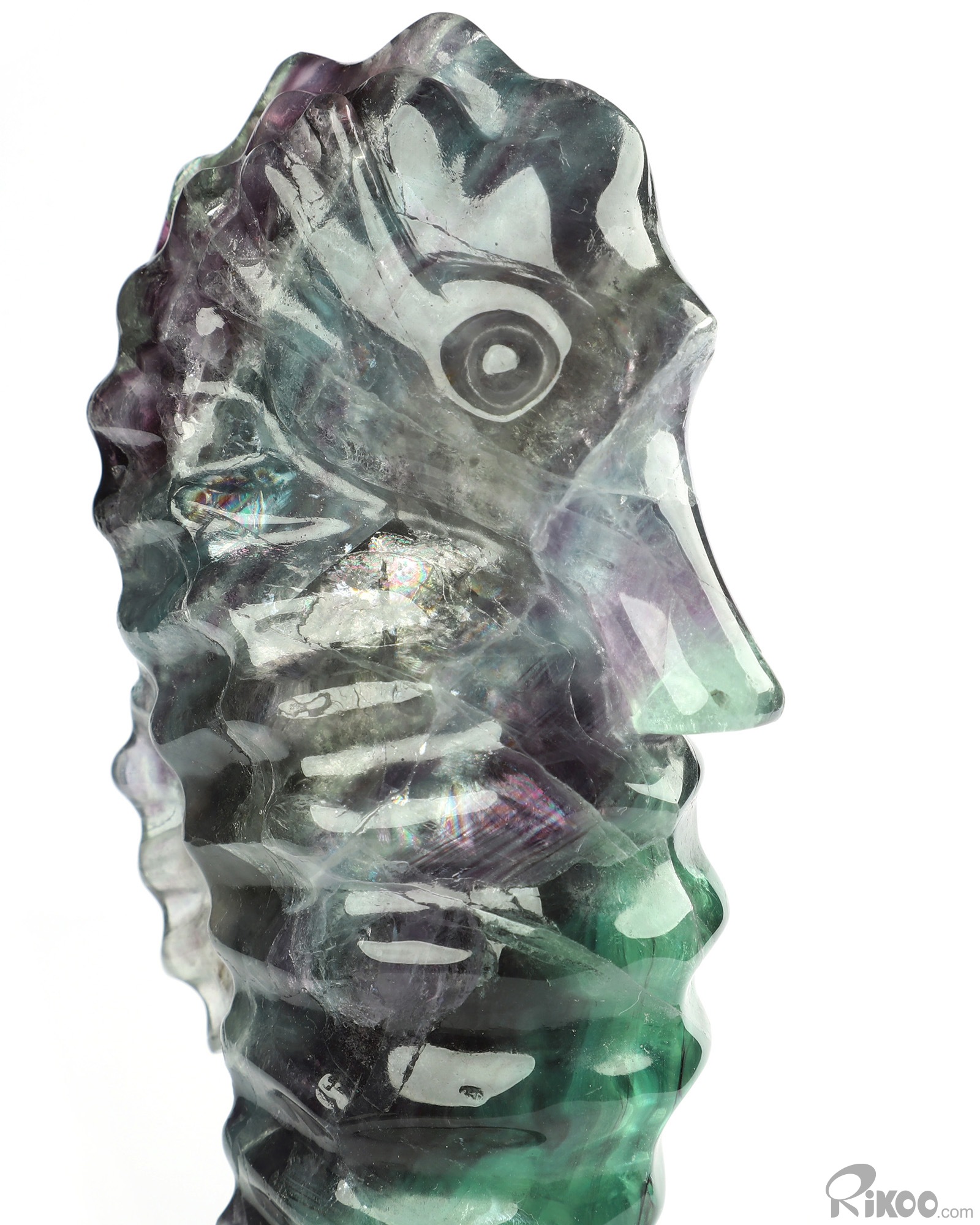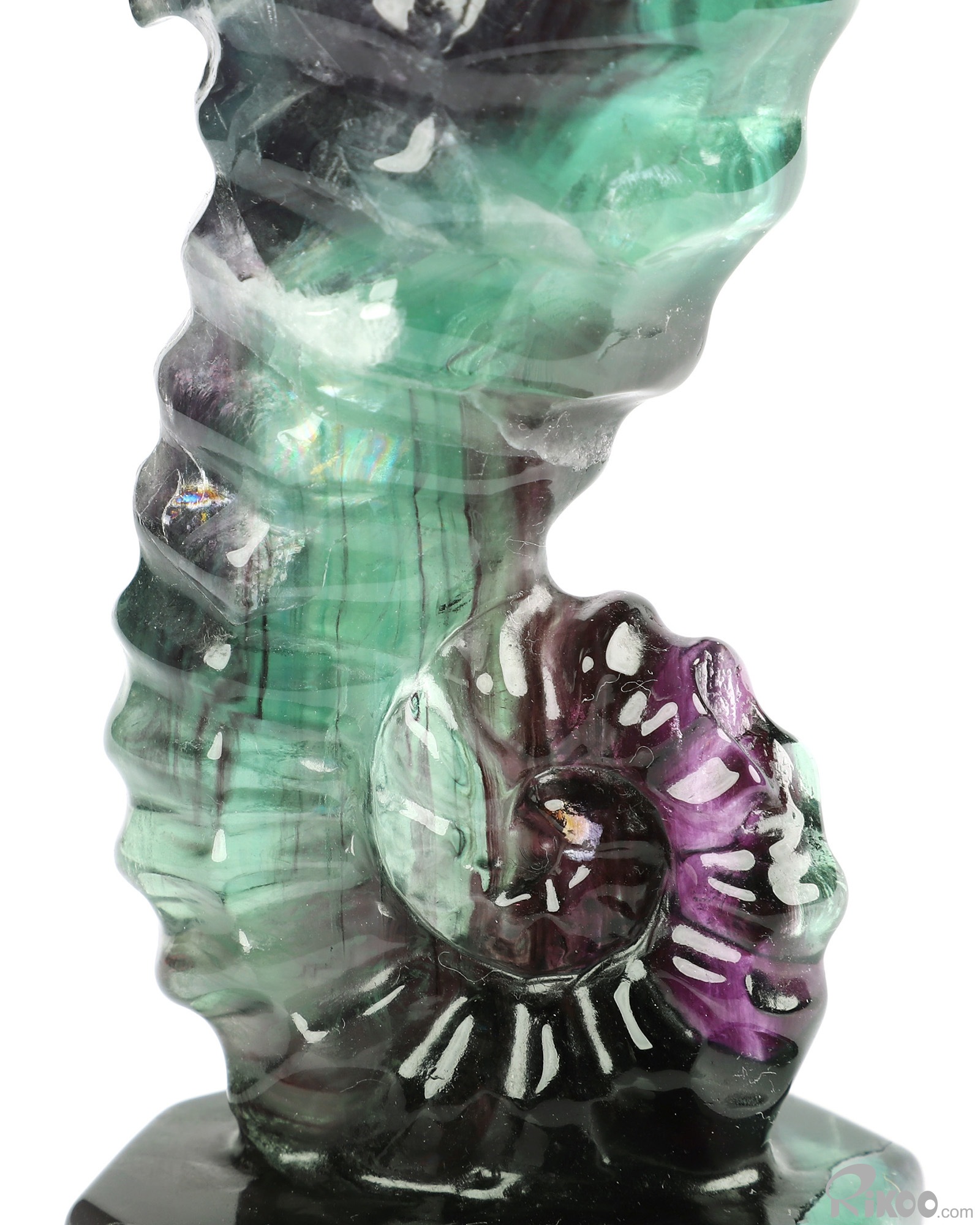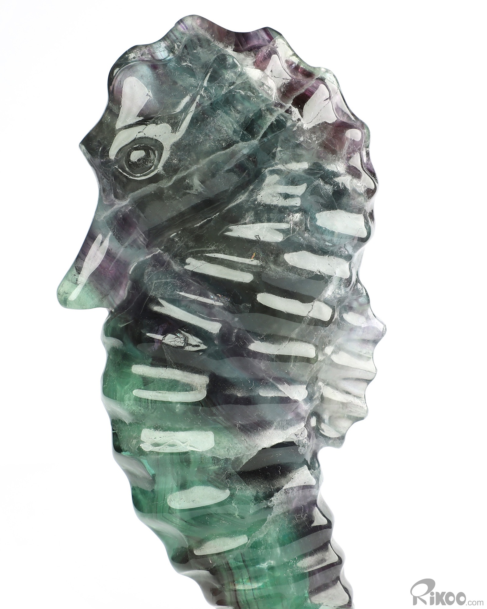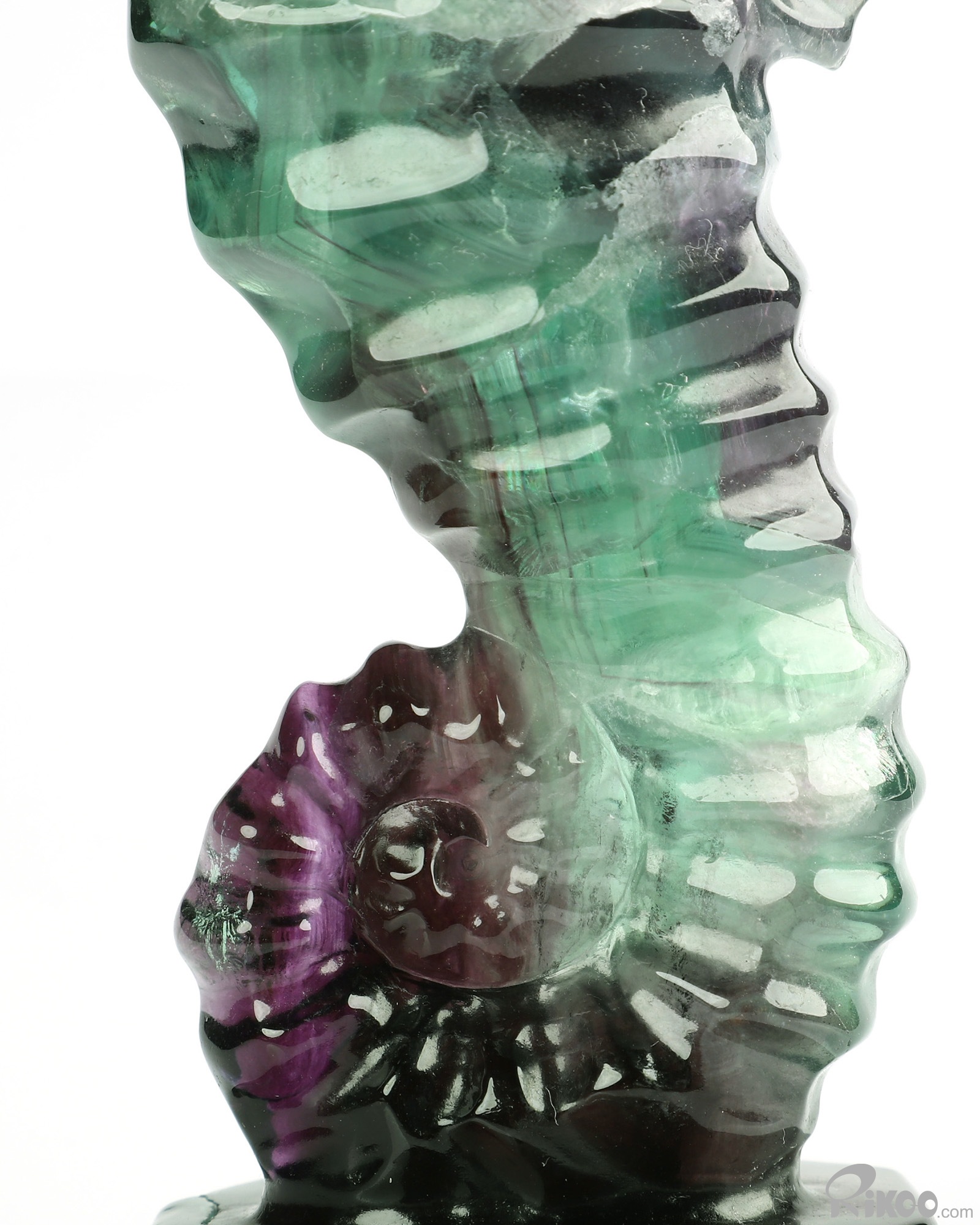 Giant 7.1" Fluorite Carved Crystal Hippocampus, Realistic, Crystal Healing