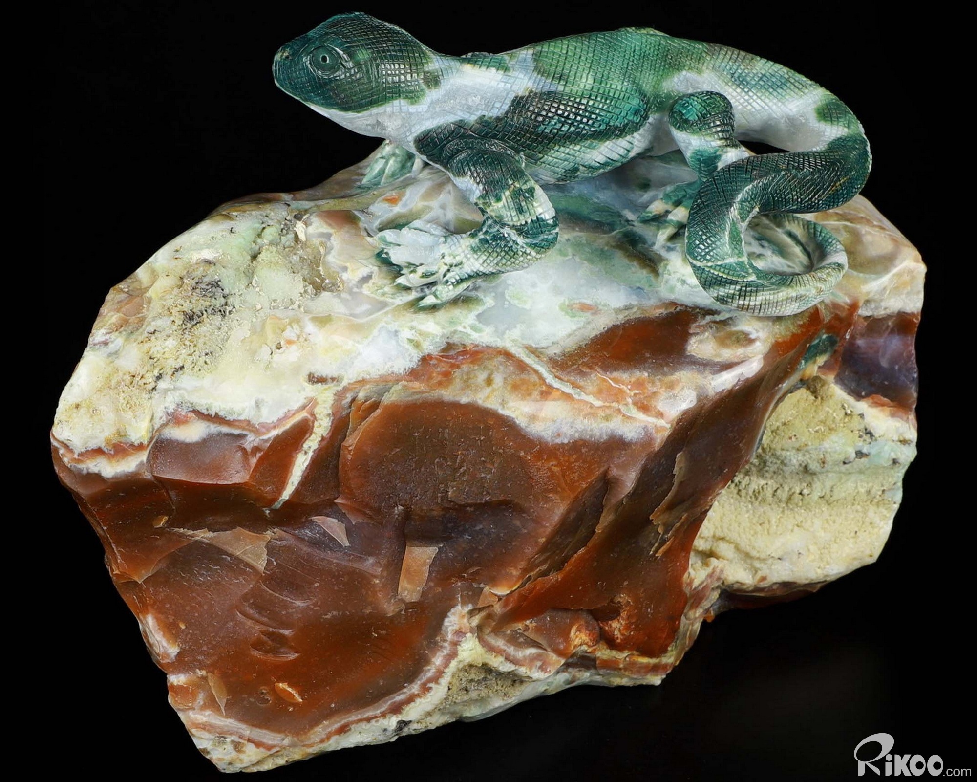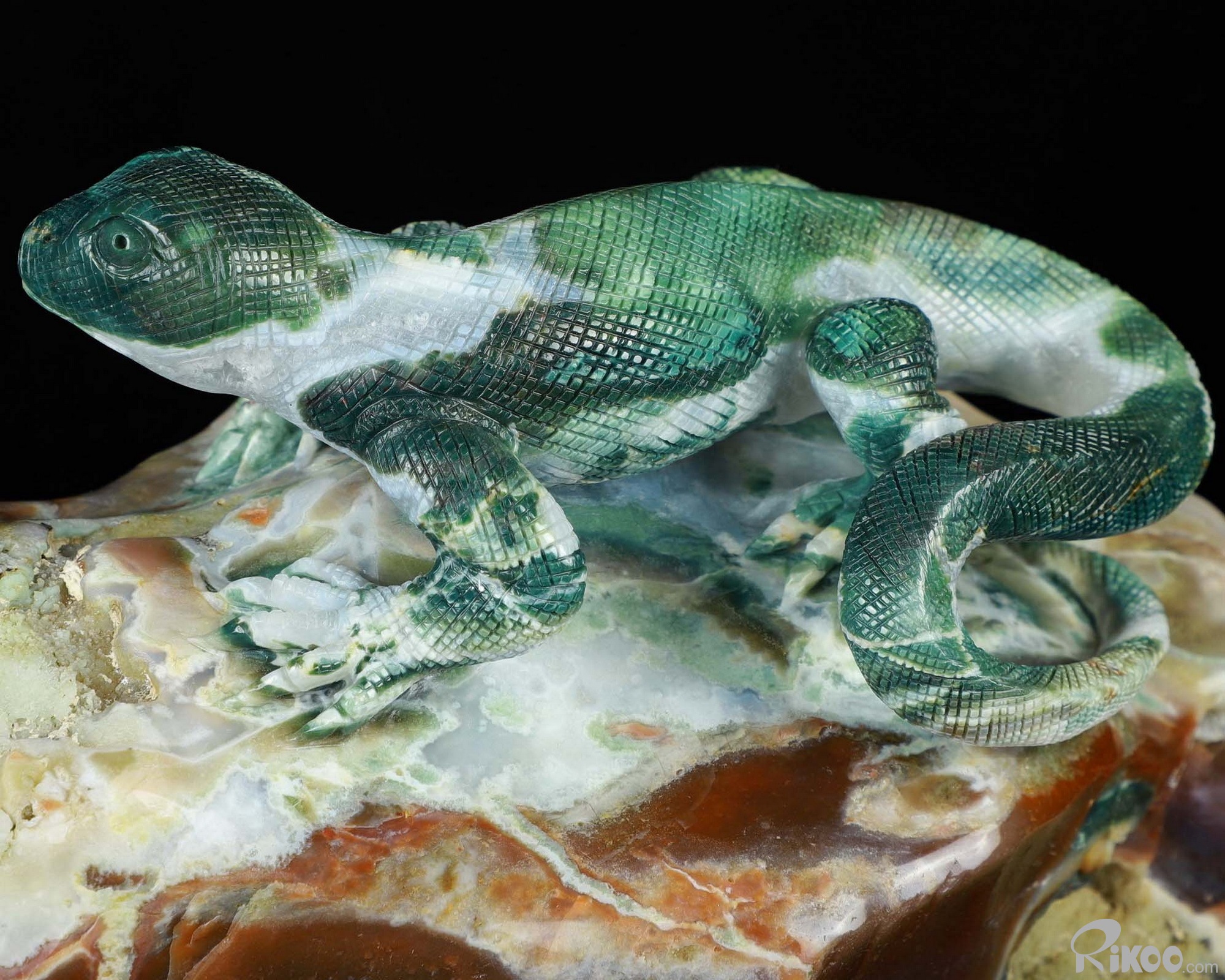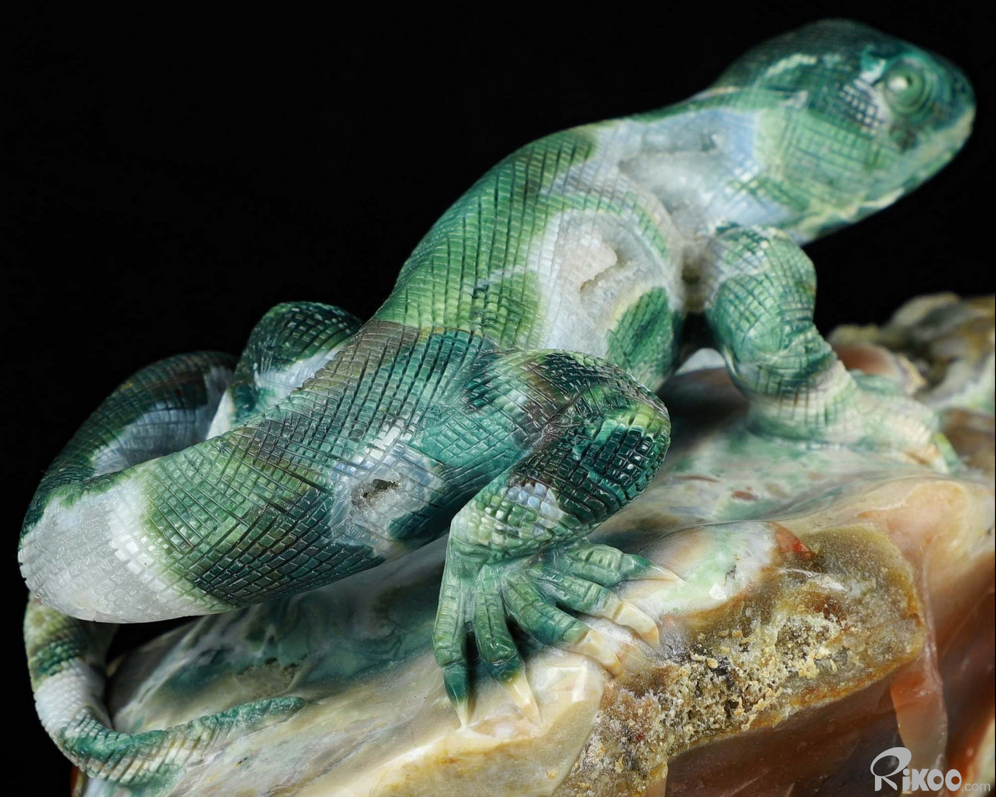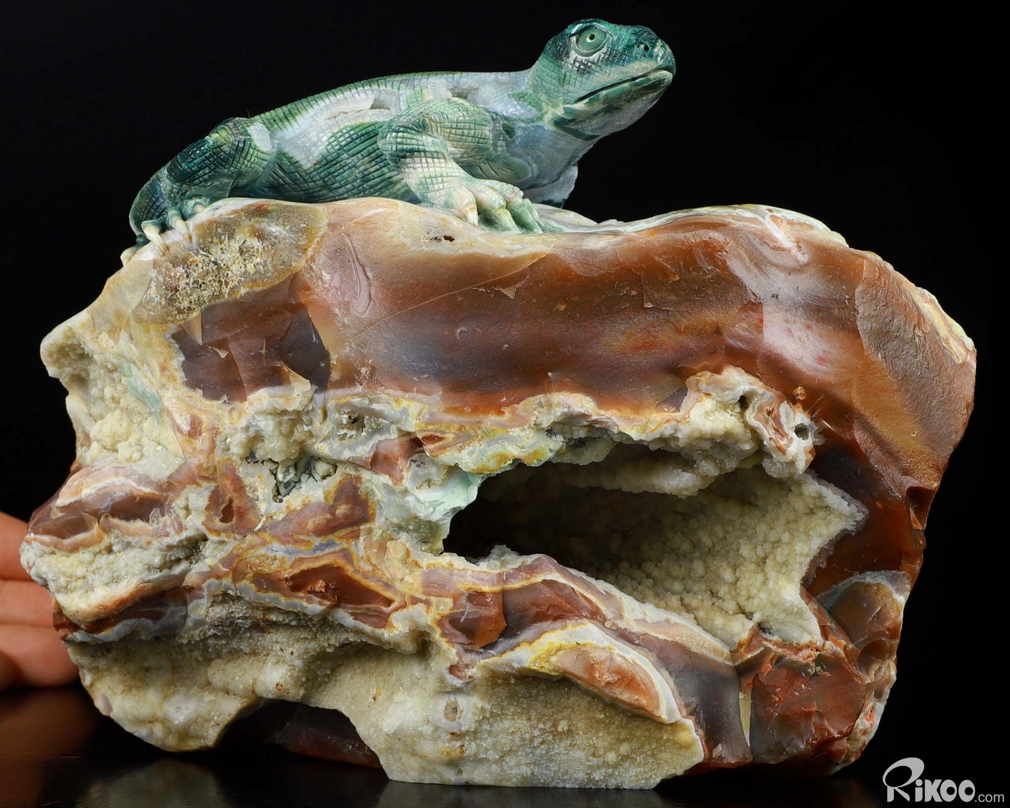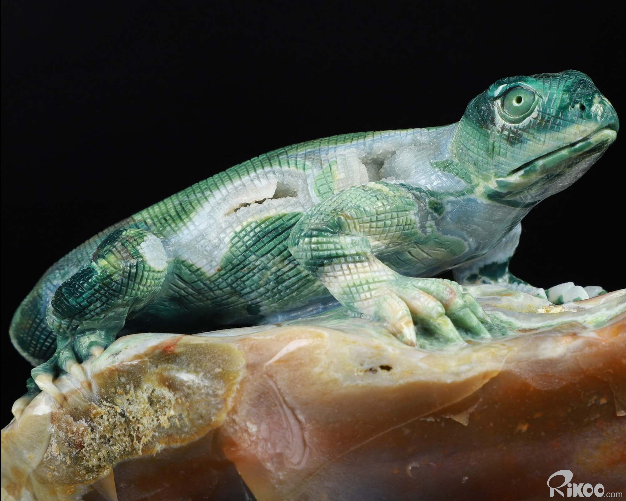 Giant Geode 7.7" Indian Agate Carved Crystal Lizard Sculpture, Crystal Healing