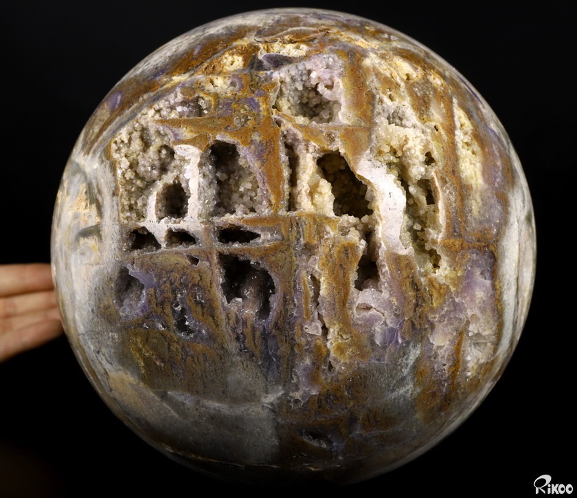 Giant 7.8" Geode fluorite Carved ball Crystal Sphere, Crystal Healing