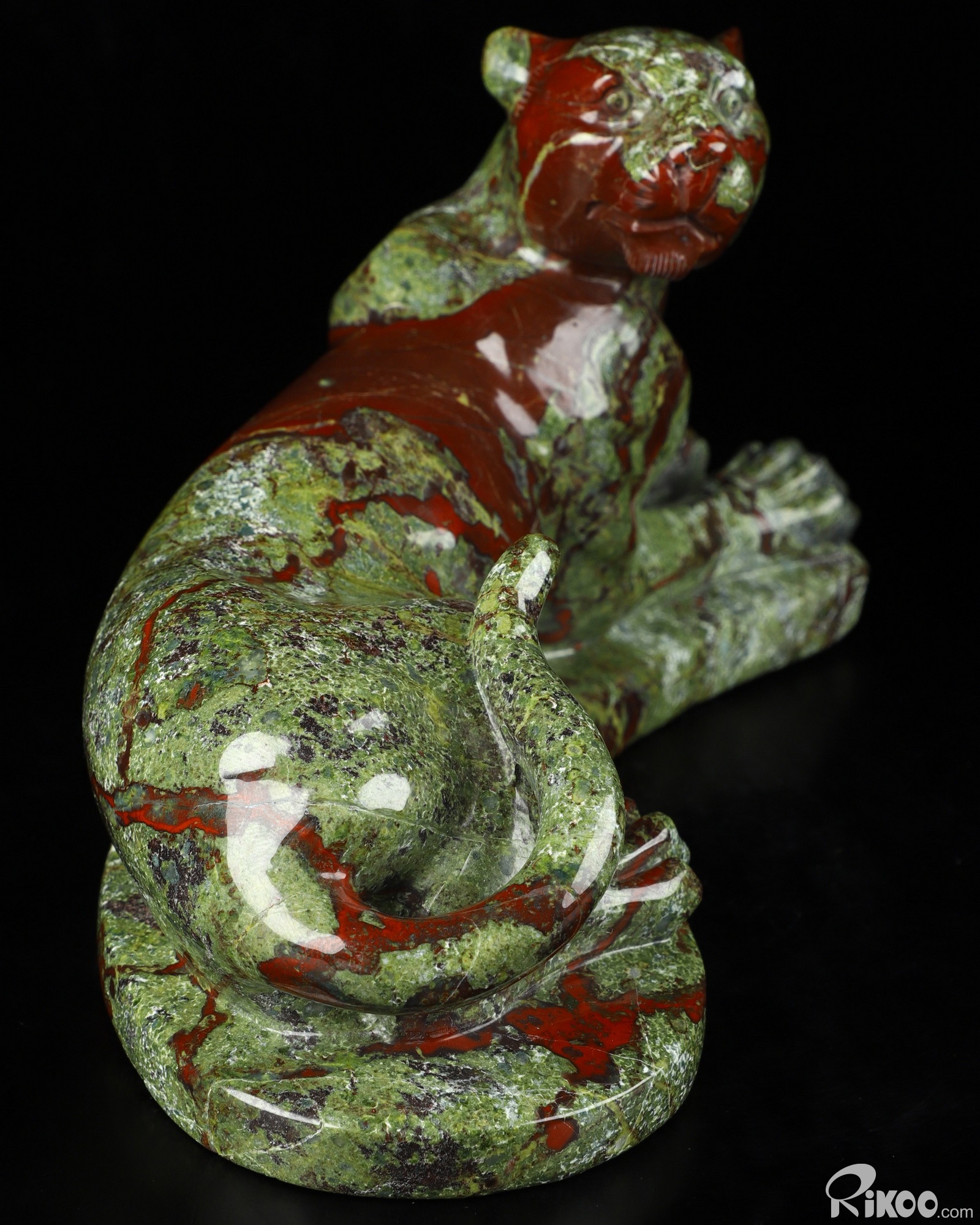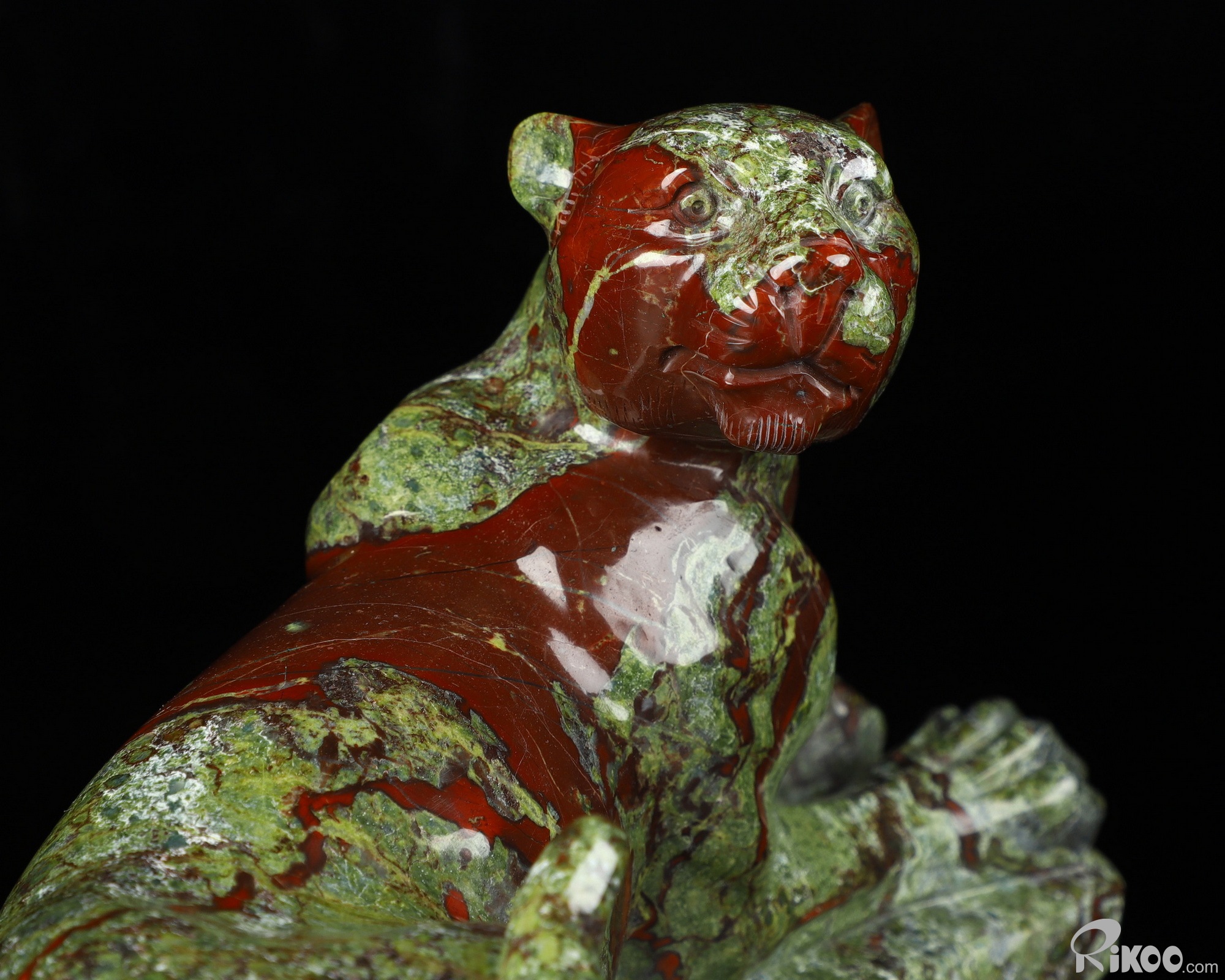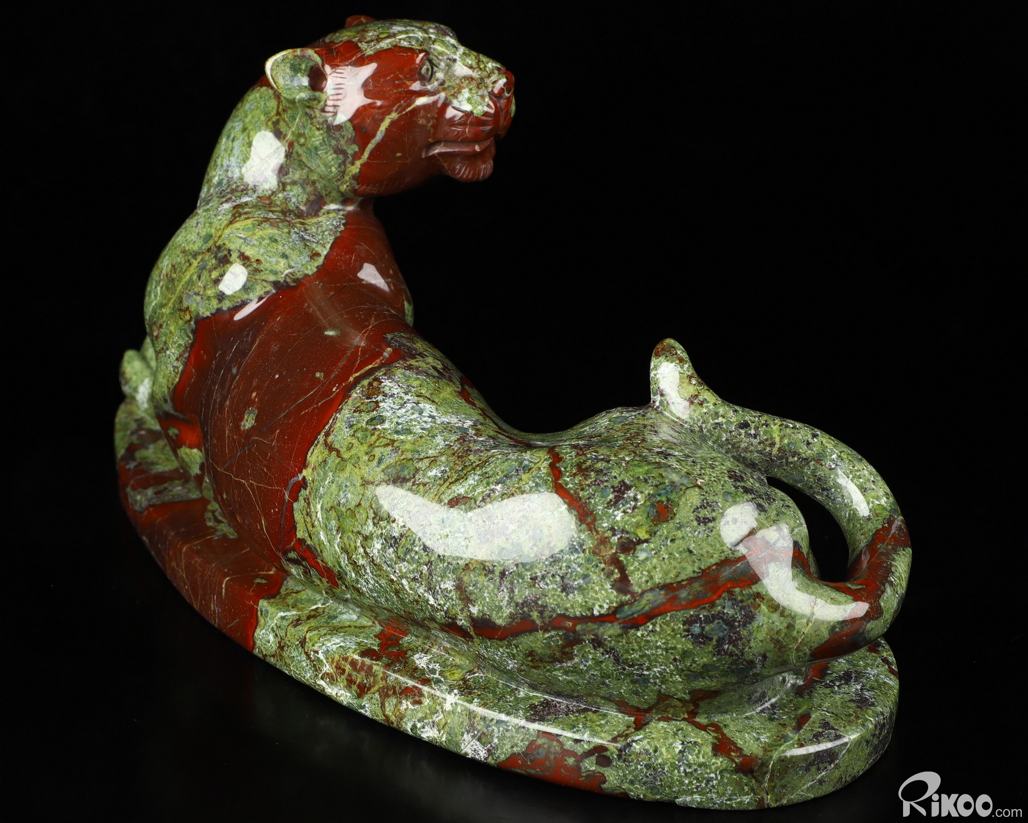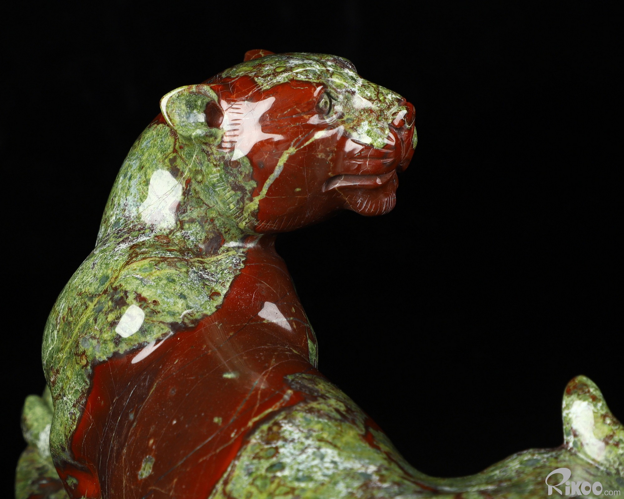 Giant 8.1" Dragon Blood Jasper Carved Crystal Leopard Sculpture, Realistic
