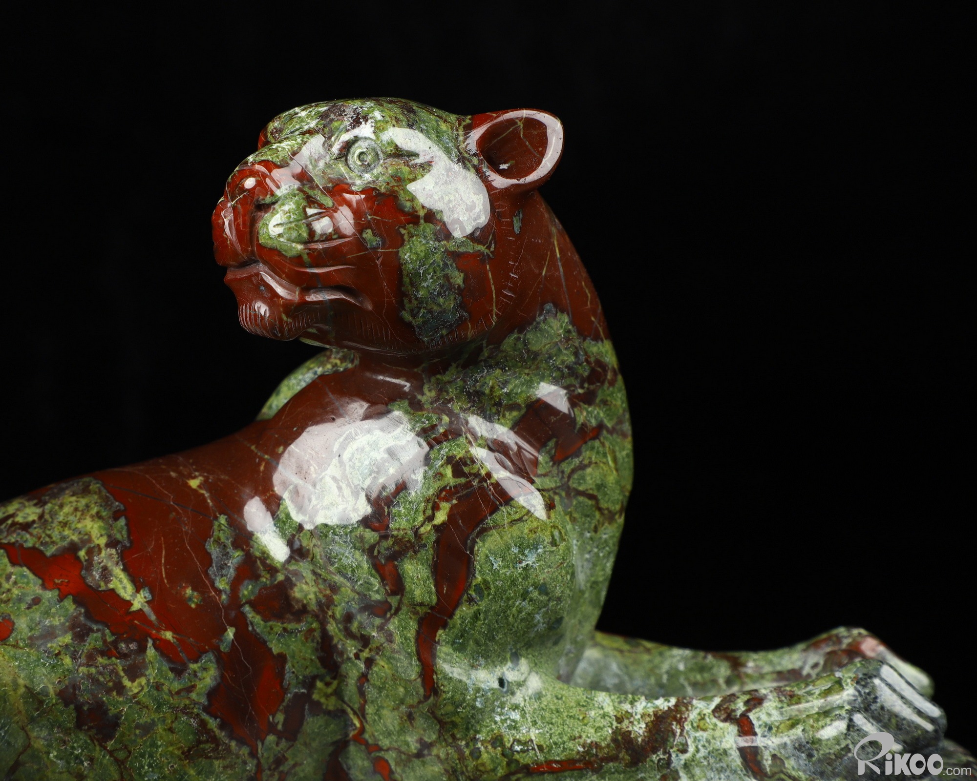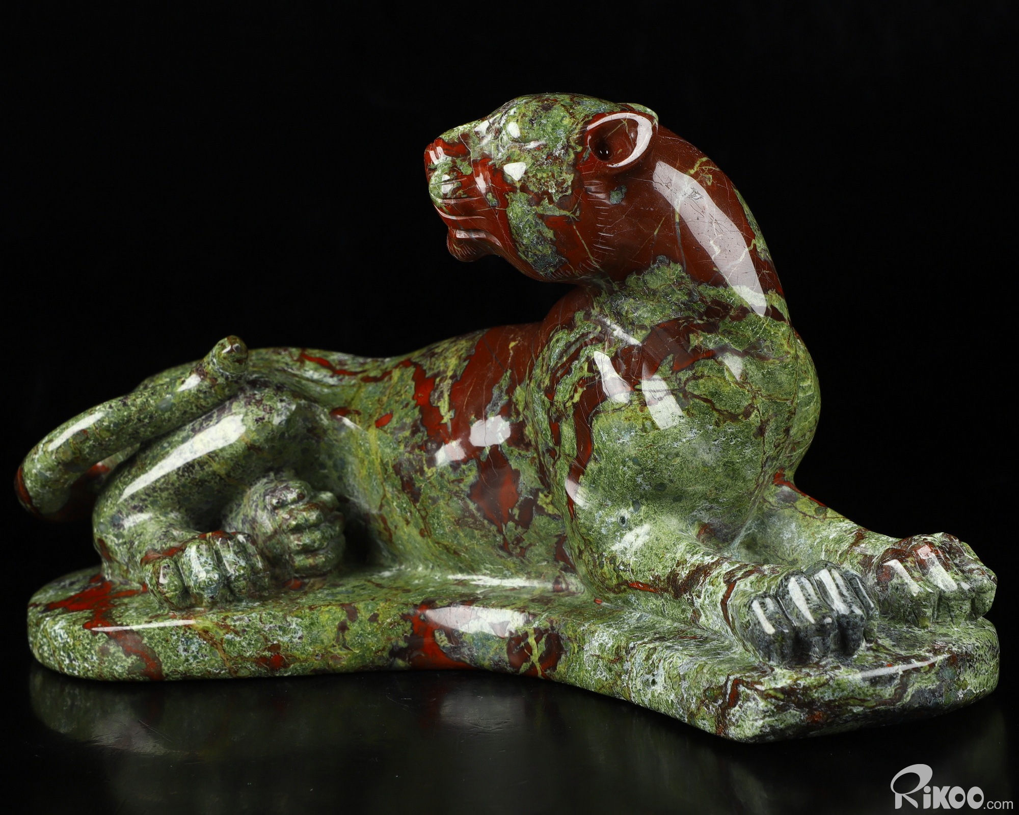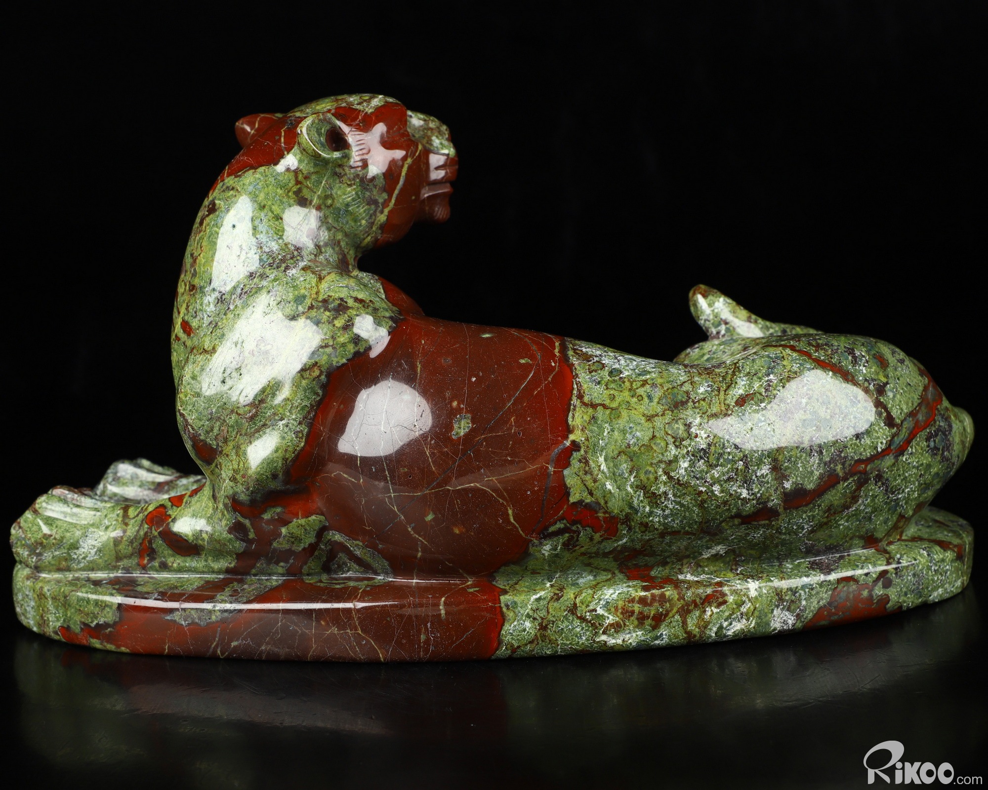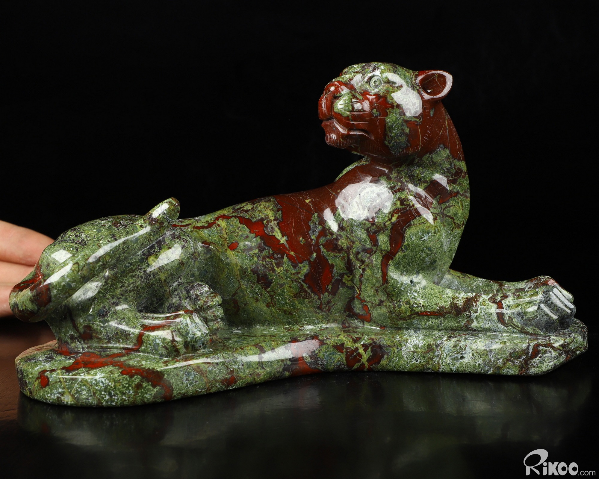Giant 8.1" Dragon Blood Jasper Carved Crystal Leopard Sculpture, Realistic