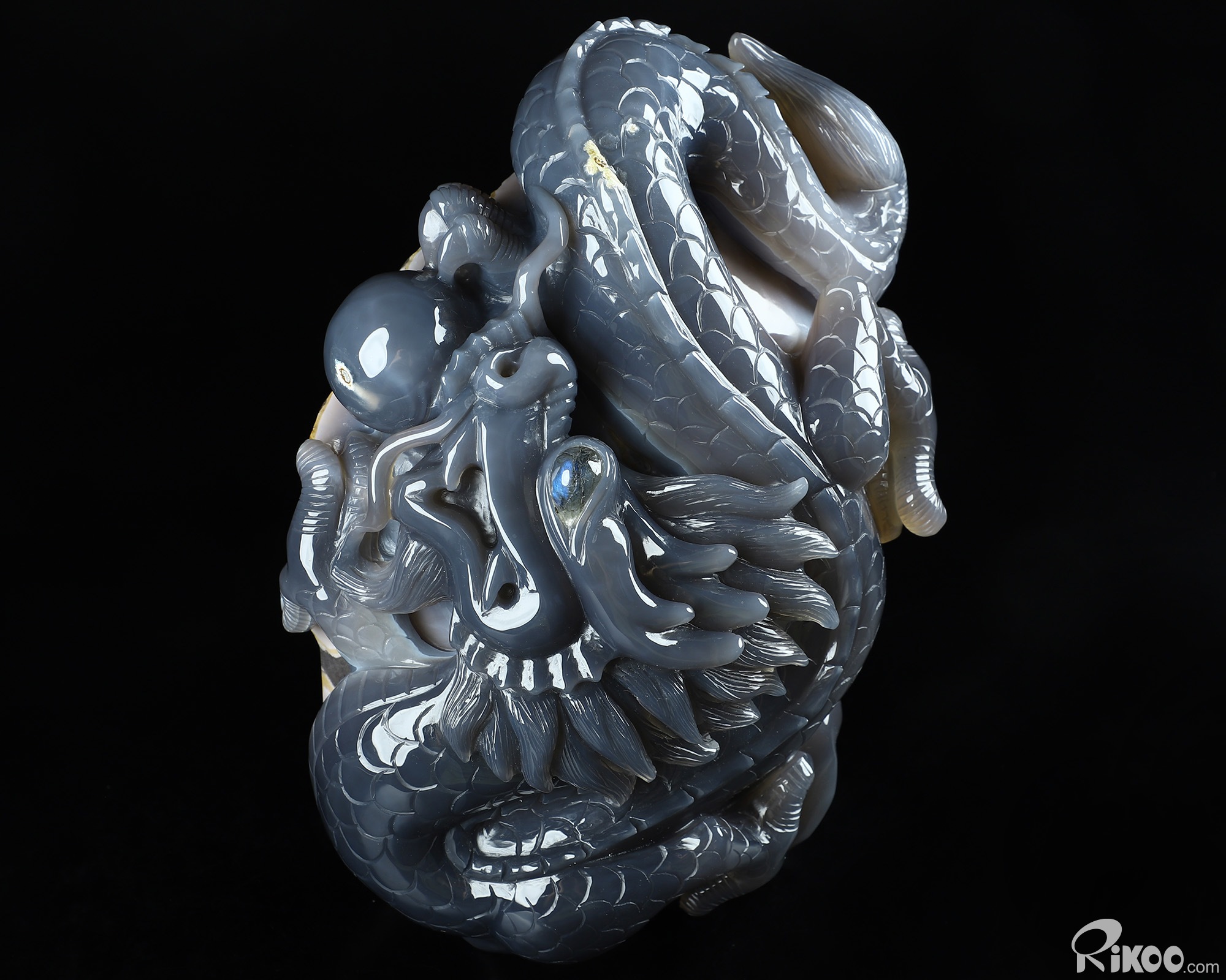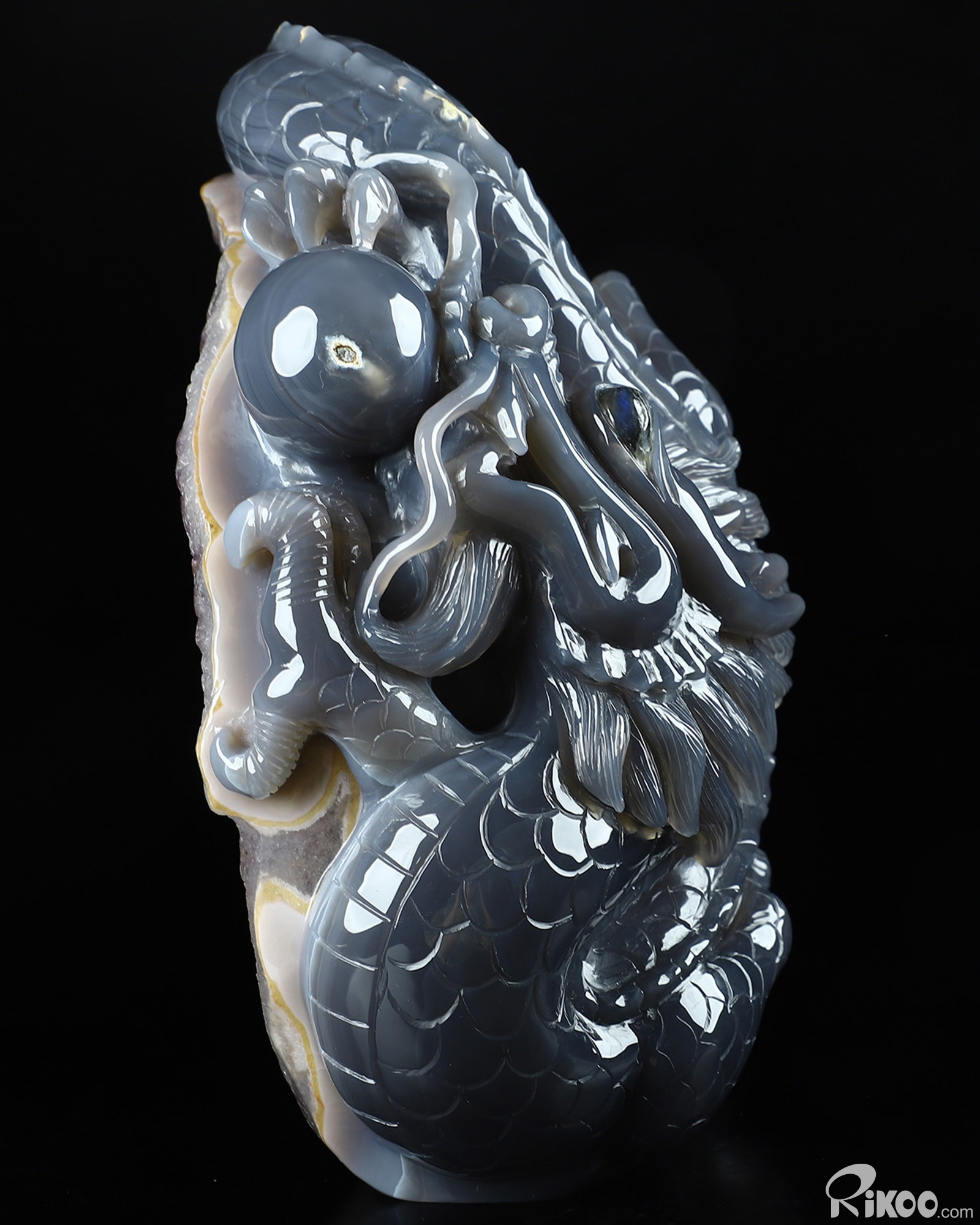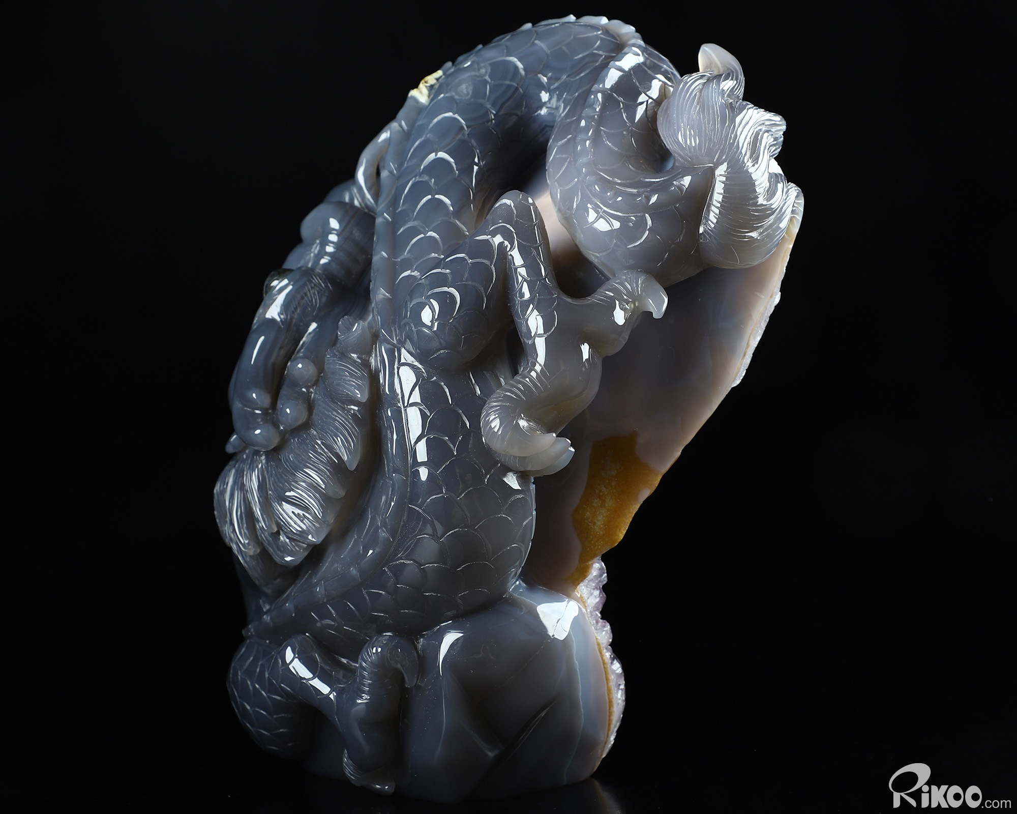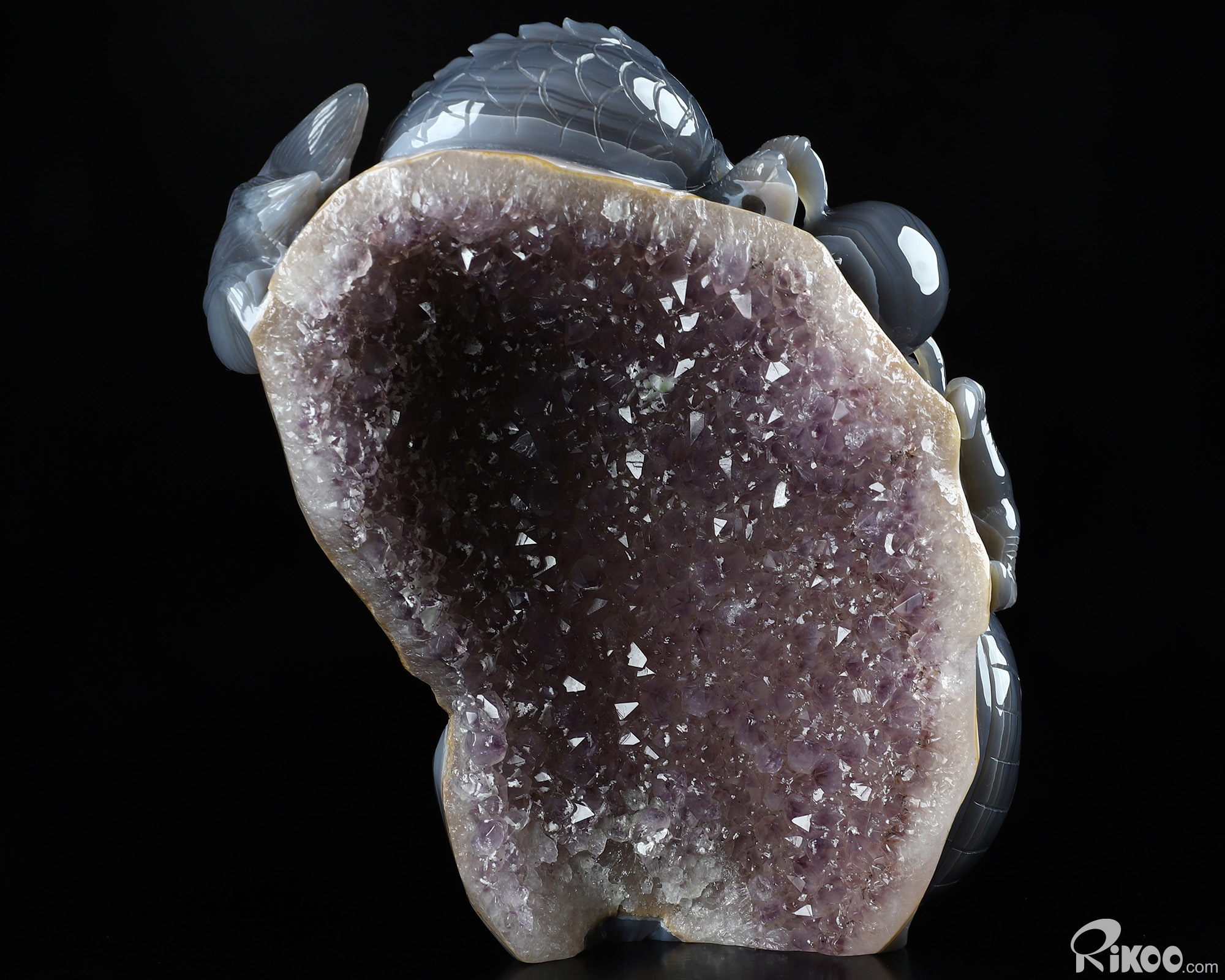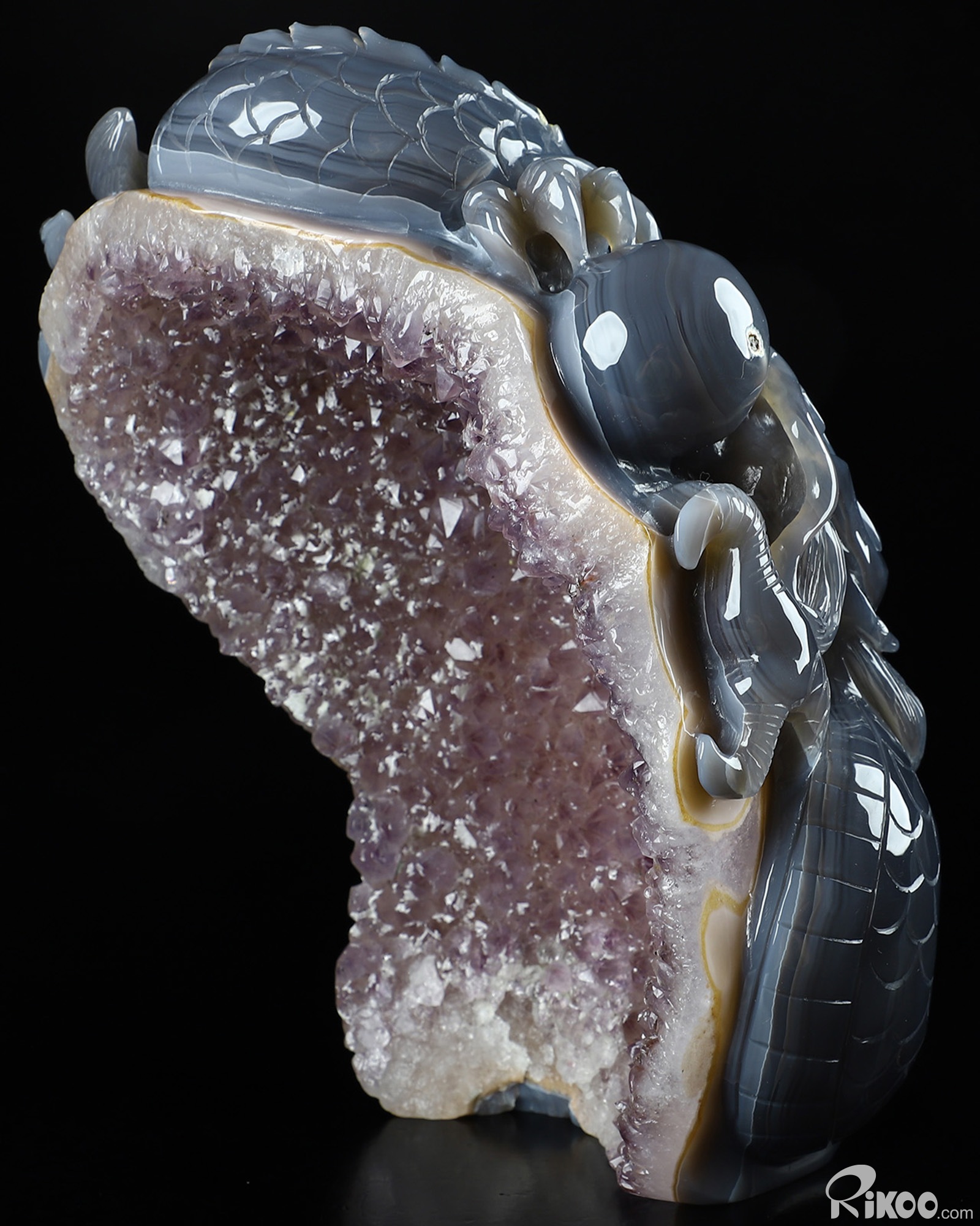 Giant 8.3" Agate Amethyst Geode Carved Crystal Dragon Sculpture, Crystal Healing