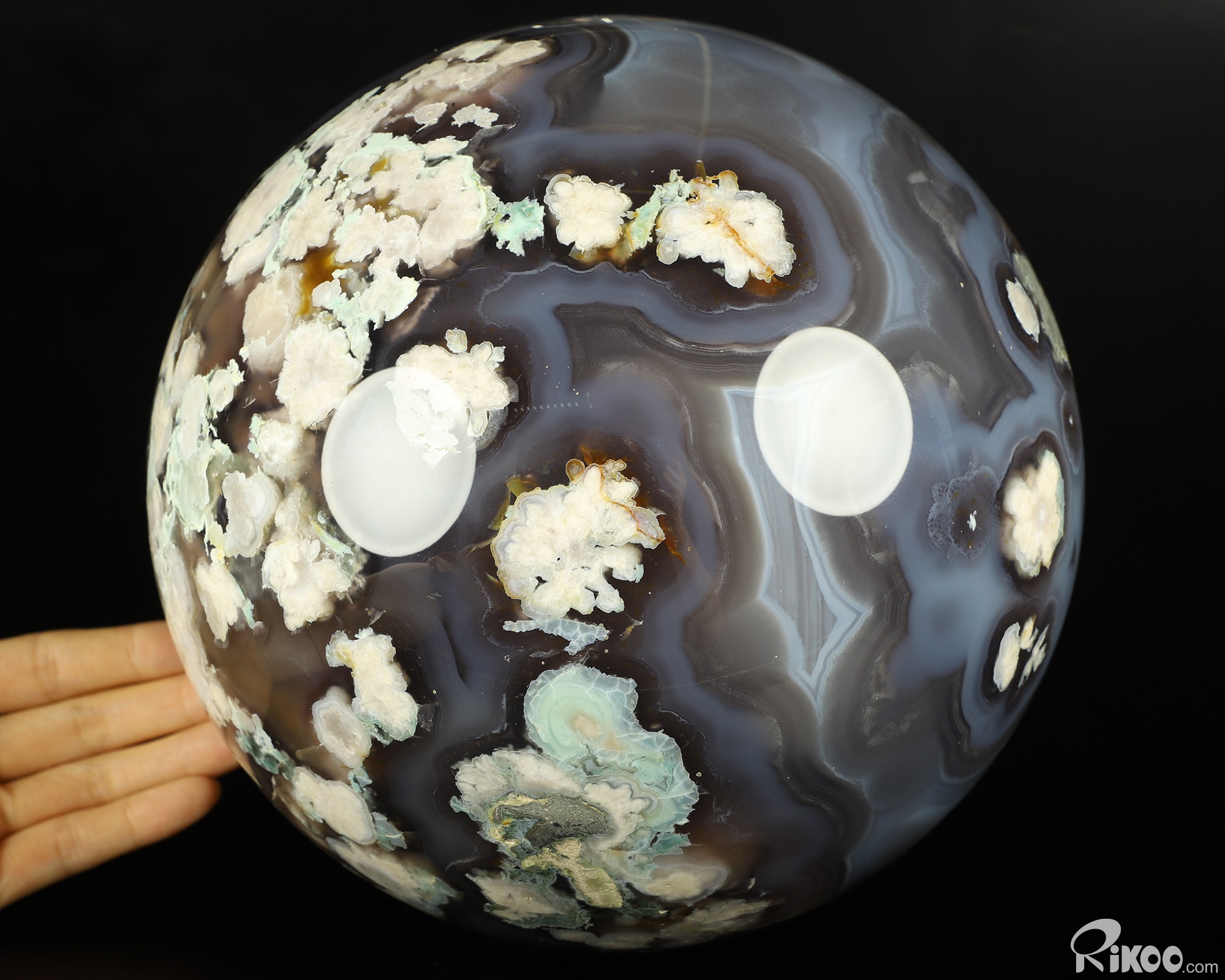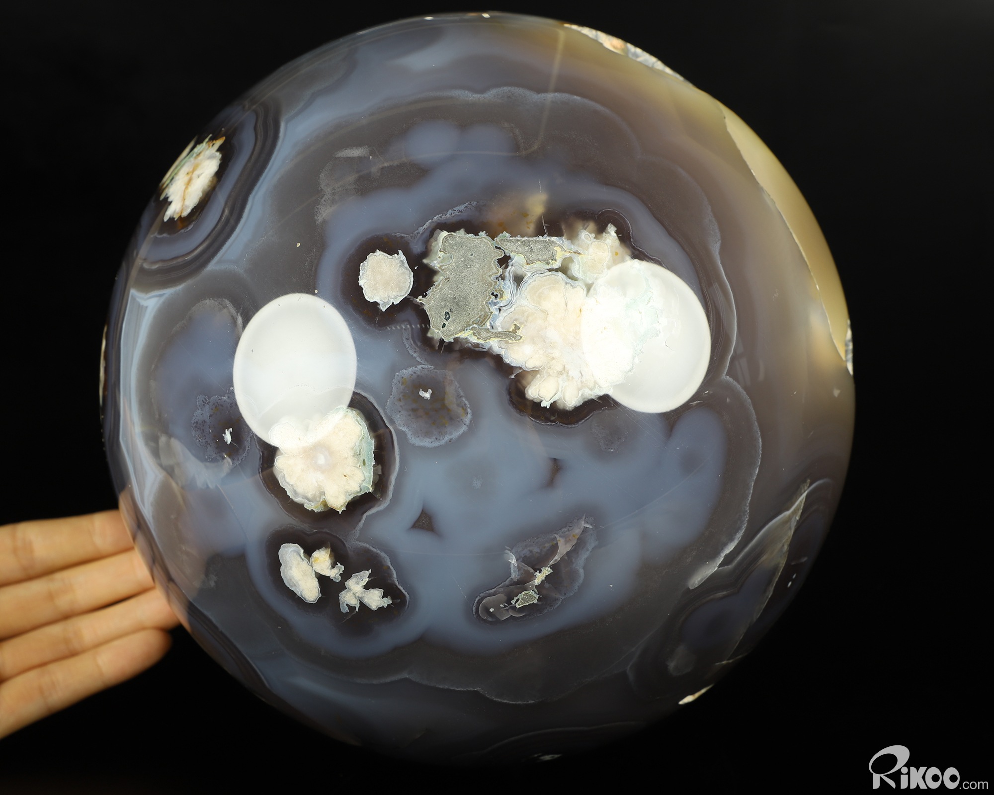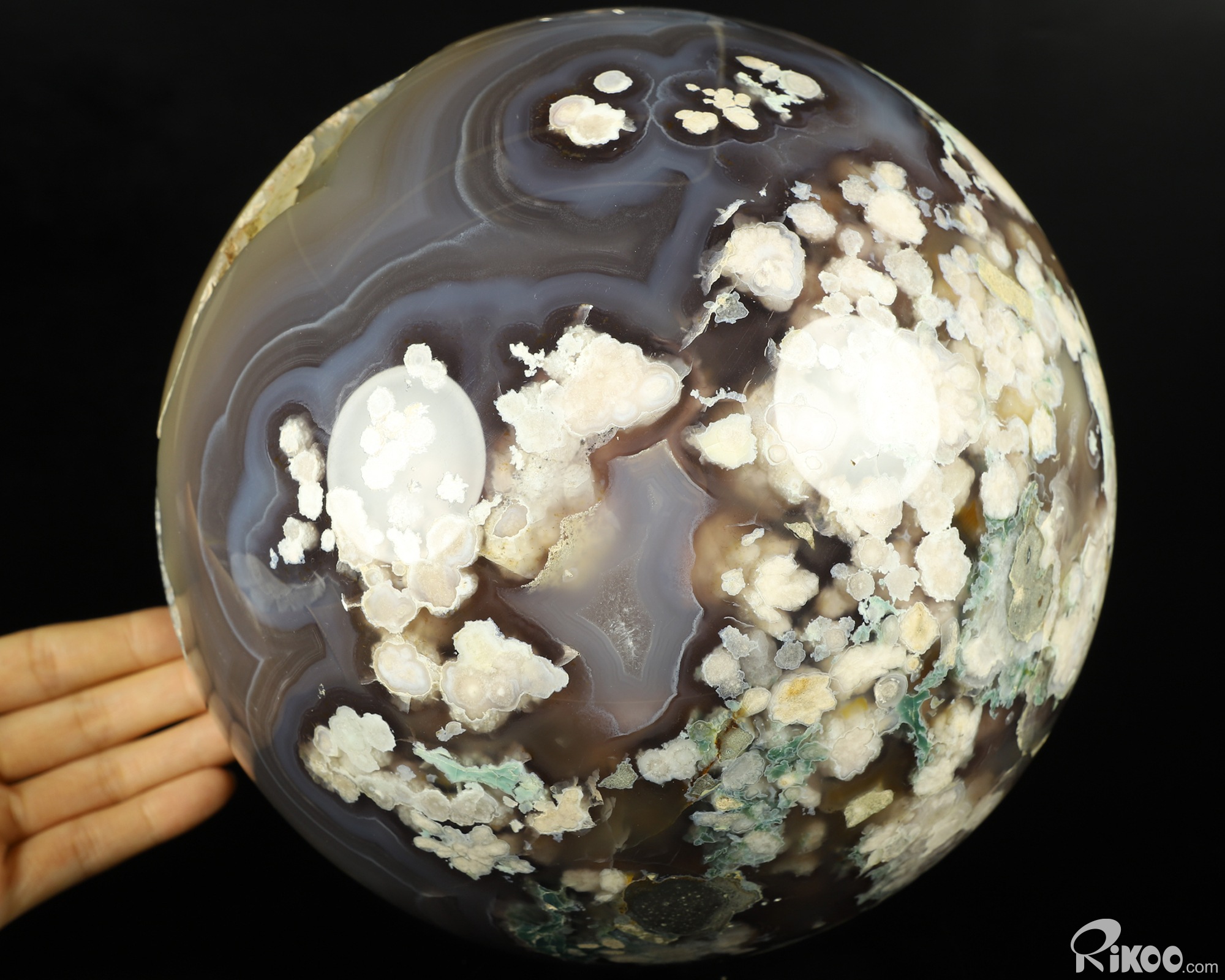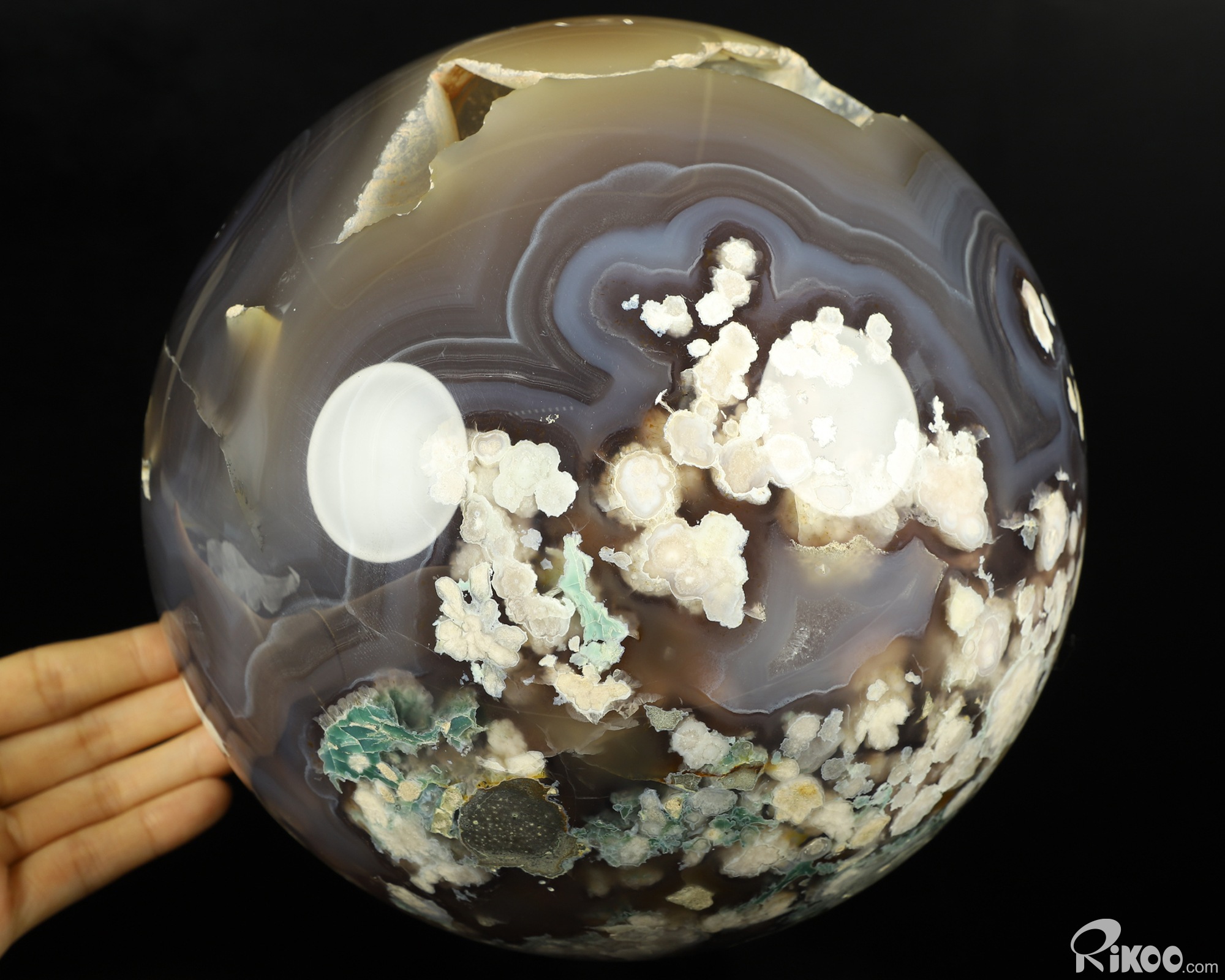 Giant 8.3" Agate Geode Carved Ball Crystal Sphere, Realistic