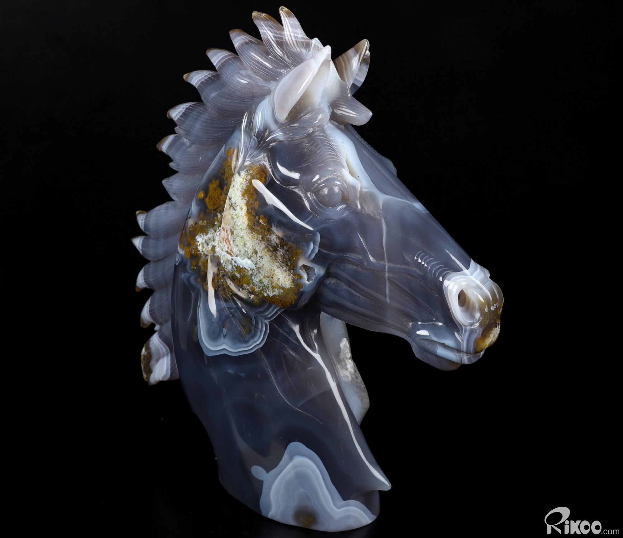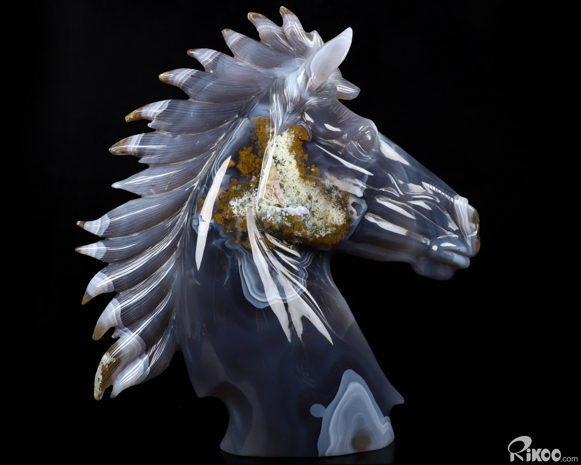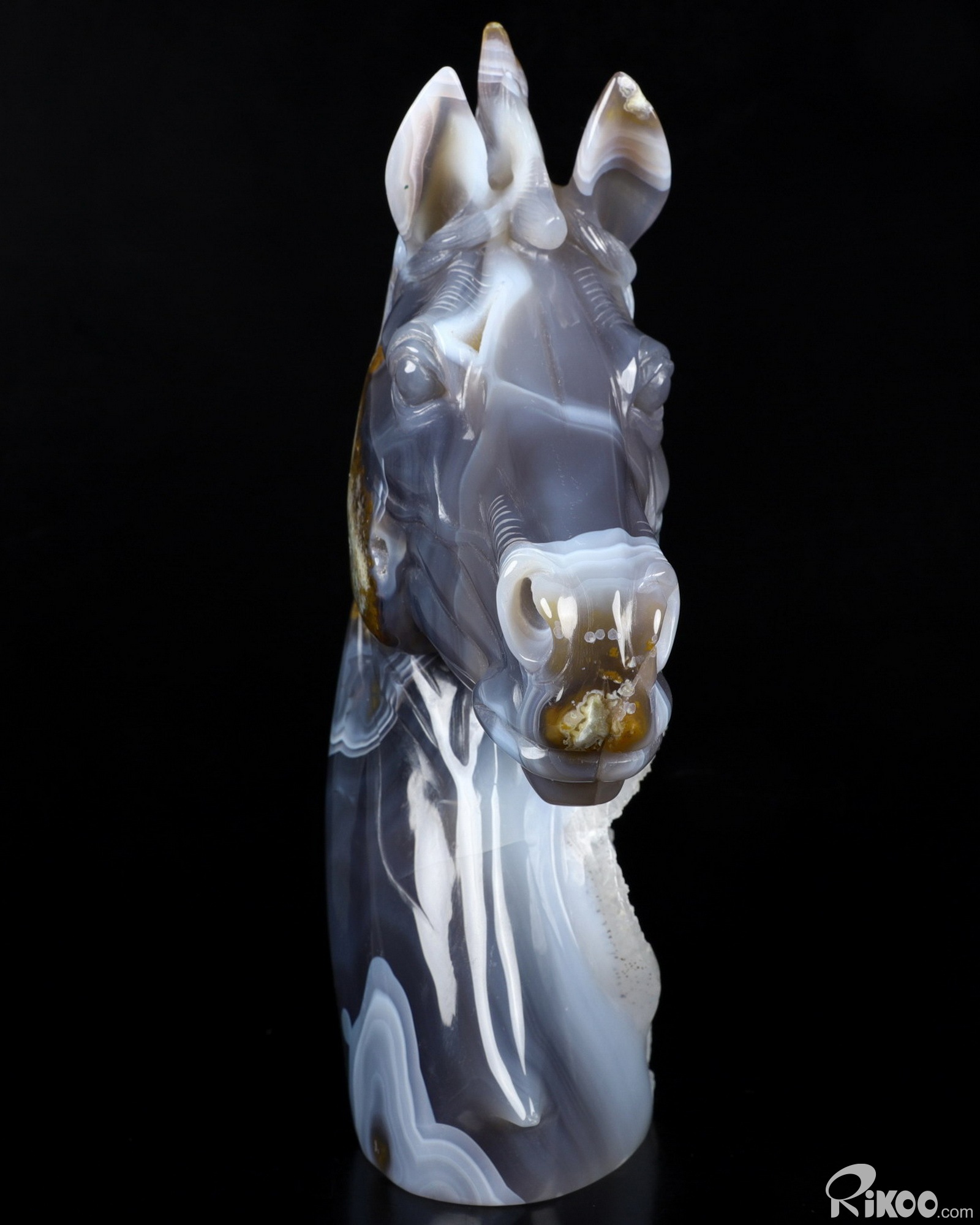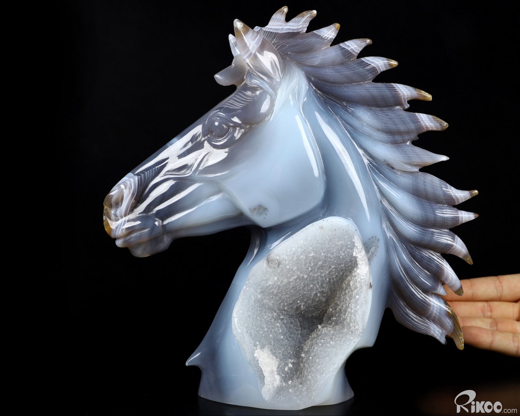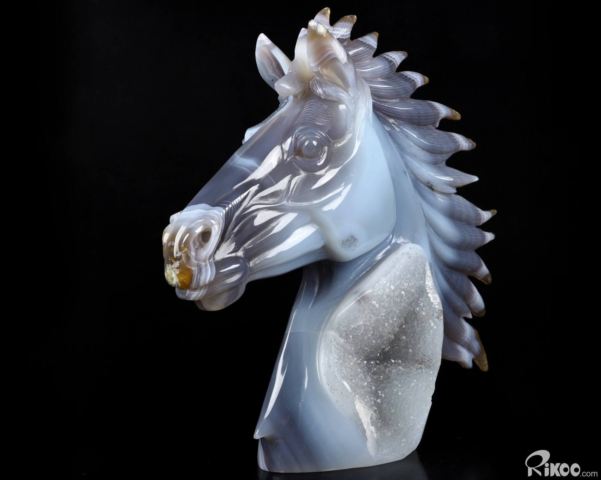 Awesome 8.6" Agate Geode Carved Crystal Horse Sculpture, Crystal Healing