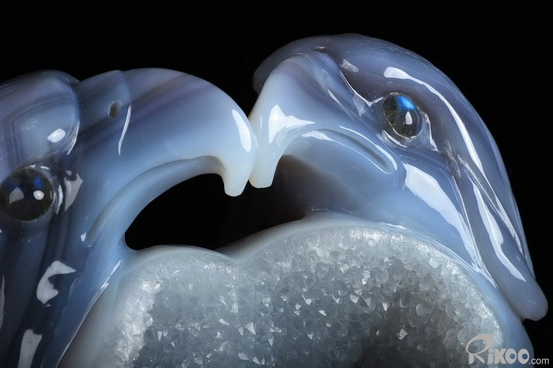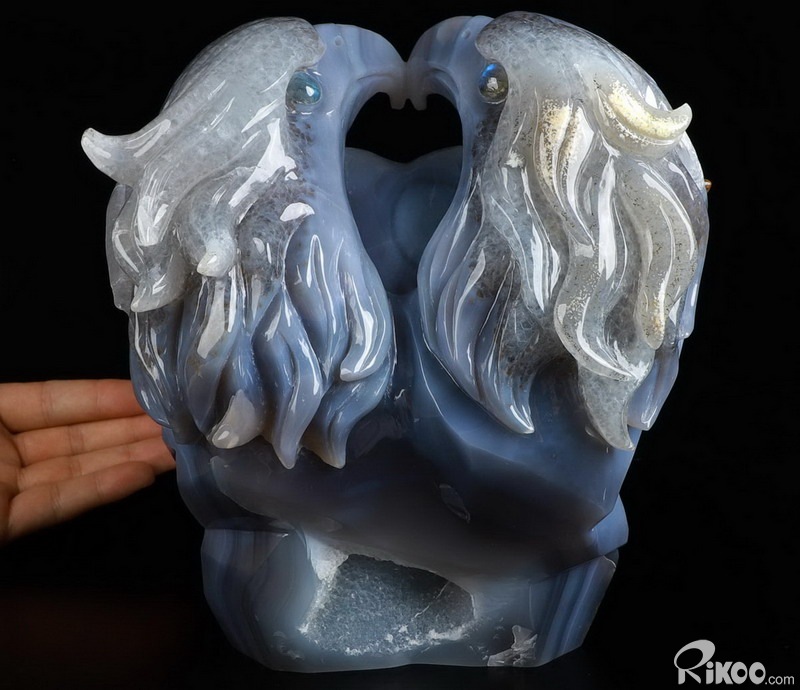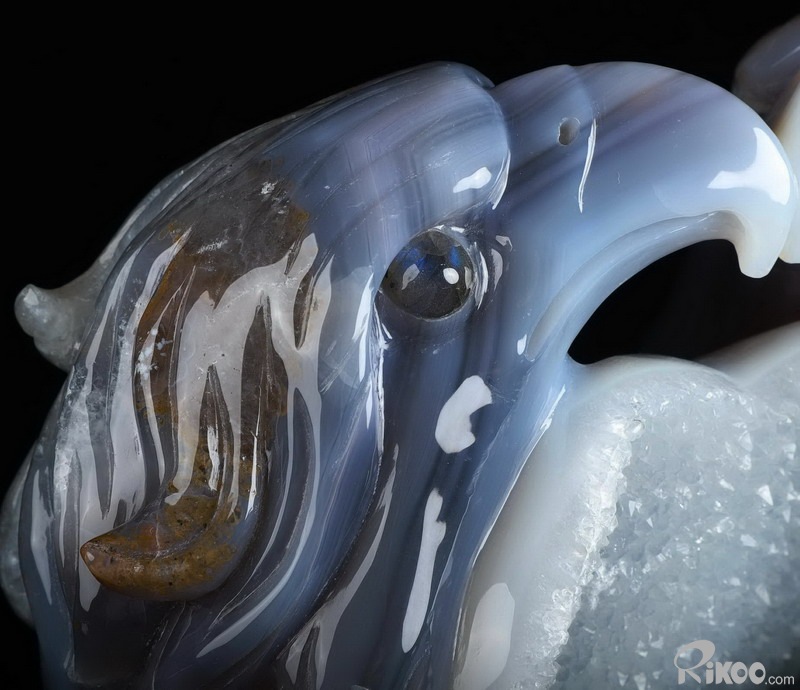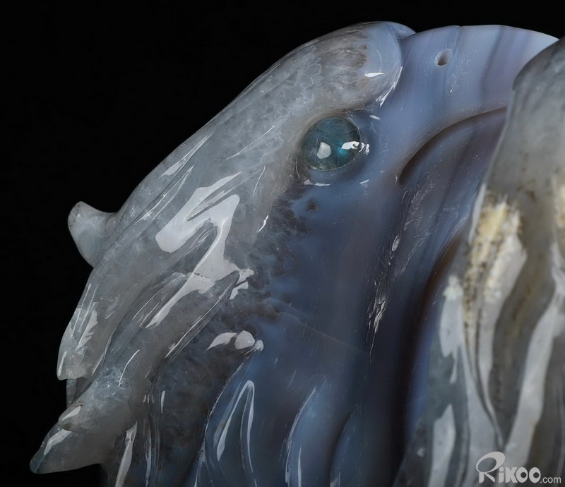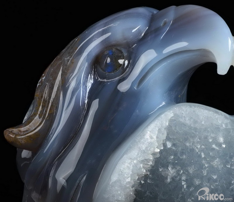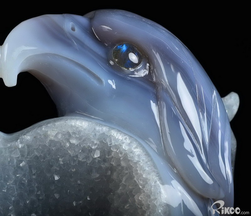 Giant 8.6" Gray & White Agate Carved Crystal Eagle Sculpture, Realistic, Crystal Healing