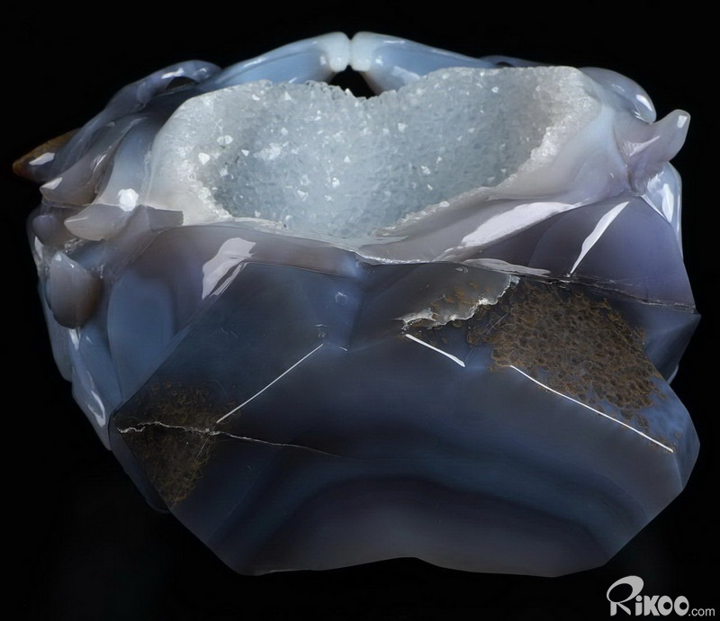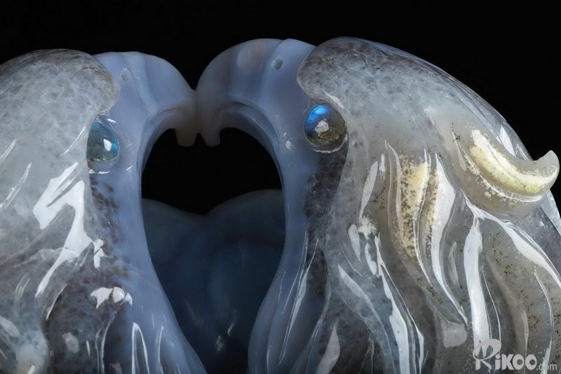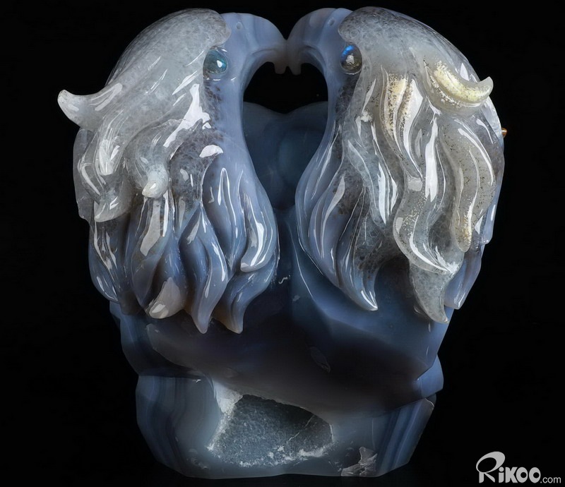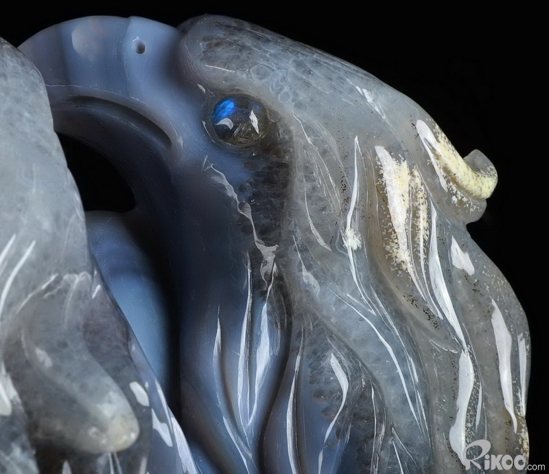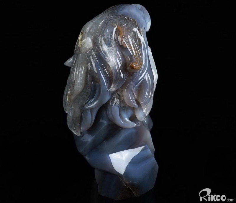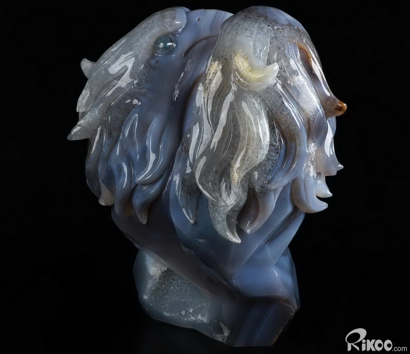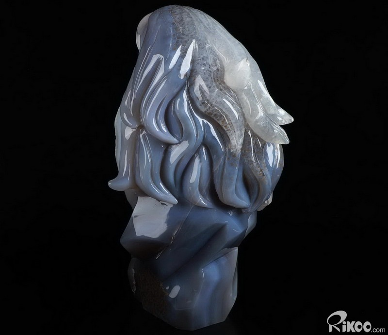 You are looking at a Gray & White Agate skull. The skull is 8.6 inches long from front to back.