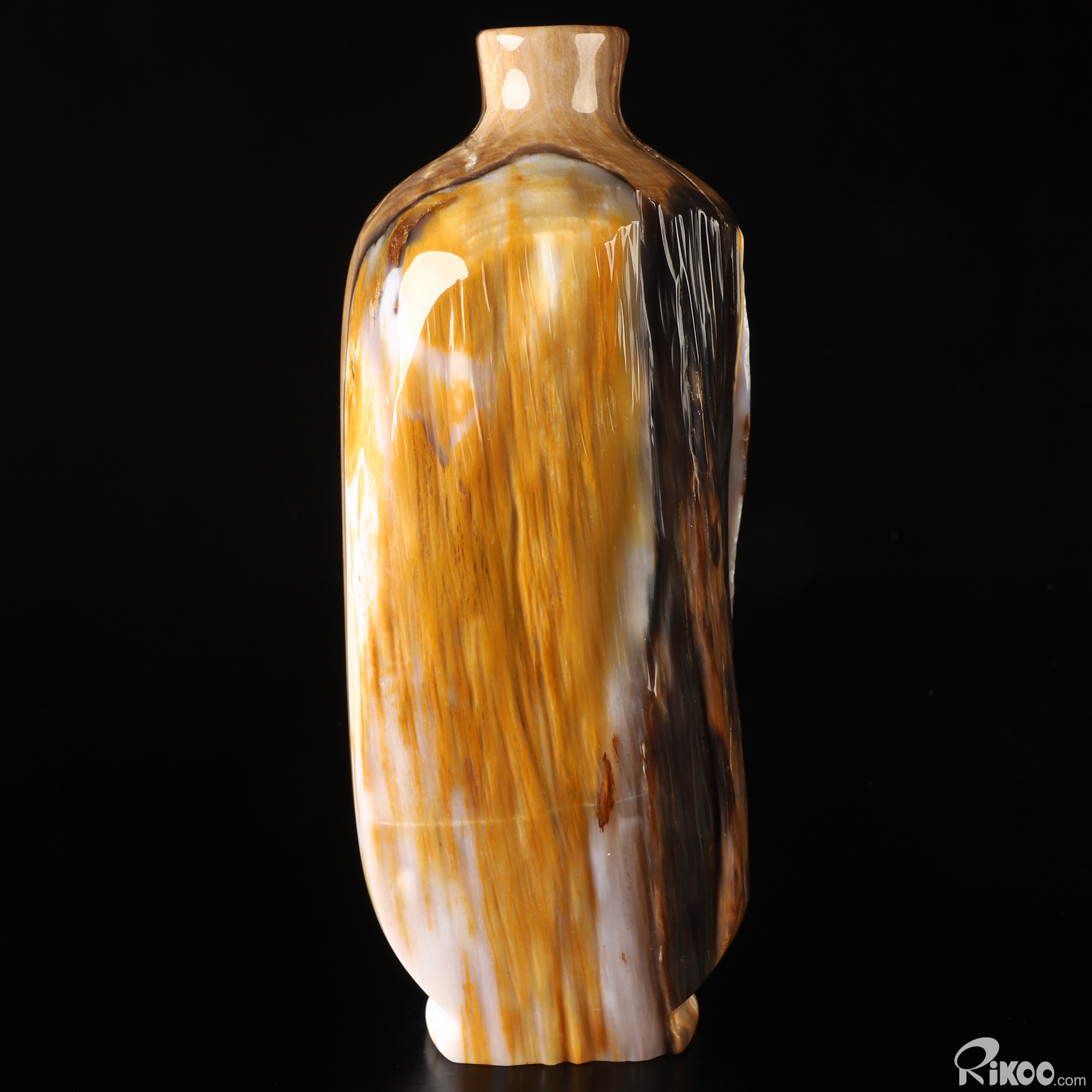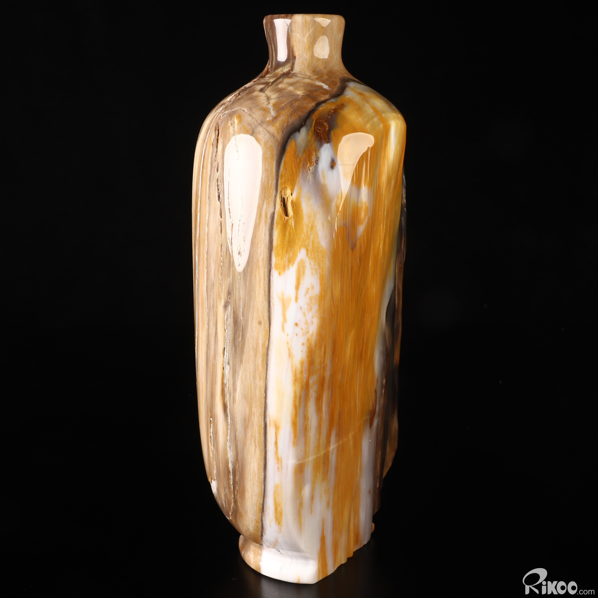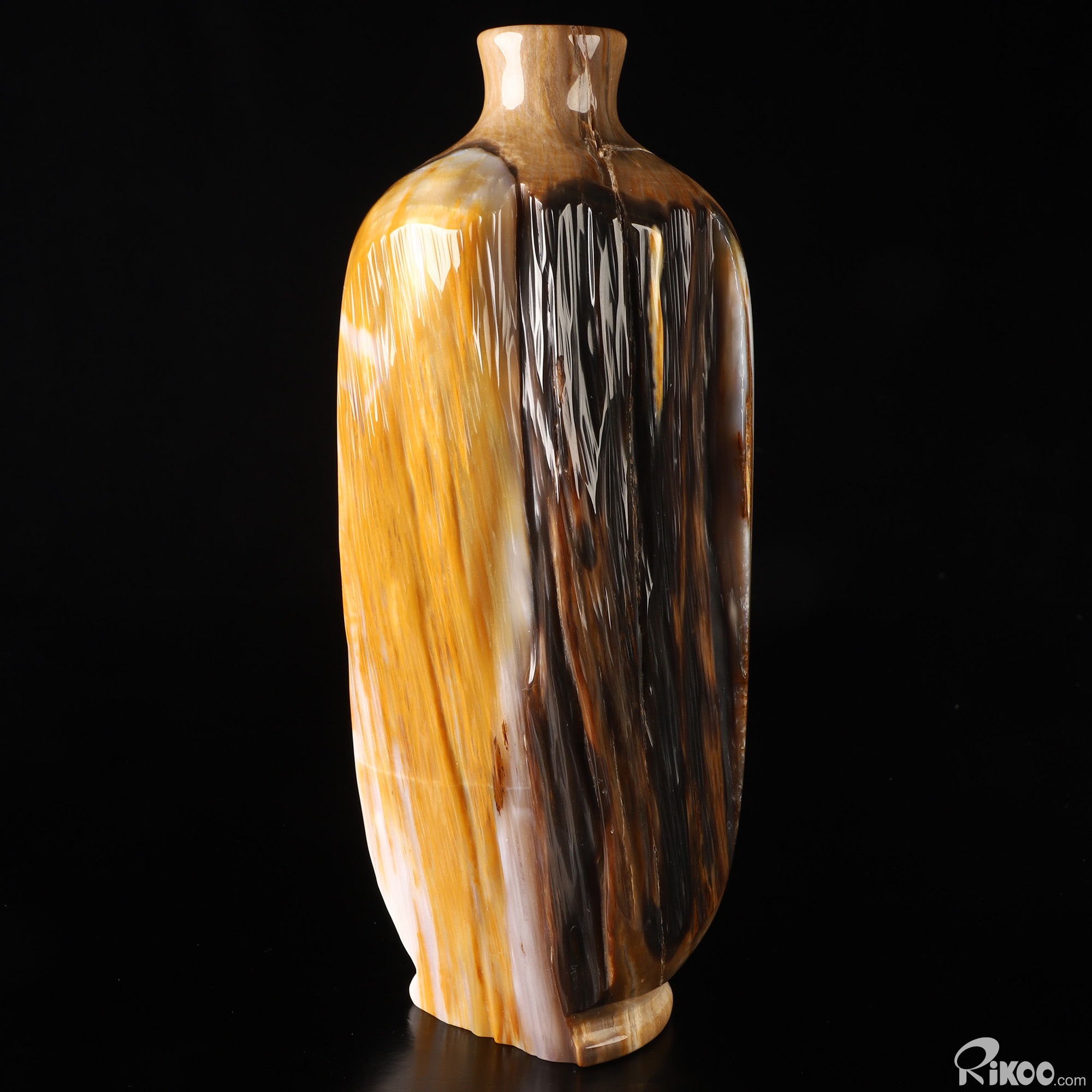 This vase with limited functionality is mainly for display.This "stone" is most noted in helping us to investigate past-life experiences. Makes the user more aware of nature. It is a warm earthy stone, which is used at the Root Chakra, encouraging ones survival instincts and is grounding. Petrified Wood is also believed to energize the Heart Chakra. In mythological times, petrified wood was believed to possess divine power and to this day, stands as a symbol of man's true connection to the natural world. This stone helps with mental longevity, helping to sooth emotions, generating calm and relieves stress.