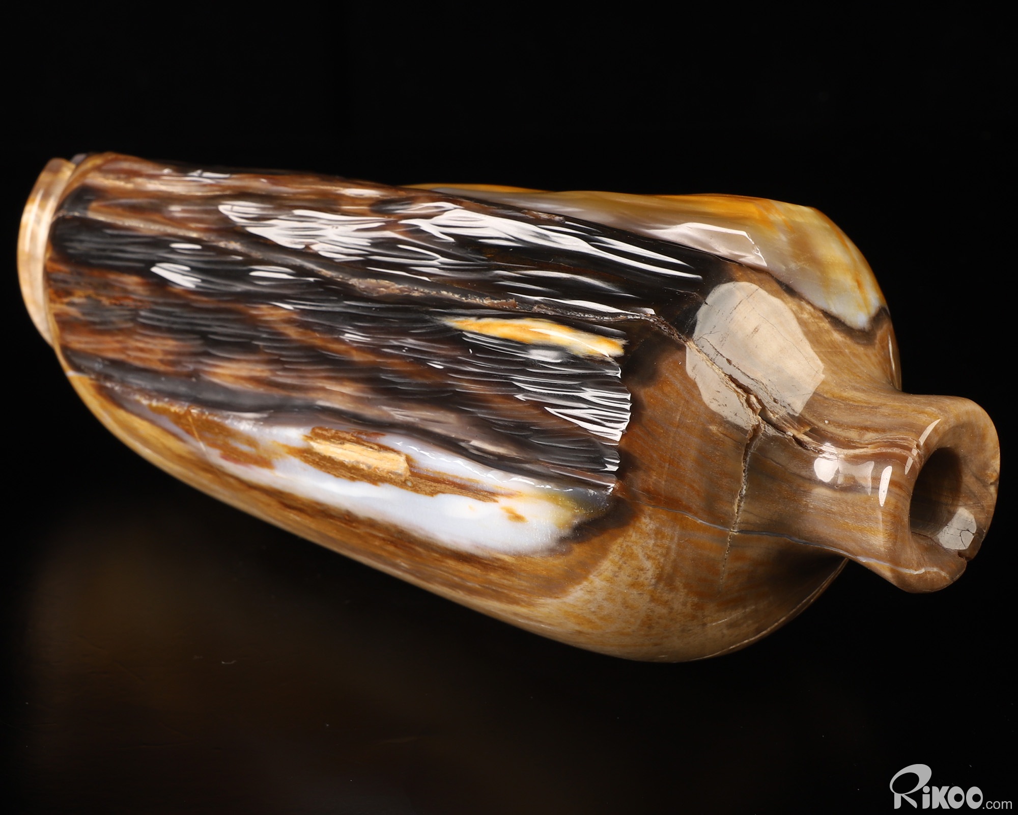 You are looking at a Petrified Wood sculpture. The sculpture is 9.6 inches long.