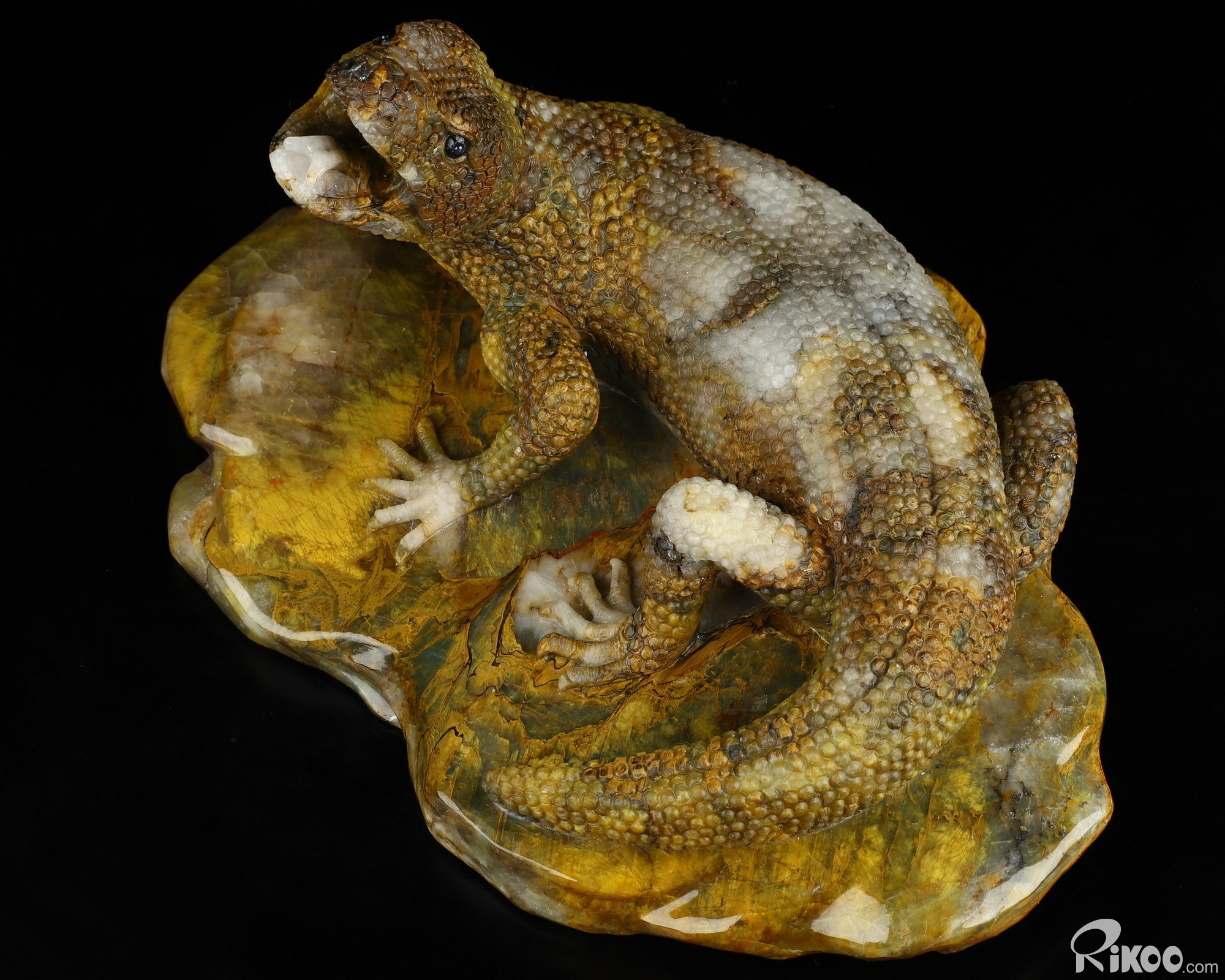 Gila Monster! 8.3" New Pietersite Hand Carved Crystal Lizard Sculpture, Crystal Healing
