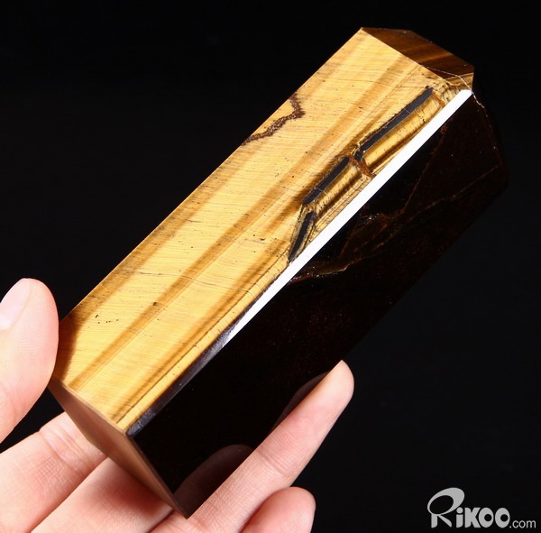 Gold Tiger Eye Carved Crystal Prism