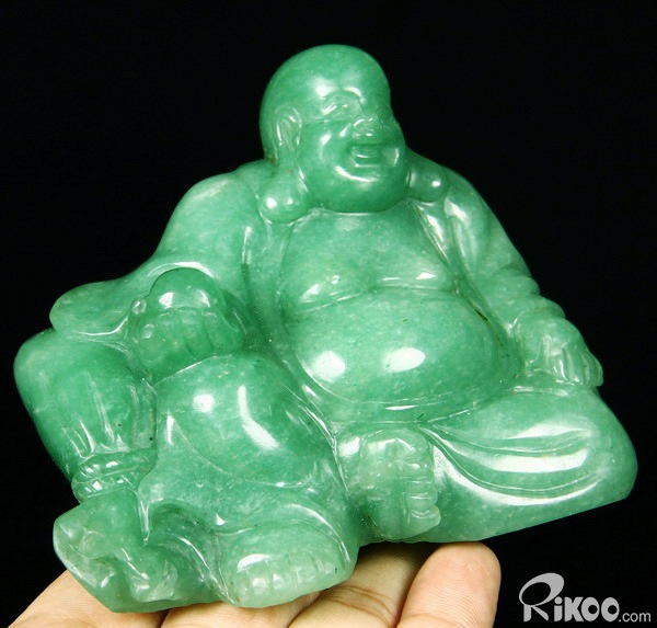 HUGE 4.3" Green Aventurine Carved Crystal Buddha Sculpture