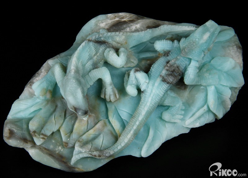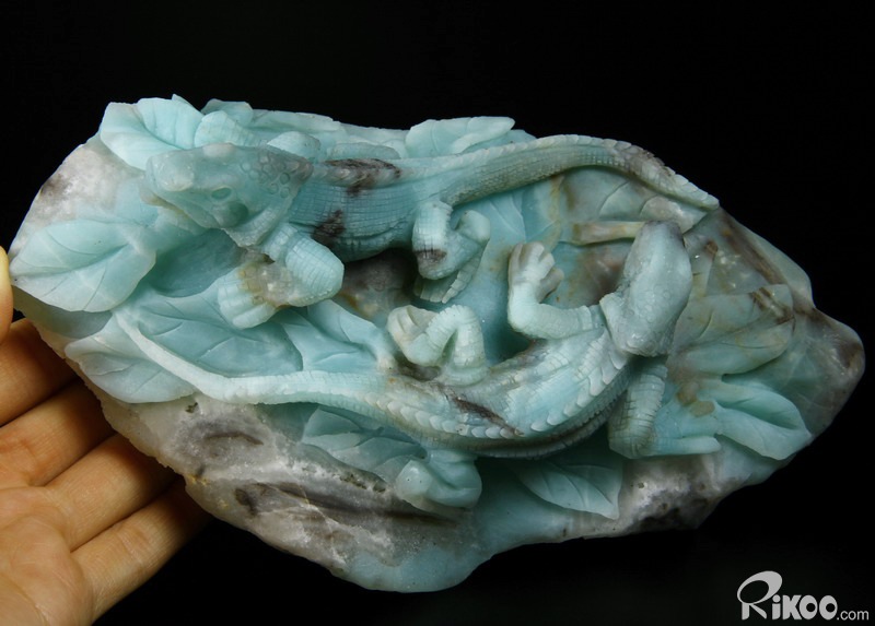 HUGE 7.3" Chinese Amazonite Carved Crystal lizards