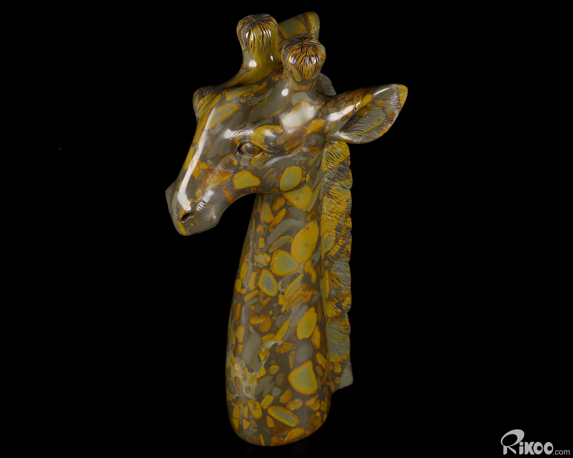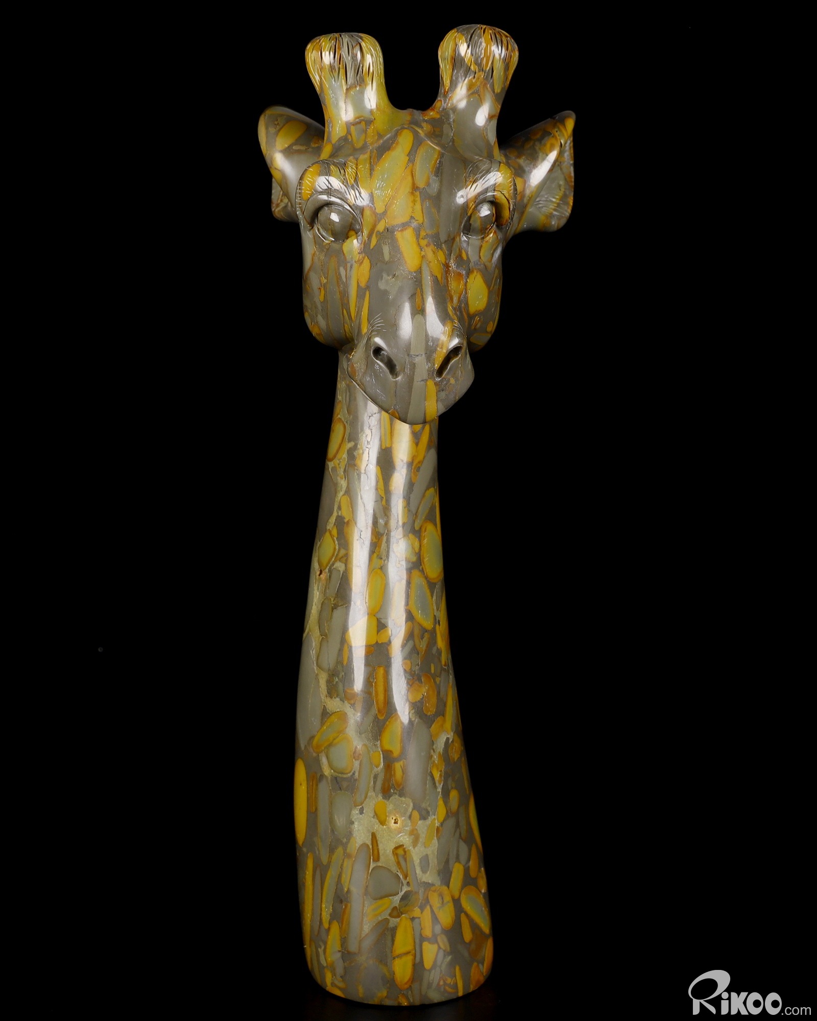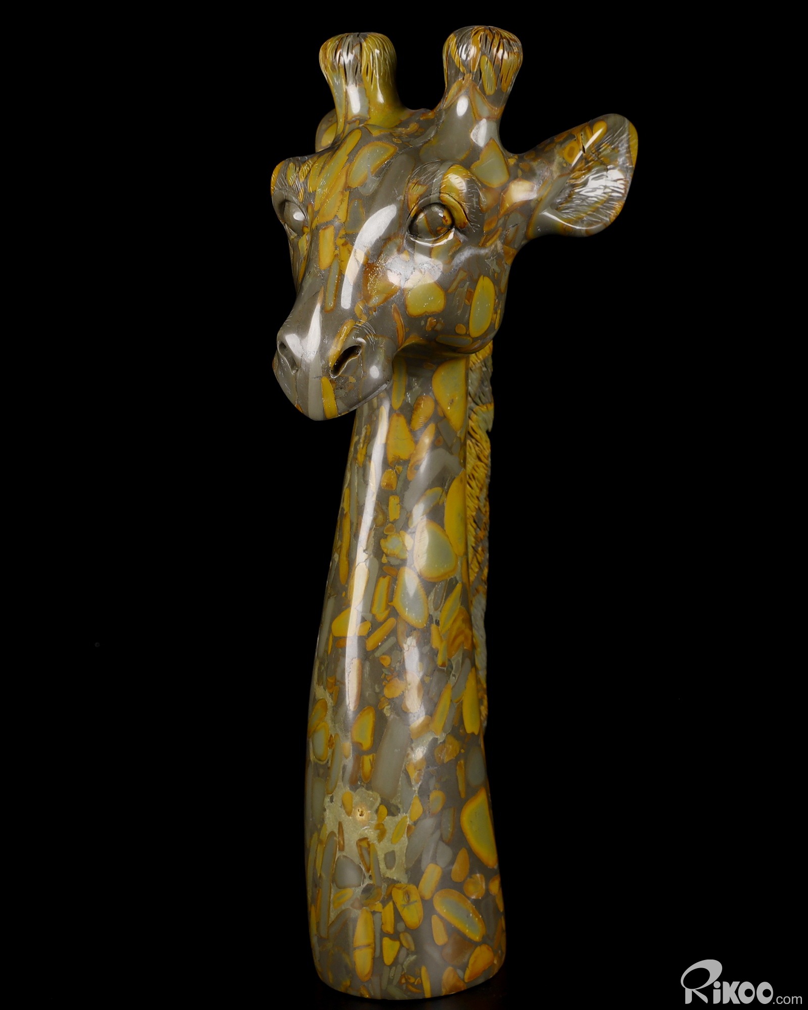 HUGE 8.1" Bamboo Stone Carved Crystal Giraffe Head