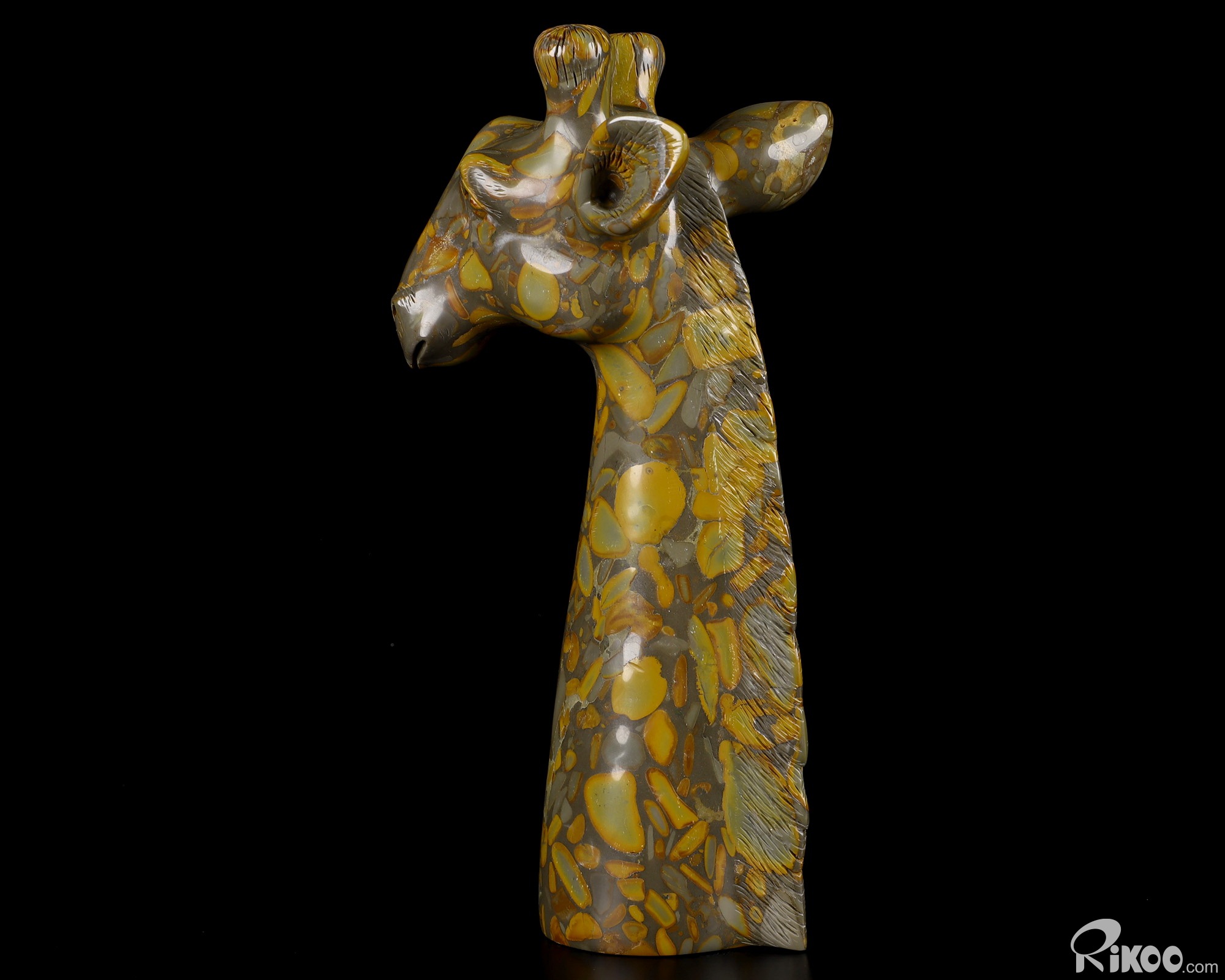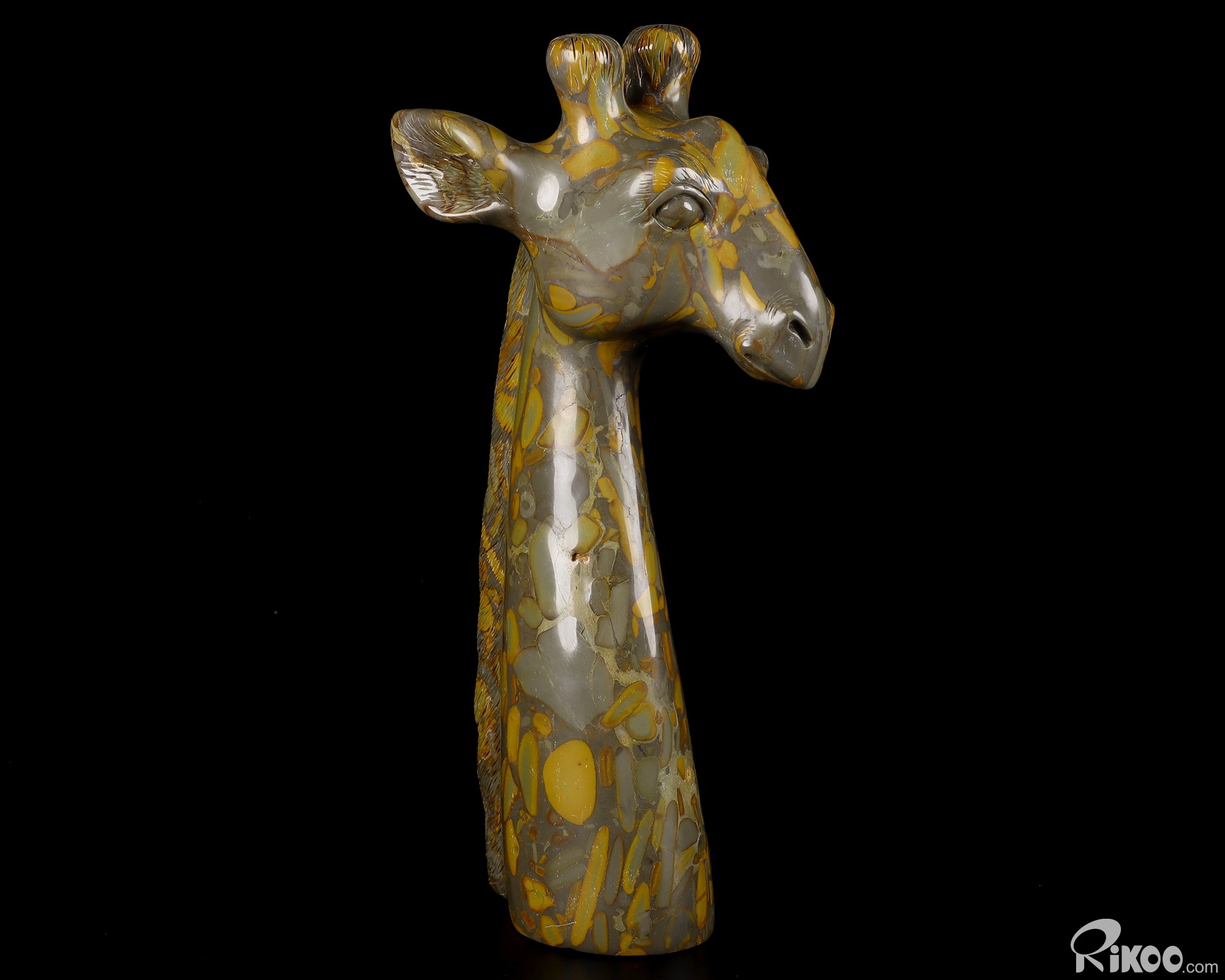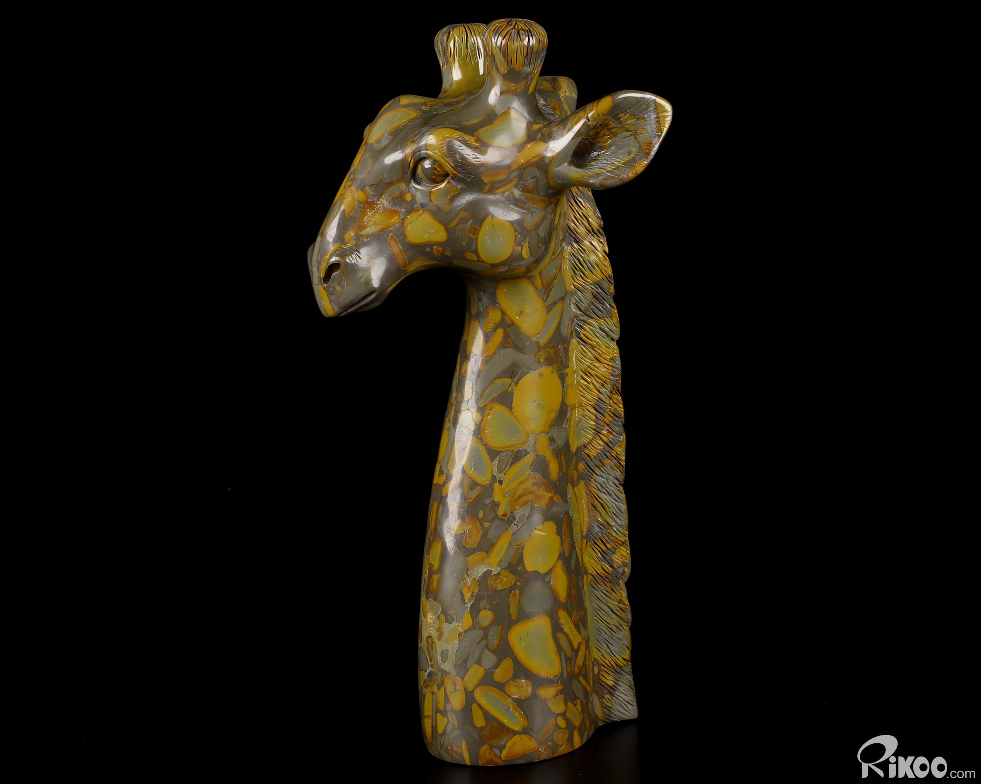 HUGE 8.1" Bamboo Stone Carved Crystal Giraffe Head