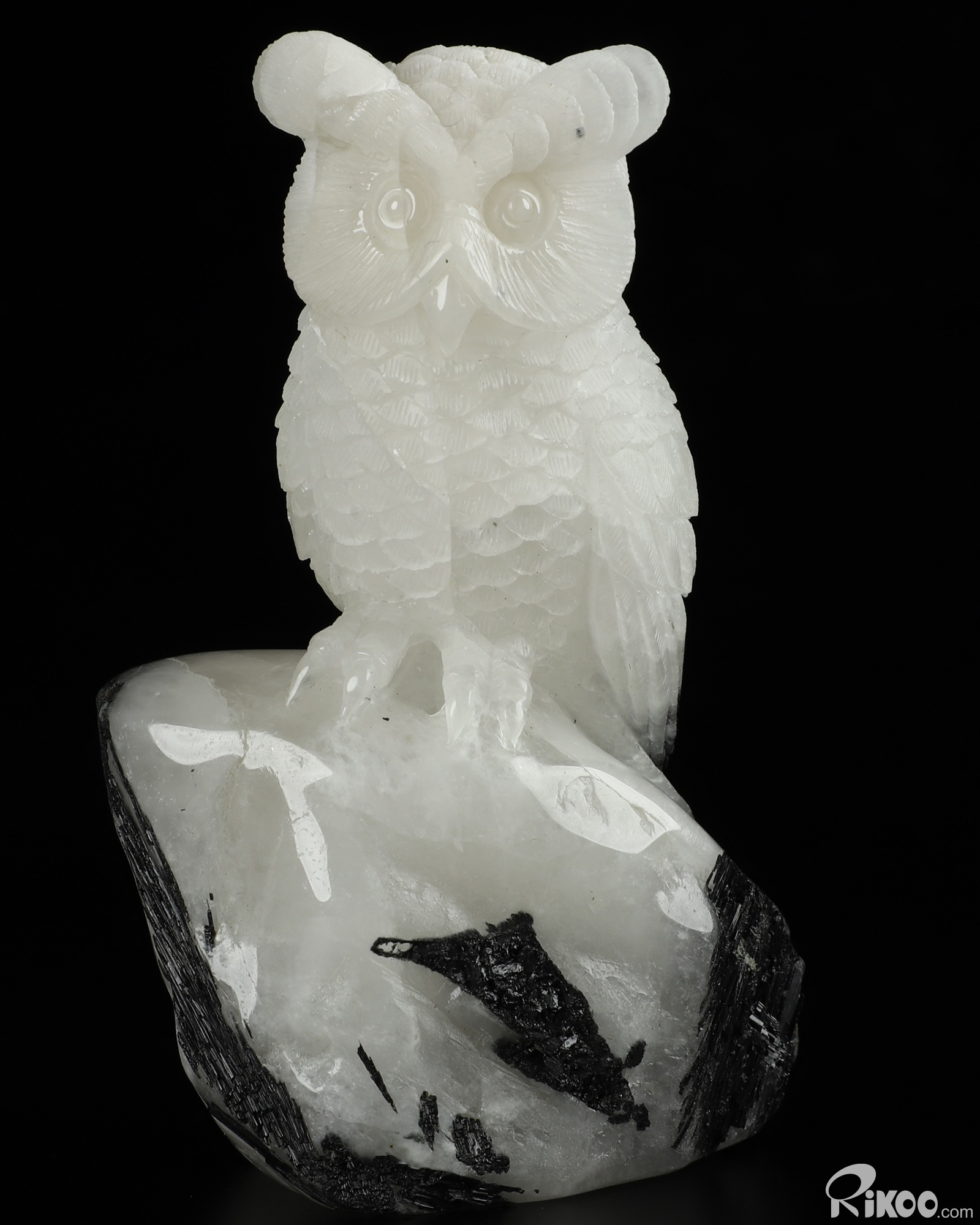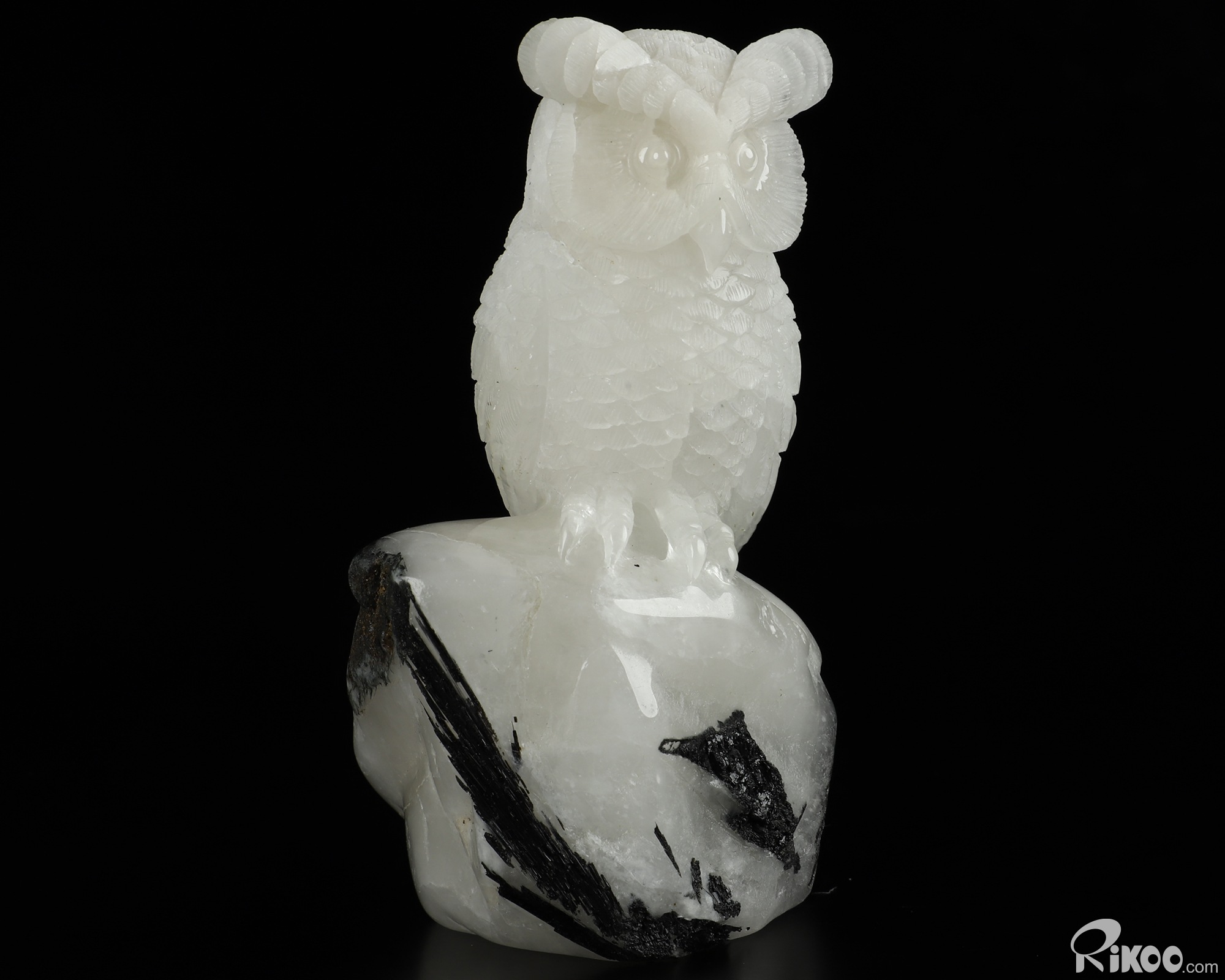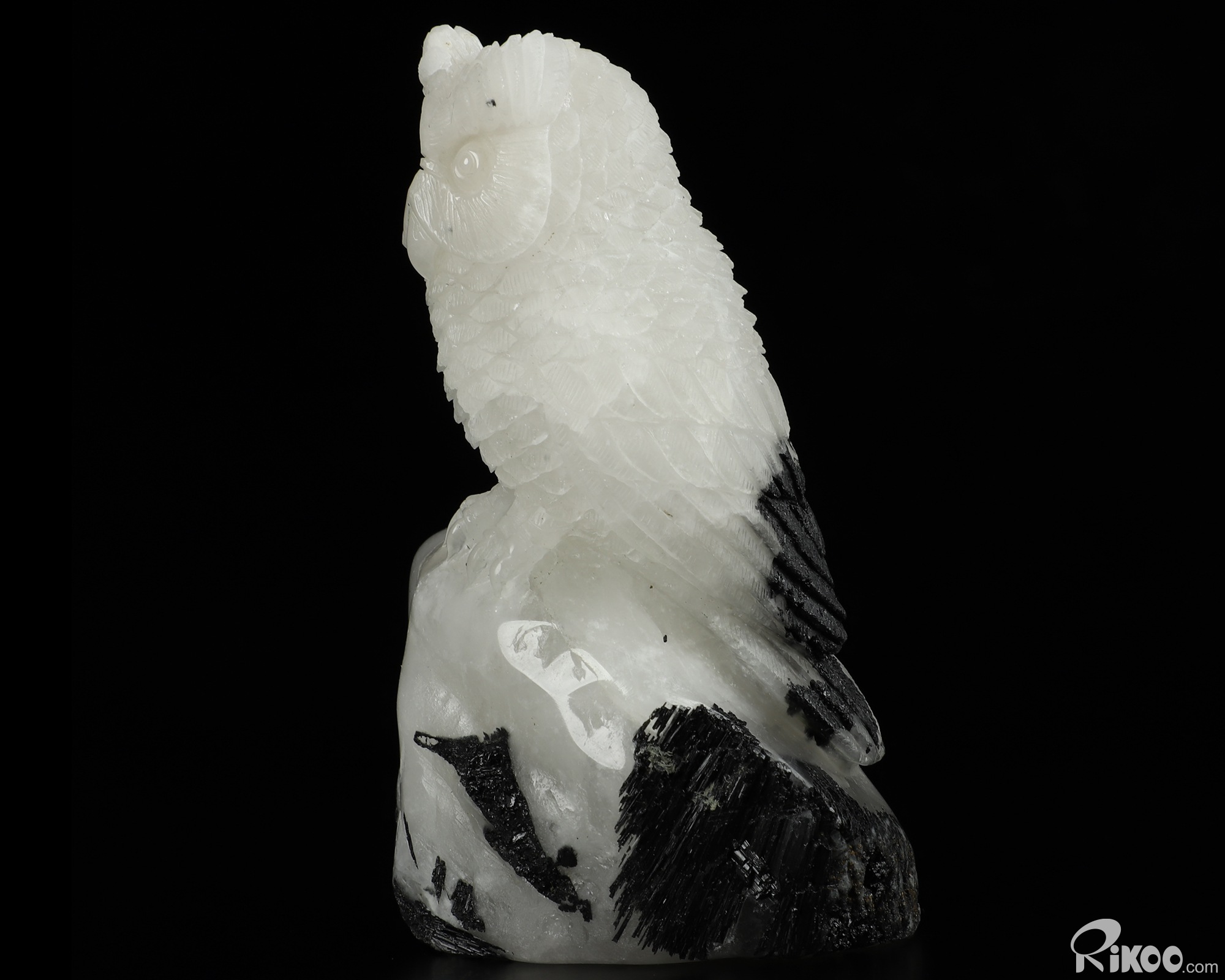 Huge 4.1" Tourmaline Quartz Carved Crystal Owl Sculpture