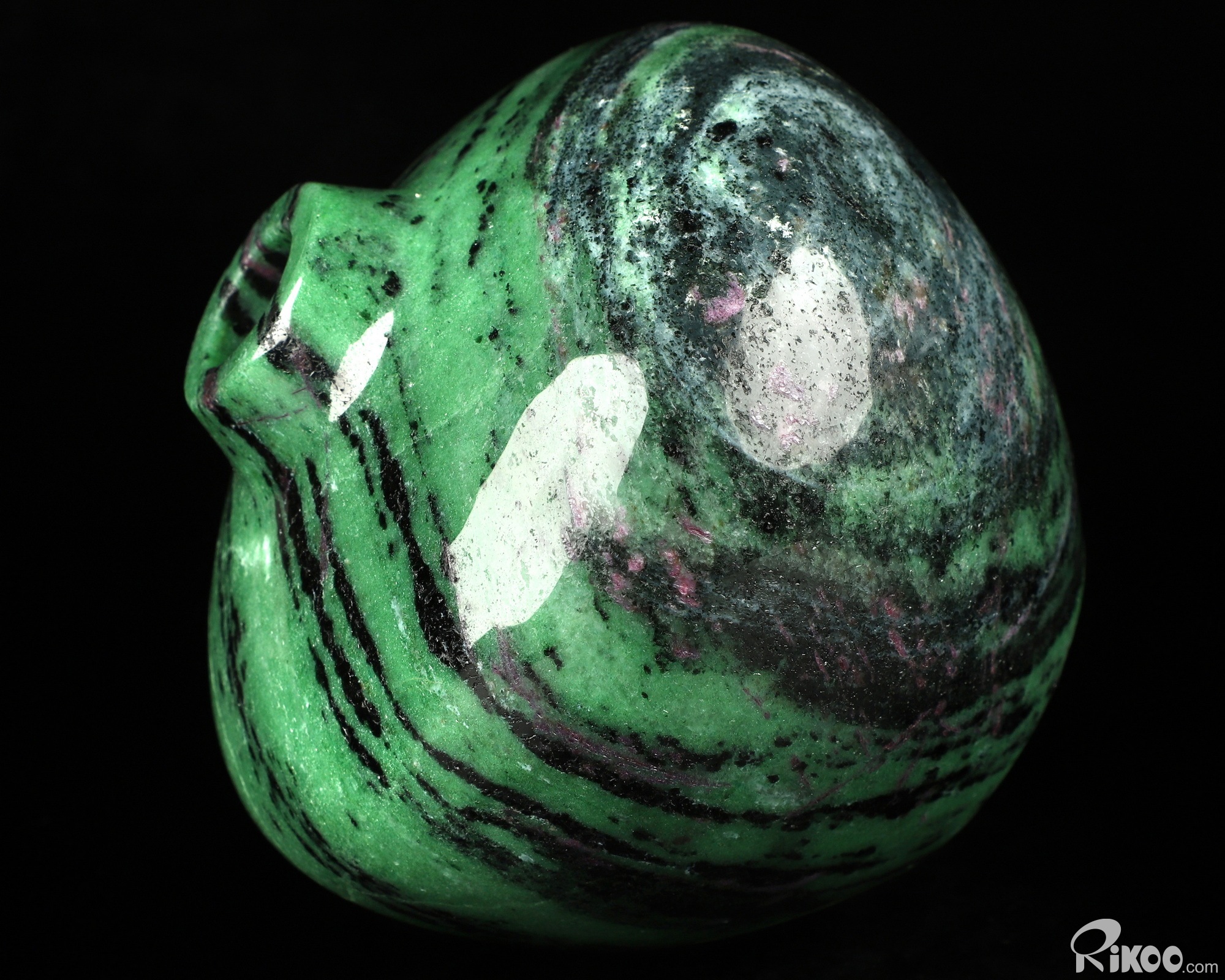 You are looking at a Ruby Zoisite sculpture. The sculpture is 4.7 inches long.