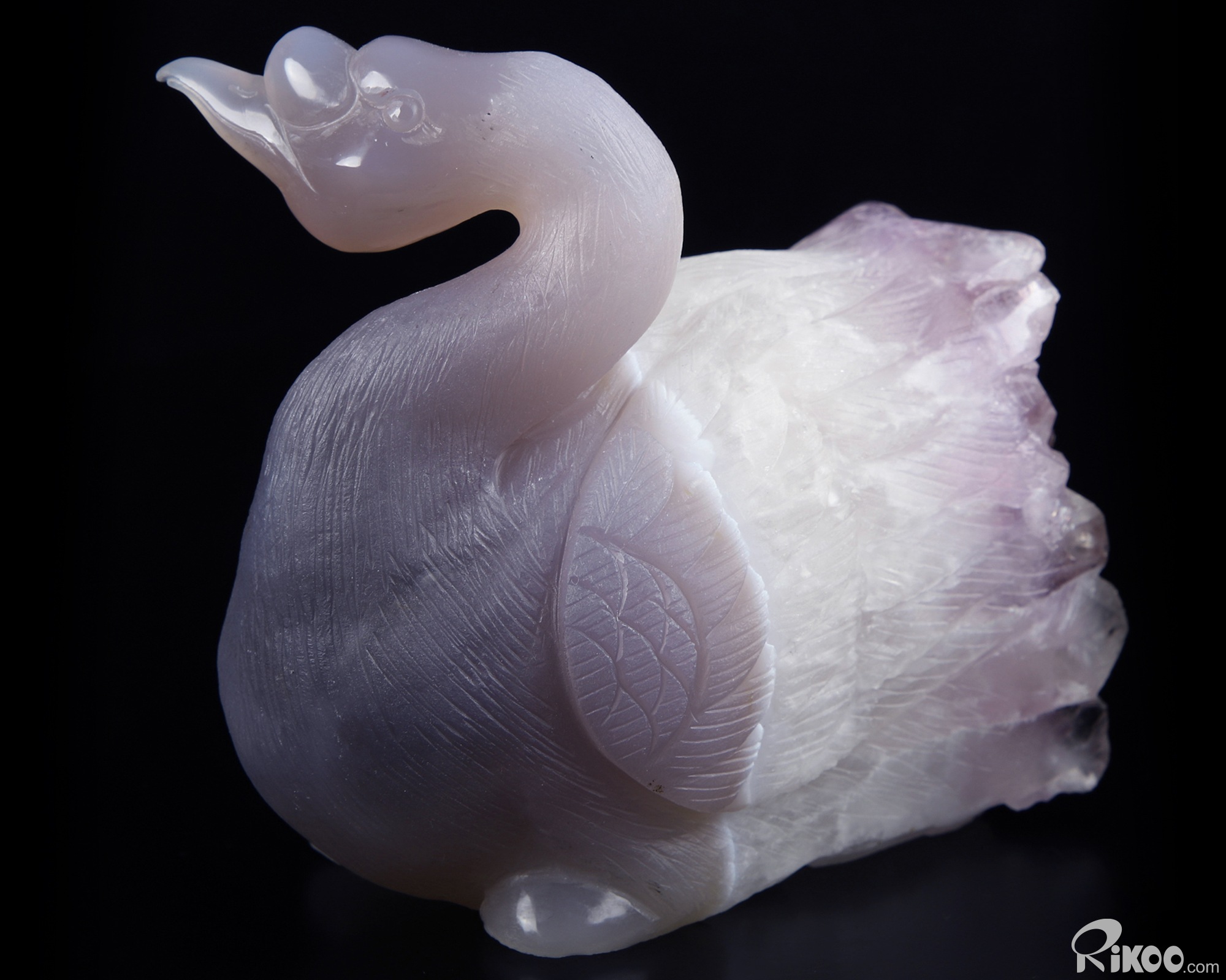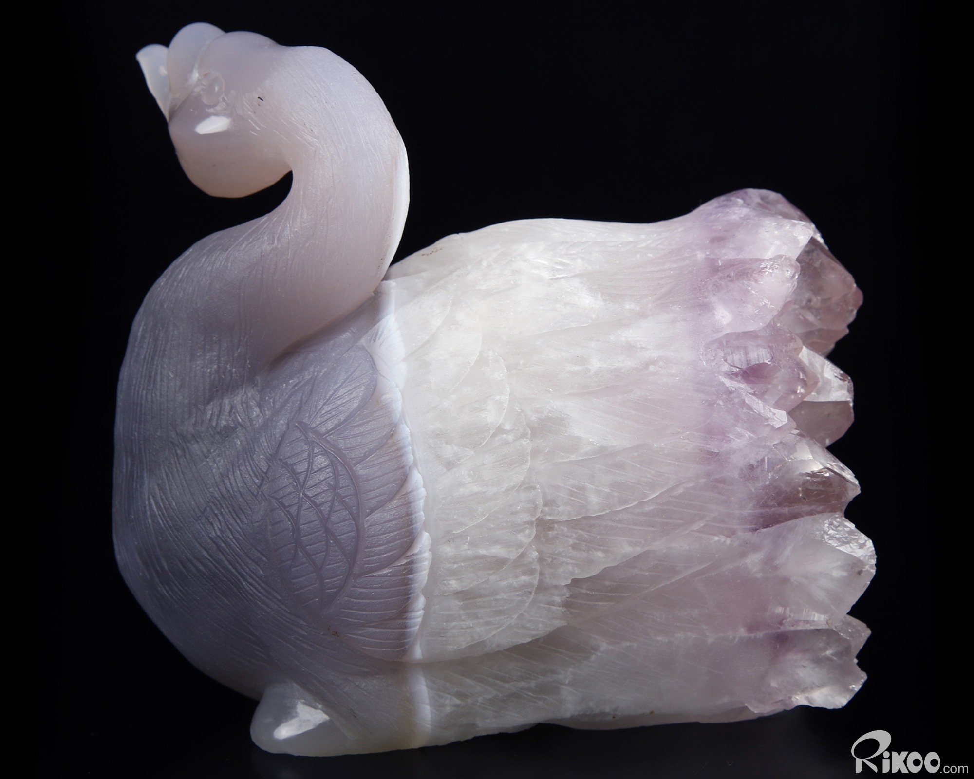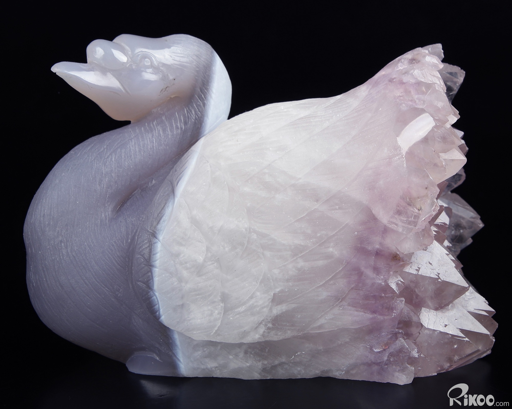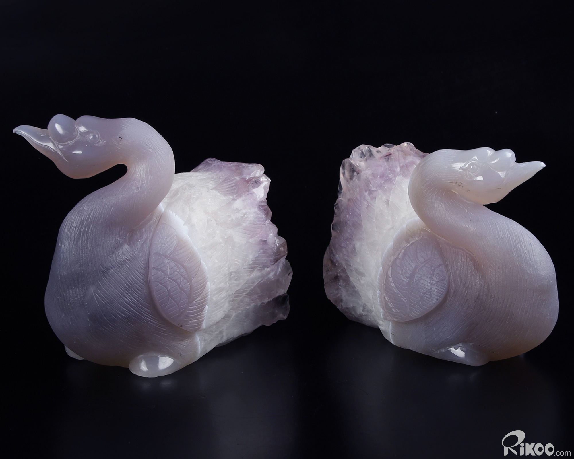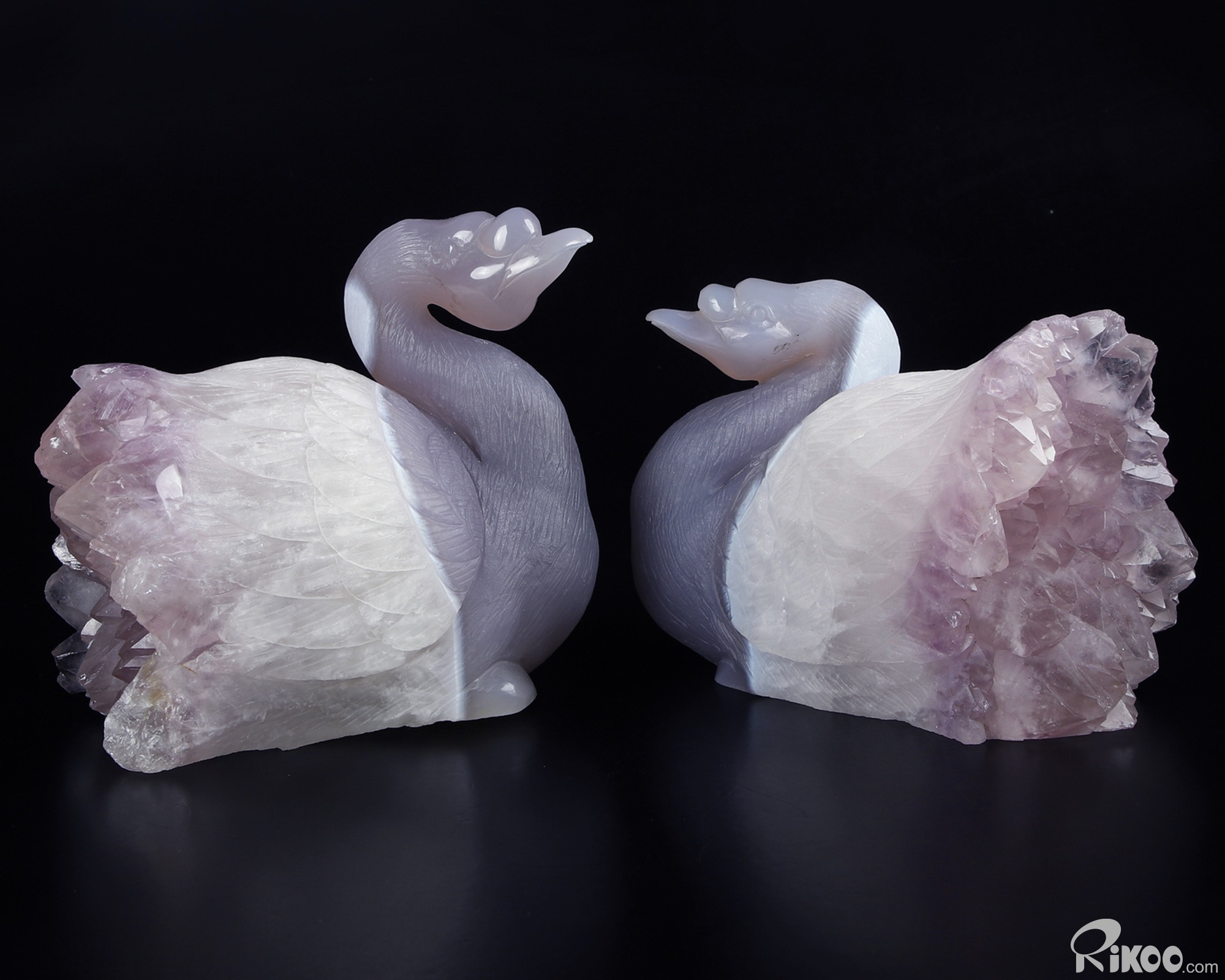 Huge 5.1" Amethyst & Agate Carved swan Crystal A COUPLE OF SWANS, Crystal Healing, Sculpture